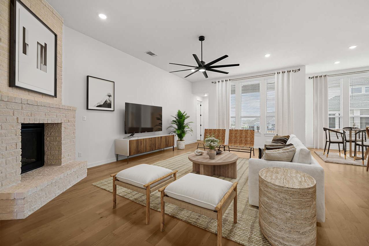 Our beautiful Canterbury single-story home offers privacy, comfort, and exceptional design. A seamless flow between the living, dining, and kitchen areas, perfect for entertaining. Host movie night in your entertainment room or nestle near the fireplace. Chef inspired kitchen features GE Cafe series appliances and ample cabinetry.