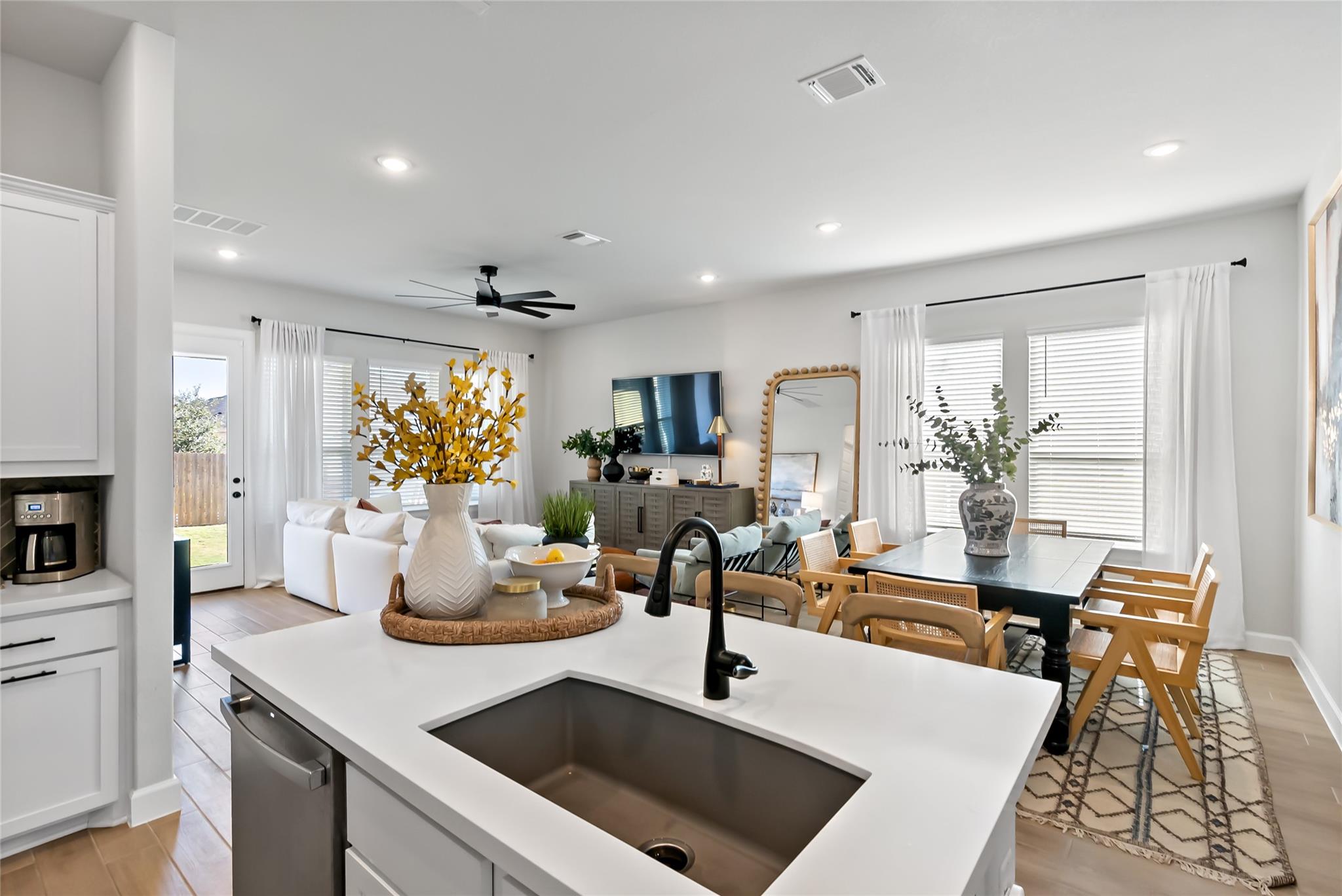 Welcome home to this stunning 3 bedroom, 2 bath, 1,740 sq ft modern ranch-style home featuring a sleek contemporary exterior and a thoughtfully designed open floor plan. Gorgeous earthy tones flow throughout, complemented by light wood-look tile in the main living areas for a warm yet sophisticated feel. The bright white kitchen is accented with matte black fixtures and stainless steel appliances, creating a clean, modern aest...