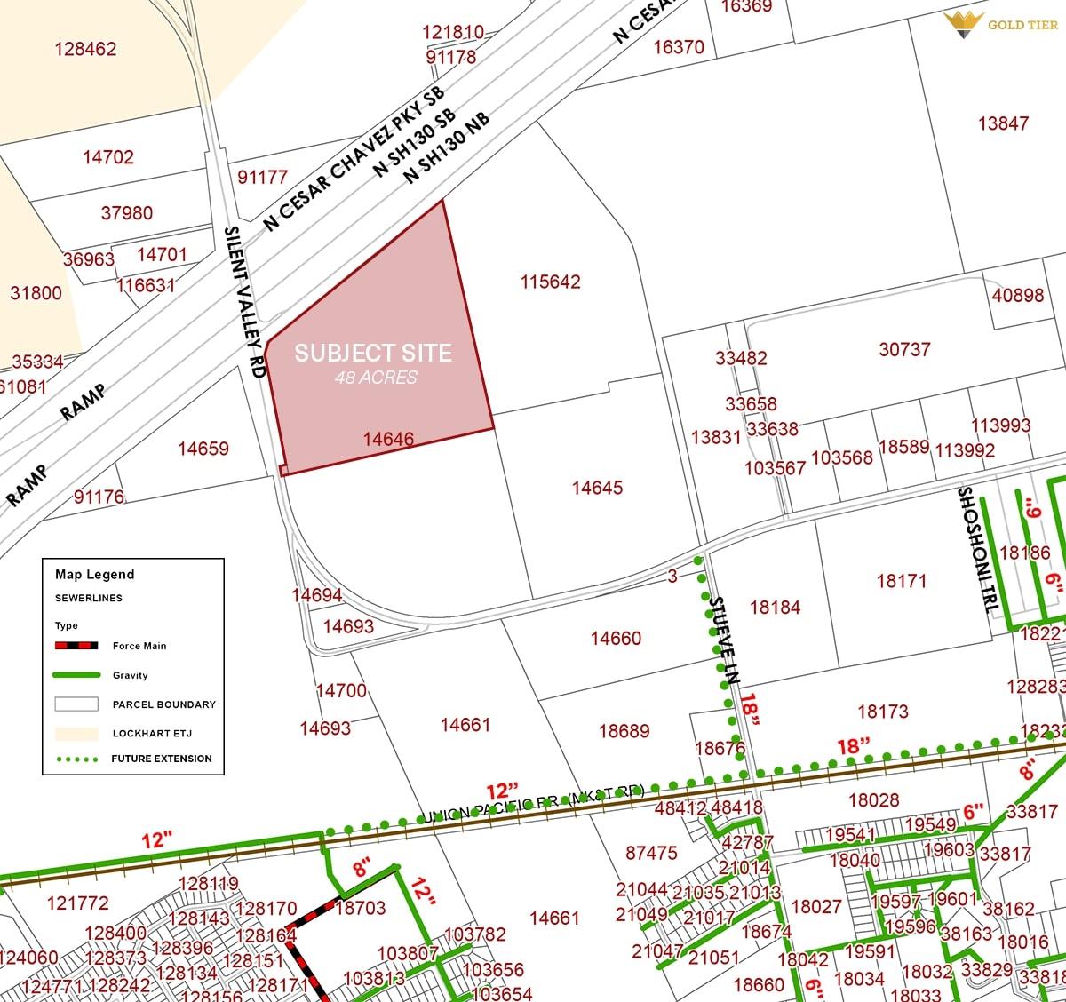 Positioned at one of Lockhart’s most visible and strategic intersections, this ±48-acre tract offers a true hard corner at State Highway 130 and Silent Valley Road, providing unmatched access and visibility to one of Central Texas’s fastest-growing commercial corridors. The property’s dual frontage—nearly 2,800 linear feet of exposure—supports multiple entry points, excellent site circulation, and ideal configuration for...