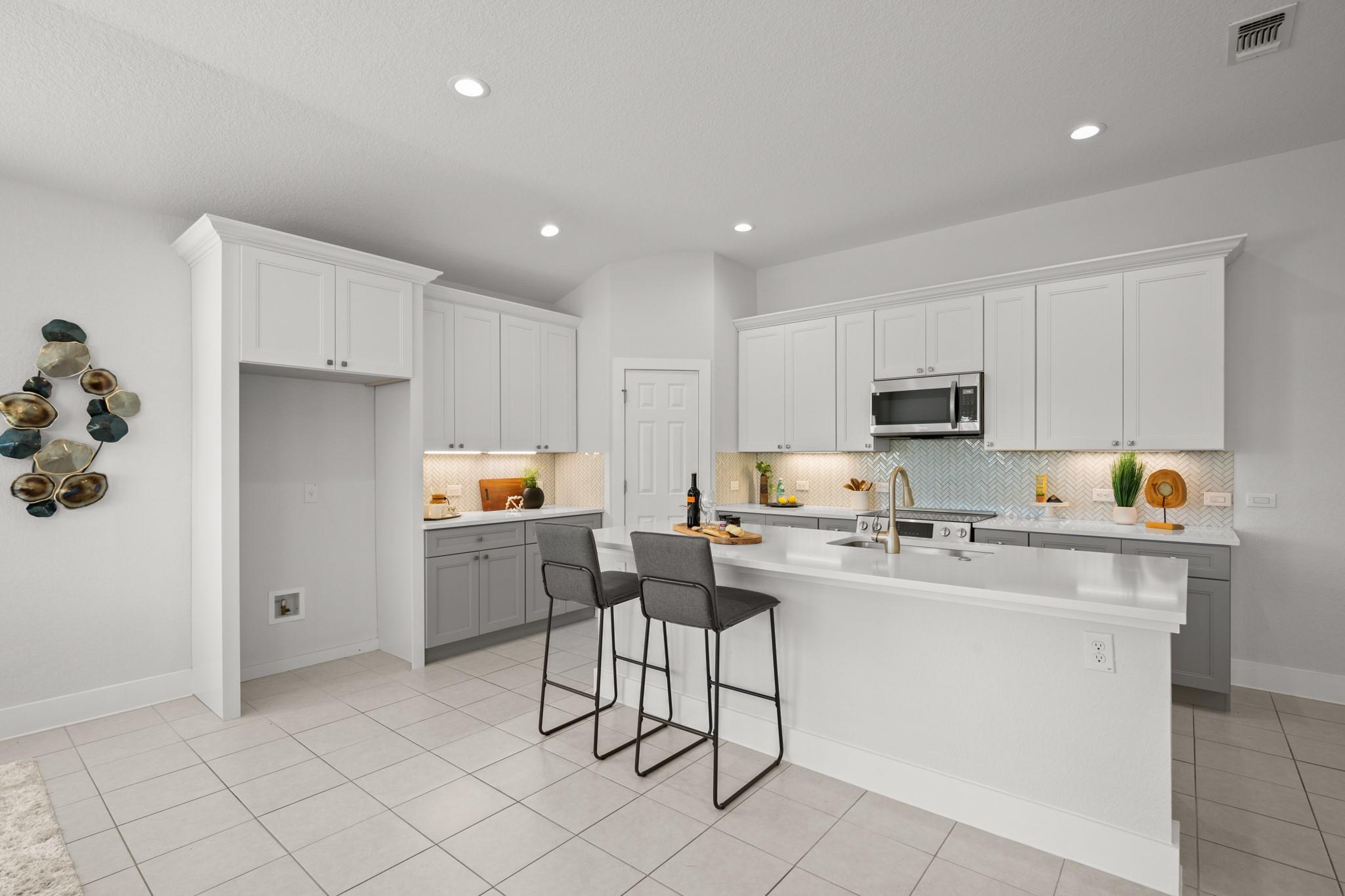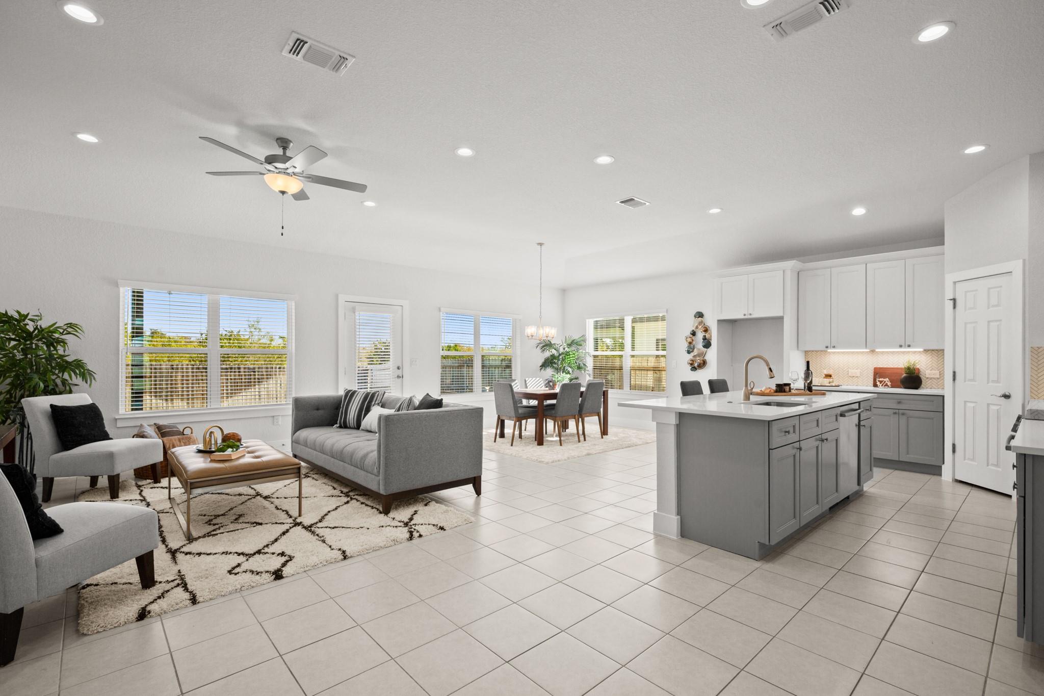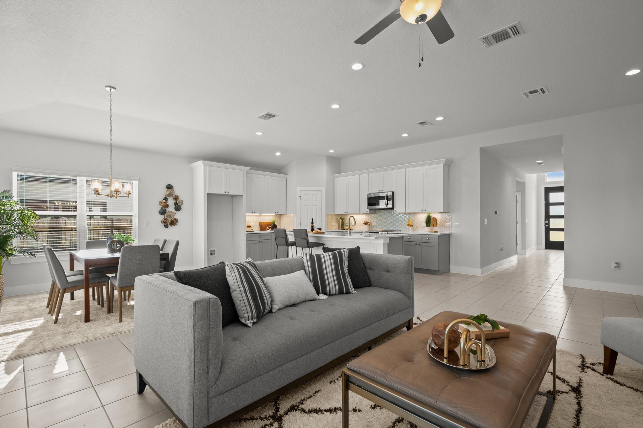 Experience modern, eco-friendly living in the award-winning community of Whisper Valley! This beautifully designed home combines sustainability, style, and convenience just 20 minutes from downtown Austin and minutes from the Tesla Gigafactory. This residence features an open-concept floor plan with soaring ceilings, sleek hard-tile flooring, and a freshly painted interior. The spacious kitchen flows effortlessly into the liv...