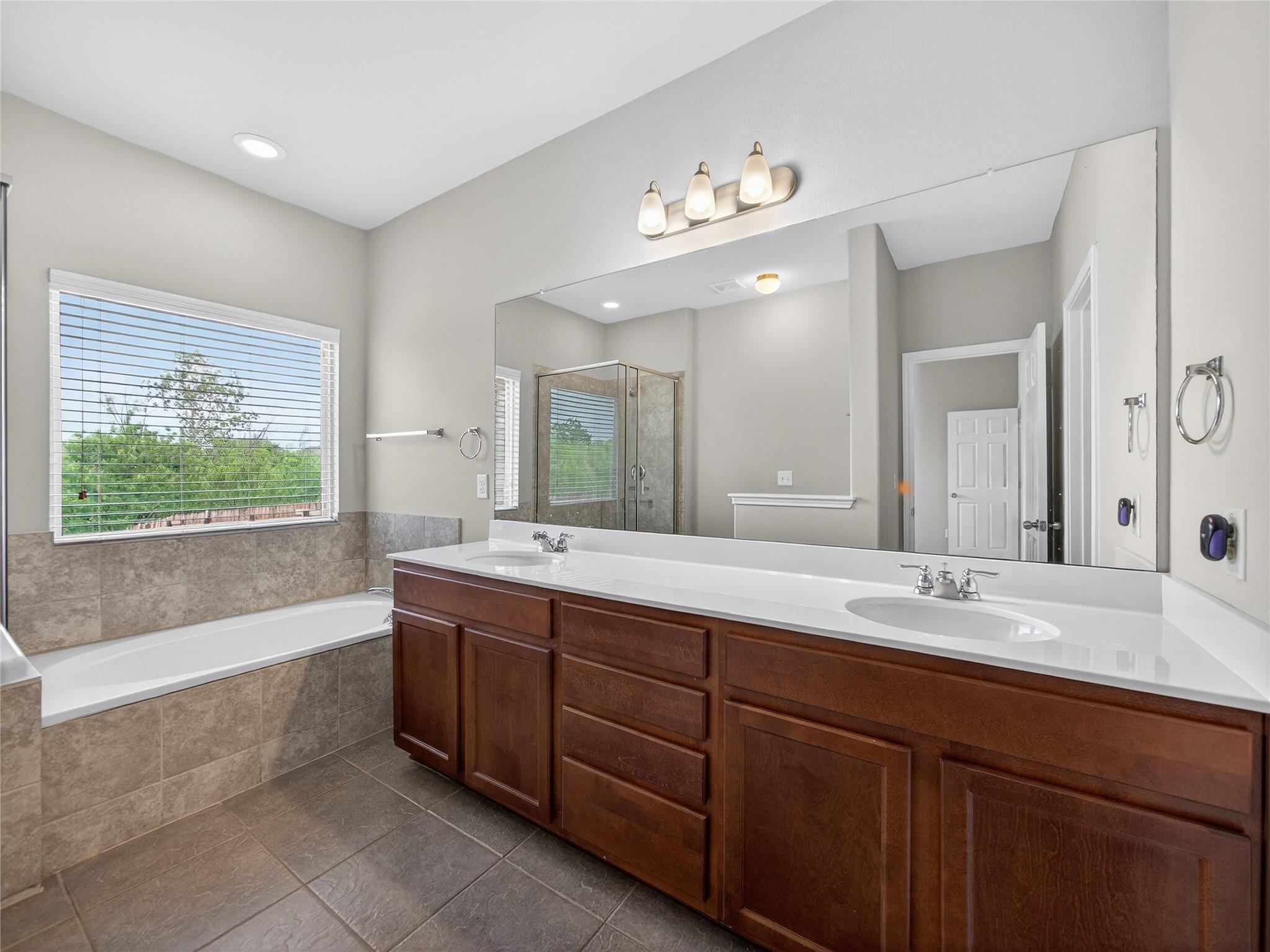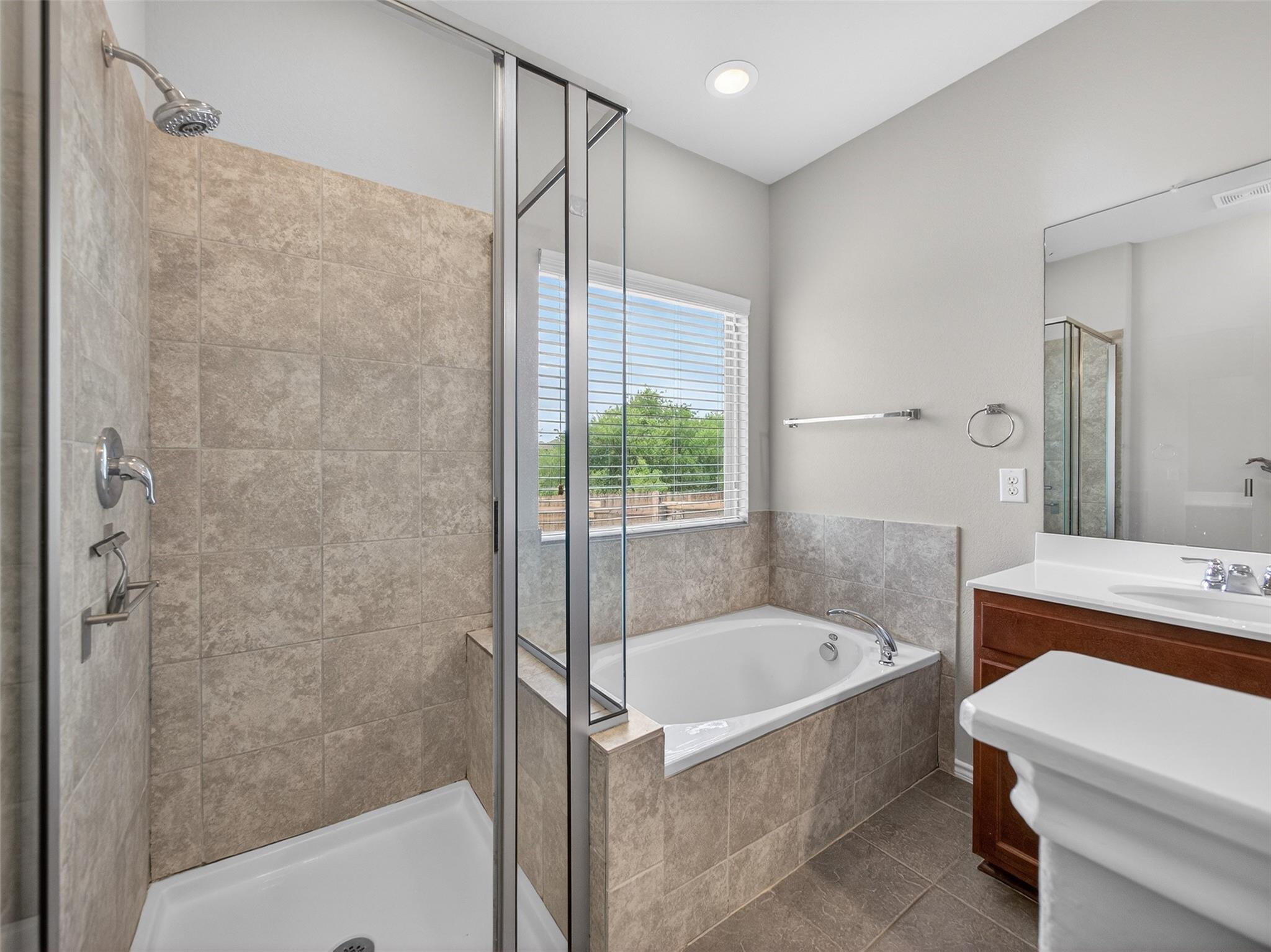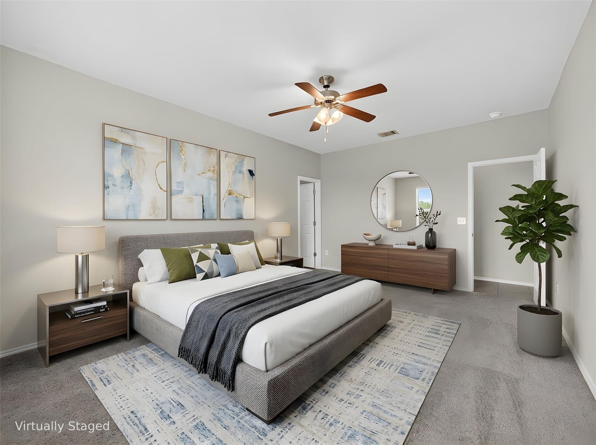 Nestled on a quiet cul-de-sac, this stunning 4-bedroom, 2.5-bath home offers an ideal blend of comfort and style. The open-concept floor plan is highlighted by soaring ceilings and beautiful tile flooring throughout the main level. The spacious eat-in kitchen features granite countertops, stainless steel appliances, and plenty of room for gathering. The main-level primary suite provides a private retreat with dual vanities, a...