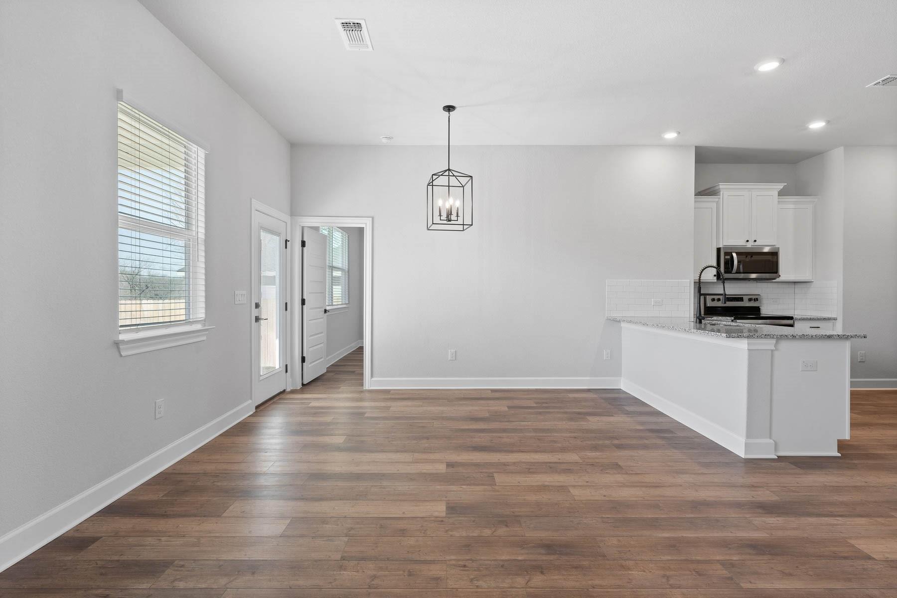 The Bowie is a charming single-story plan offering 3 bedrooms, 2 bathrooms within the eco-friendly master plan community, Whisper Valley. Inside, you’ll find an open-concept living space with an oversized family room seamlessly connecting to a dining nook and a chef-ready kitchen equipped with stainless steel energy-efficient appliances, white granite countertops, sleek white cabinetry with crown molding, and a spacious pantry...