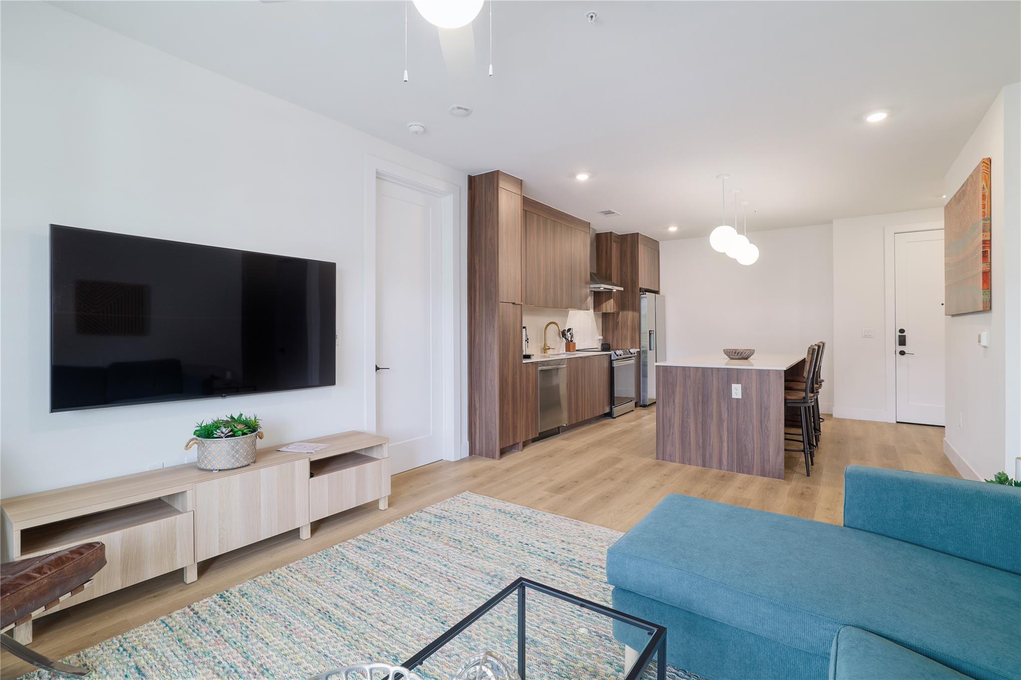 Stylish and modern 2BD/2BA condo in the coveted Parkside Mueller Residences, perfectly positioned in the vibrant Aldrich Street district and across from the scenic Mueller Lake Park. Experience the ease of low-maintenance living in one of Austin’s most sought after and walkable communities—just steps to green spaces, hike-and-bike trails, H-E-B, Alamo Drafthouse, local eateries, and the beloved weekly farmers market. This brig...