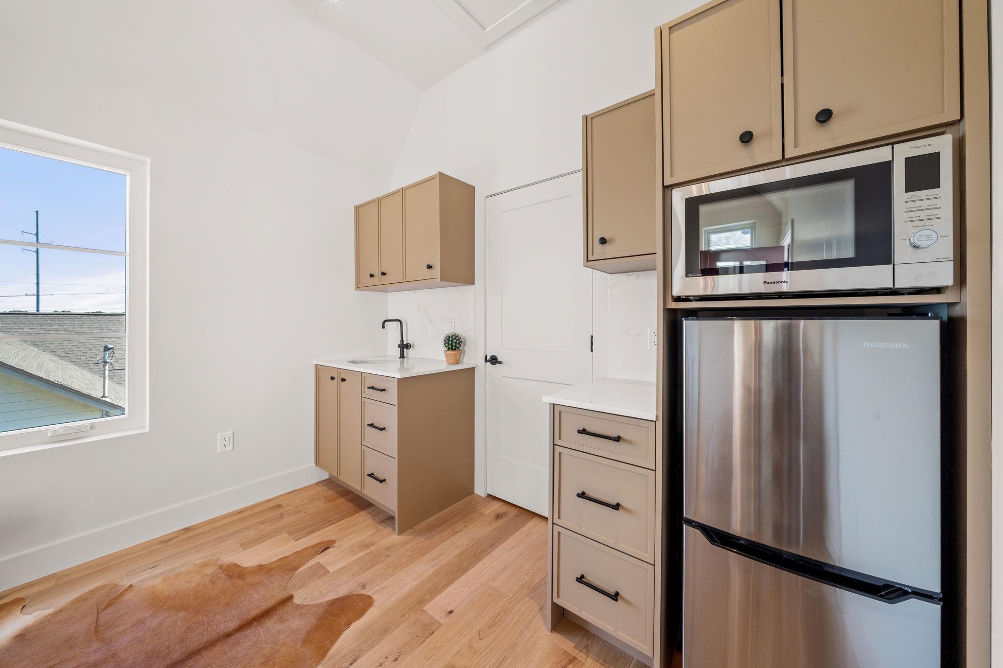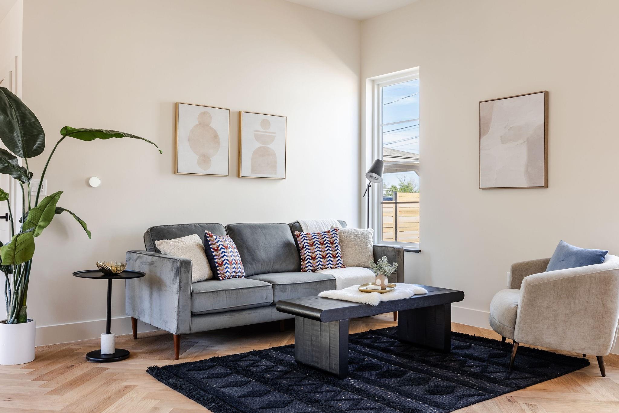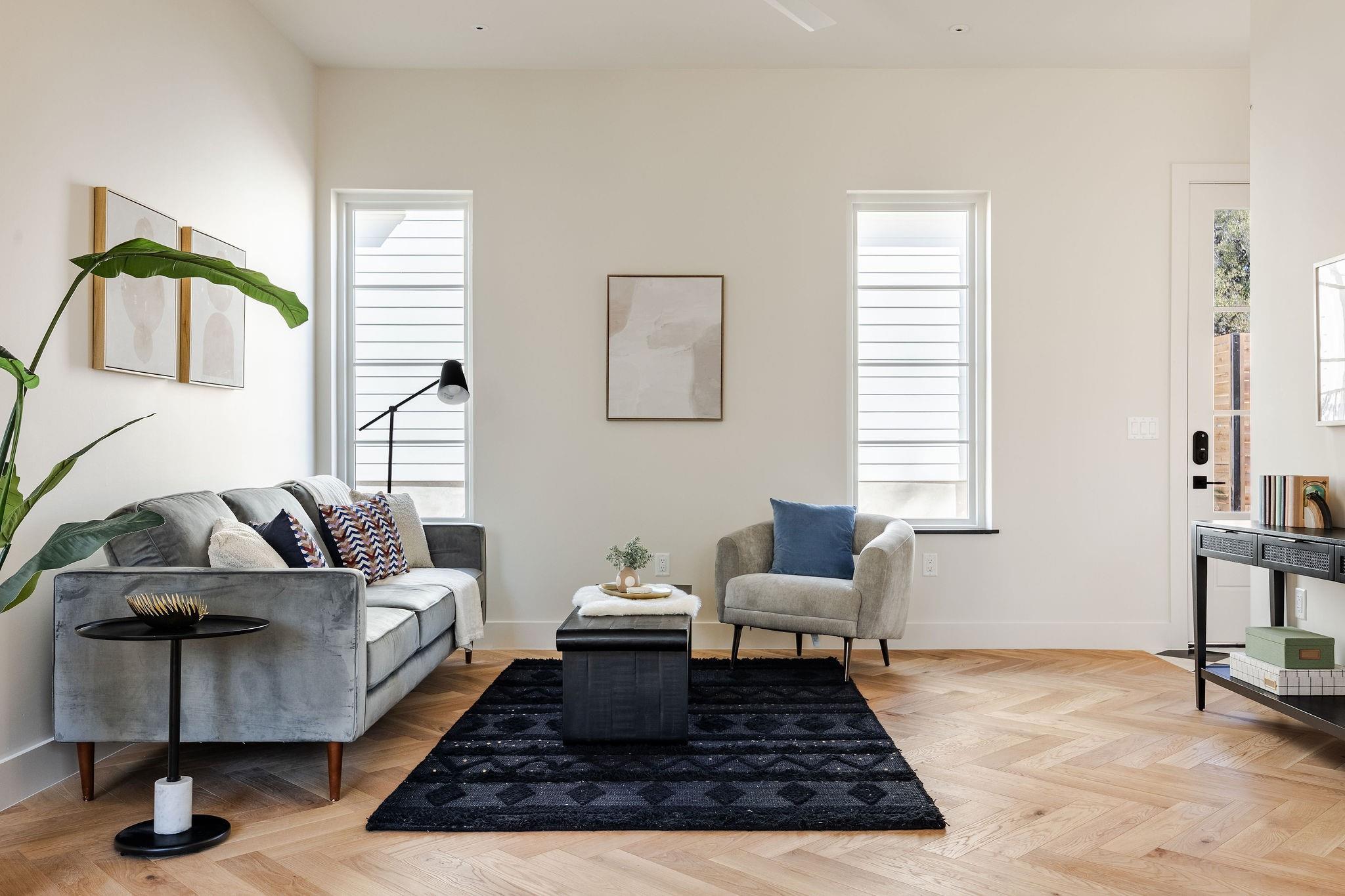 Stunning compound with 4 bedroom spaces and 4.5 total bathrooms with a detached 1bedroom/1bathroom studio with kitchenette perfect for office, guest, home gym, or short-term rental income! Arrive to the home quickly from the airport or downtown and enjoy the heart of East Austin and Mueller within 10 minutes drive! The main house features a magazine-perfect main floor with a bold kitchen design and classically elegant herringb...