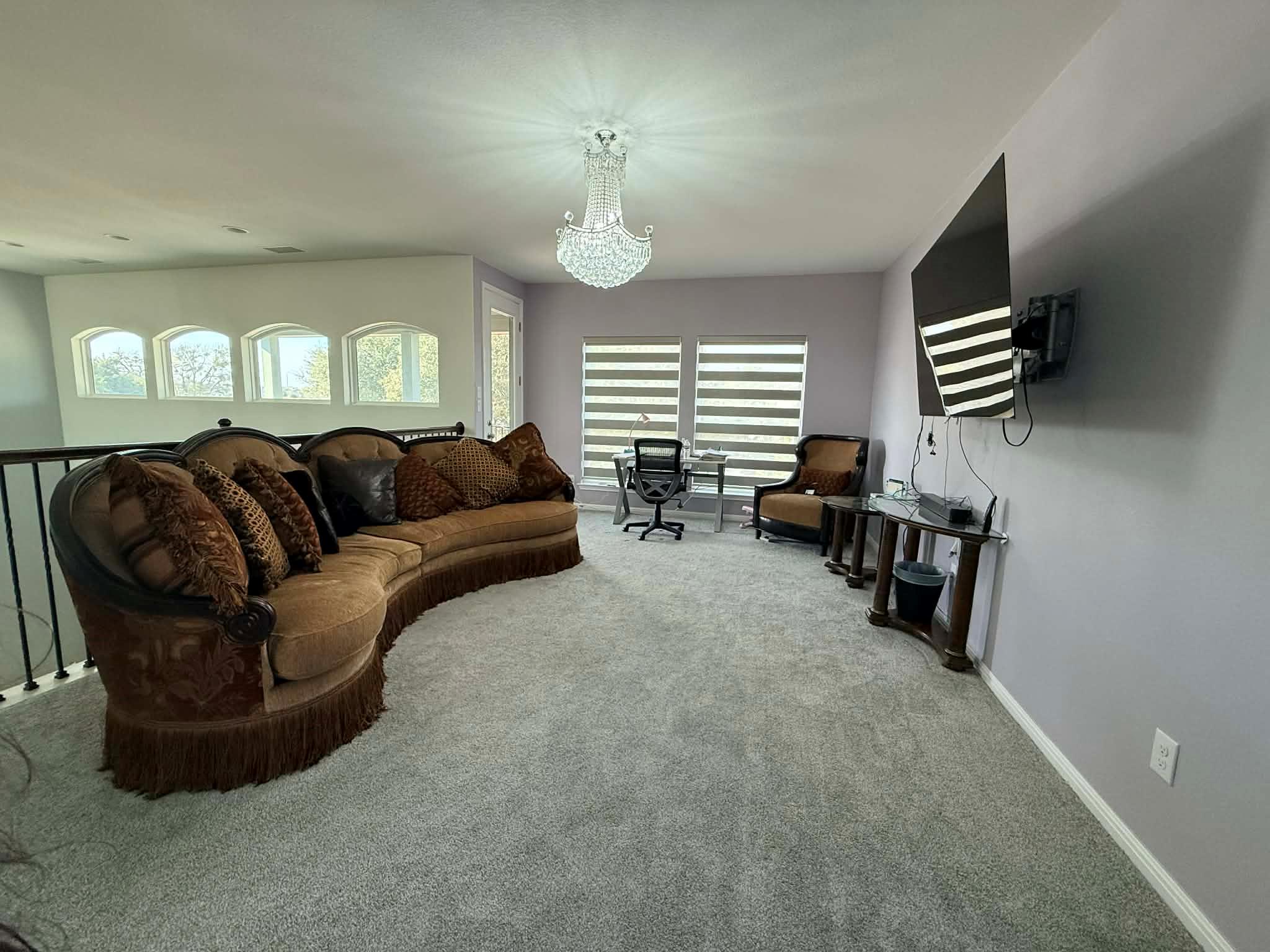 Welcome to 1837 Halflinger Lane in Leander, where luxury meets volume, light, and intentional design. From the moment you enter, soaring two story ceilings and dramatic custom crystal chandeliers set a striking tone, creating an immediate sense of arrival. Expansive open concept living seamlessly connects the living room, dining area, and chef inspired kitchen, ideal for entertaining and elevated everyday living. Walls of wind...