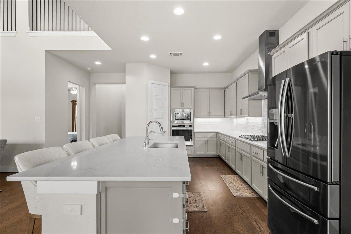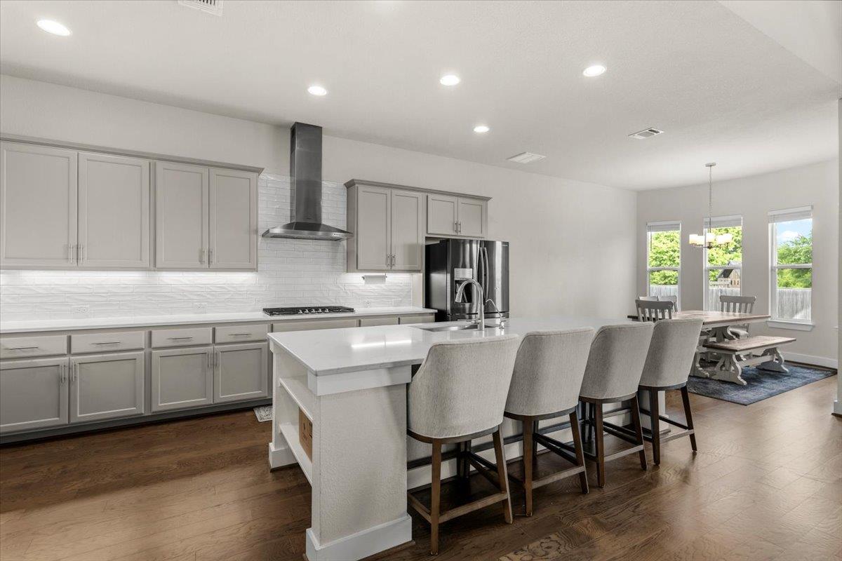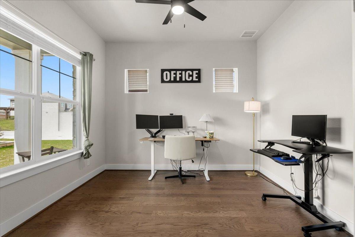 The two-story Llano floorplan offers 4,199 sq. ft. of space with 6 bedrooms, 4 full baths, a large office, game room media room, and a 3-car garage. The oversized, extended covered back patio is perfect for entertaining, complete with a gas stub for grilling. The home includes a full security system and is equipped with a Ring doorbell. Backing to a large greenbelt, there are no rear neighbors. Inside, you’ll find an open fami...