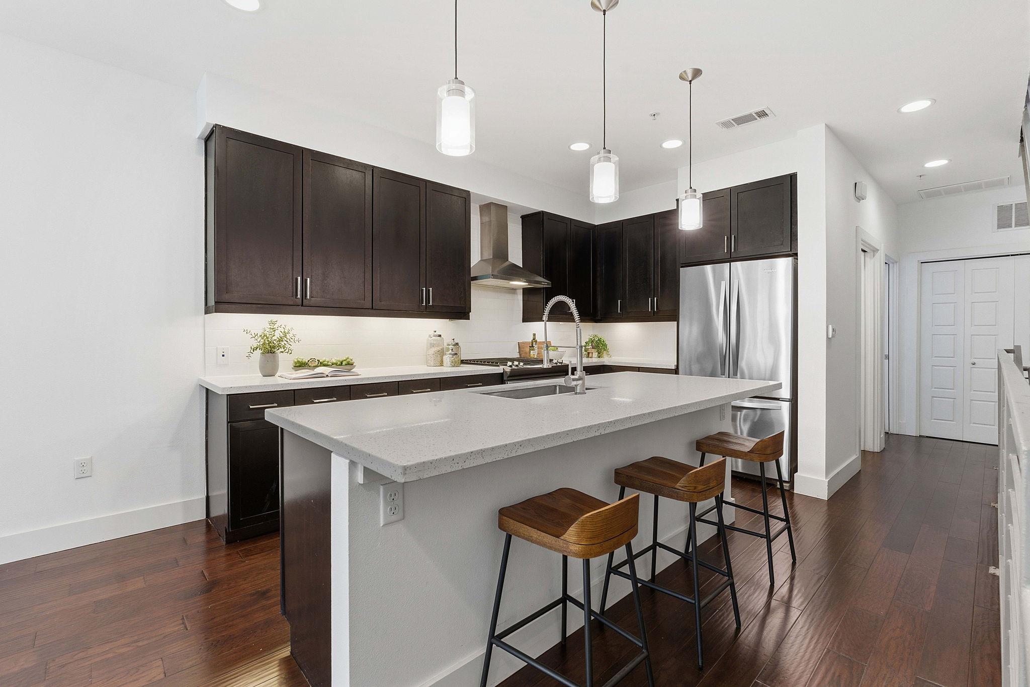 Tucked just off South Lamar in the coveted 78704, this sleek three-story residence at 2002 Glen Allen #104 offers a refined balance of privacy, design, and location. Built in 2016, the contemporary 2-bedroom, 2.5-bath condo spans three beautifully curated levels, complemented by multiple flex spaces ideal for today’s lifestyle. The entry level welcomes you with a private guest suite featuring a full bath, along with a versatil...