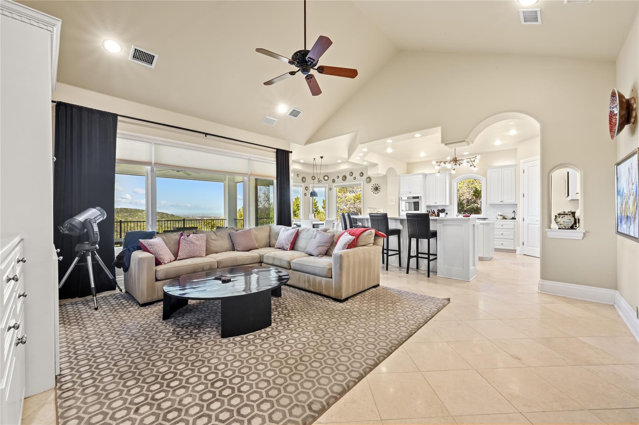 Discover luxury hilltop living in this spectacular greenbelt home, offering breathtaking panoramic hill country views. Thoughtfully designed with a coveted flipped floor plan, the main level boasts soaring ceilings, an abundance of natural light, and an effortless open flow perfect for entertaining. Enjoy multiple balconies and generous outdoor spaces that overlook the sprawling yard and resort-style swimming pool. The fre...