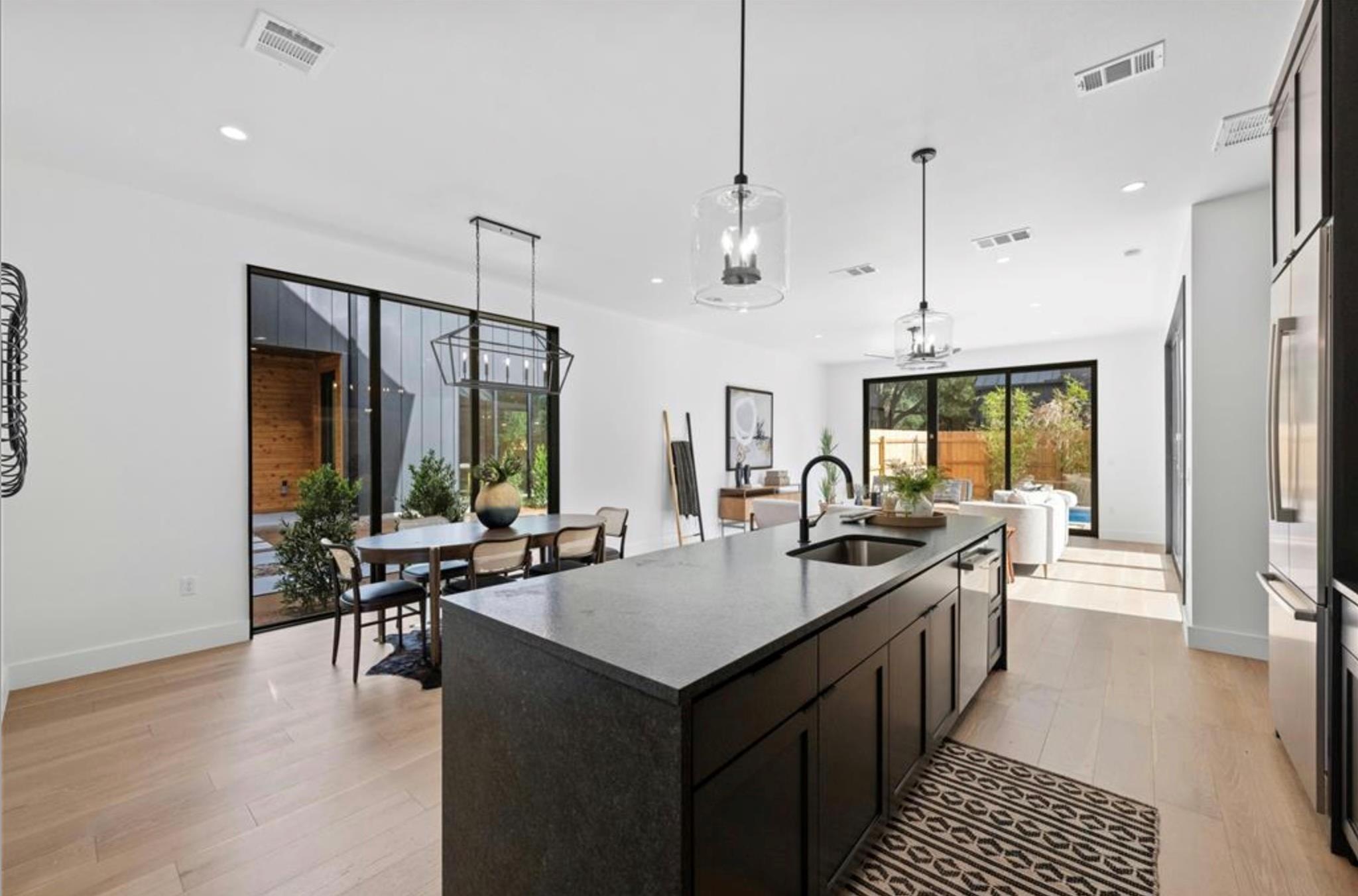 Experience refined modern living in the heart of 78704, where striking architecture meets intentional design by Sett Studio. Wrapped in a bold black exterior, this residence makes a dramatic first impression while blending sophistication with warmth. Inside, walls of glass and signature floor-to-ceiling windows flood the home with natural light, creating an airy, gallery-like feel. French white oak floors, designer lighting, a...