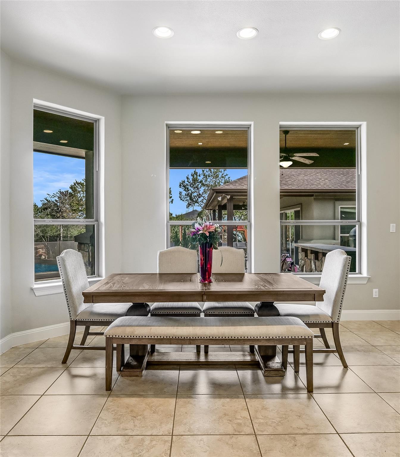 Tucked behind a timeless stone exterior and elegant iron double doors, this home opens to soaring ceilings, graceful arches, and a dedicated formal dining space made for holidays, celebrations, and the kind of dinners that turn into memories. The heart of the home is built for connection—bright, open living areas that flow into a huge kitchen centered around an oversized island and apron-front sink, giving everyone a seat at t...