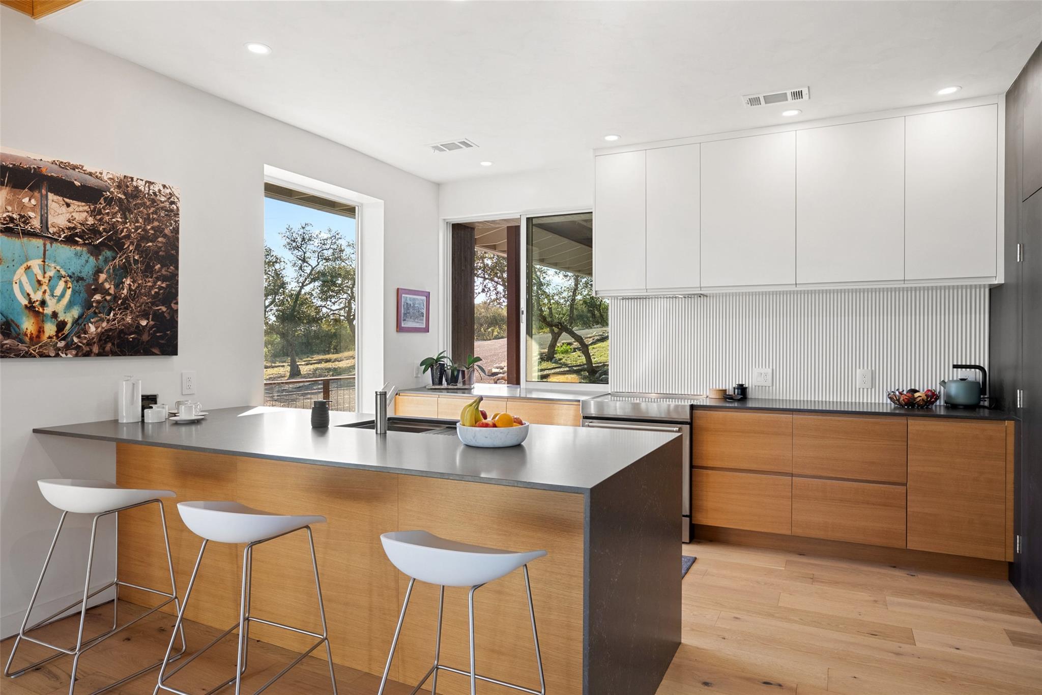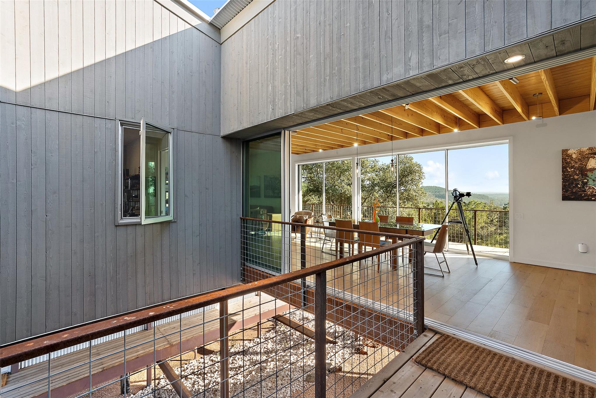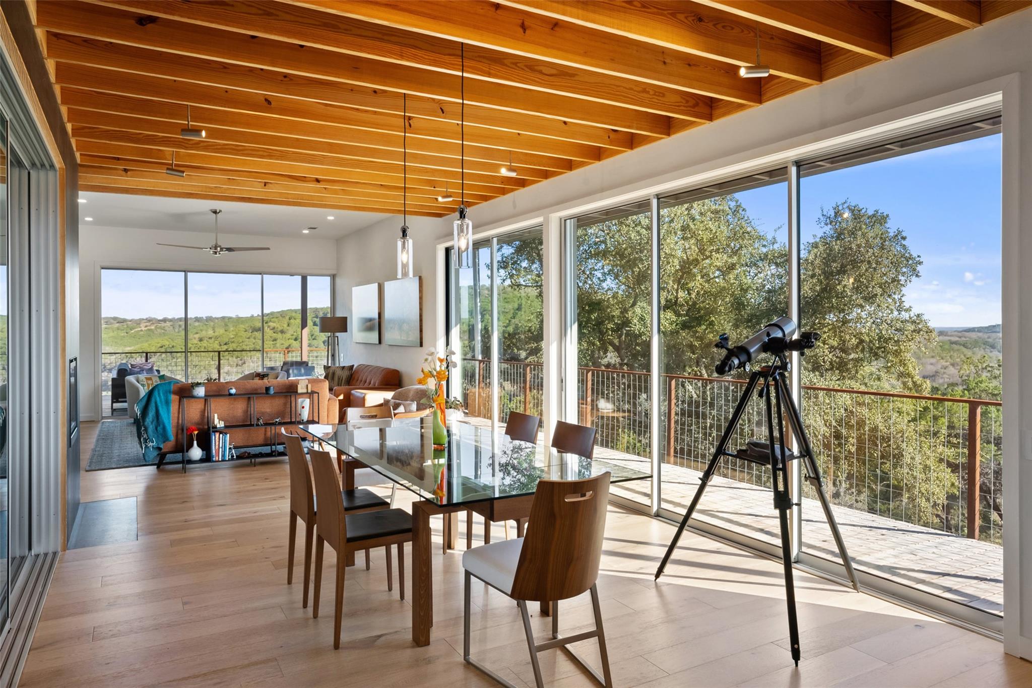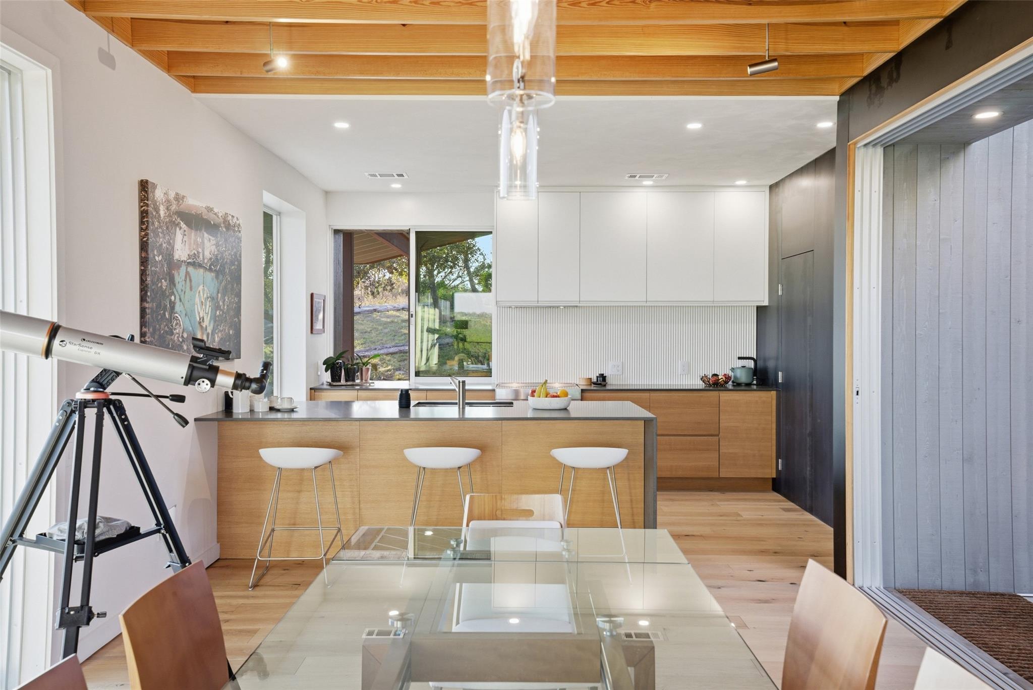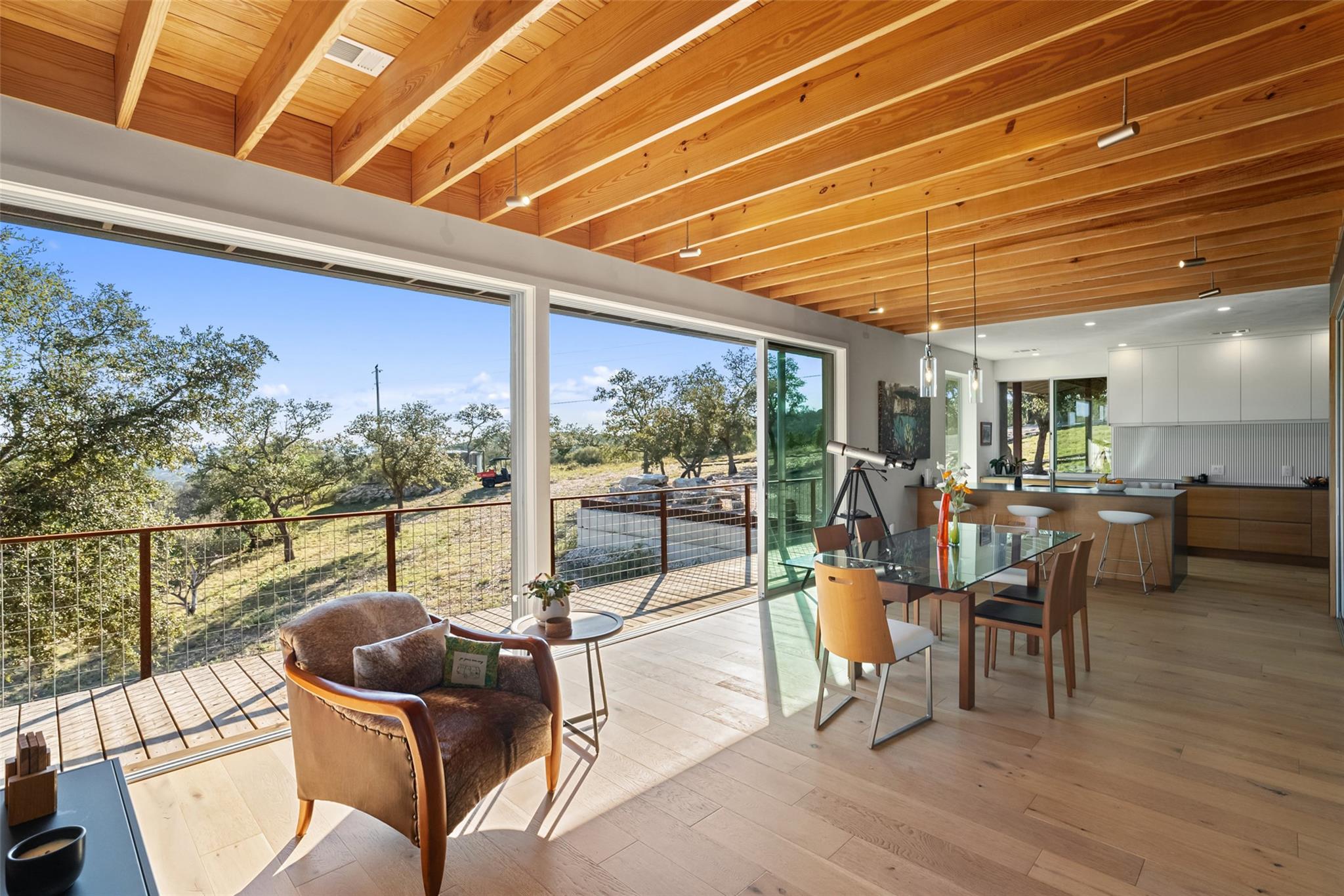 Perched above the rolling hills and limestone outcrops of the gated Wolf Creek Ranch community, this home by LOWDO captures vistas of valleys, trees, and ridgelines near Lake Buchanan. Designed to harmonize with its surroundings, the residence rests on a steel pier-and-beam foundation, minimizing land impact while maximizing views, light, and airflow. A private drive leads through 23.07 acres where free-ranging cattle maintain...