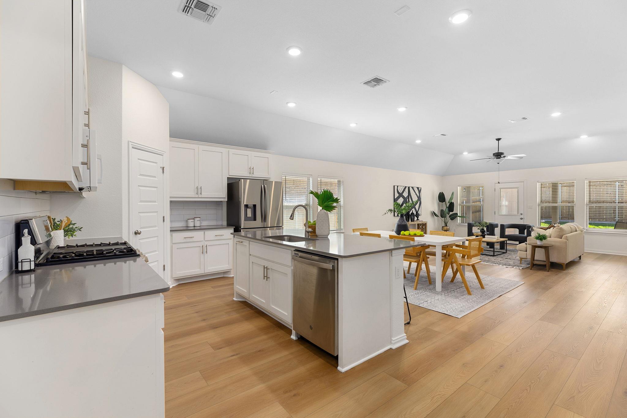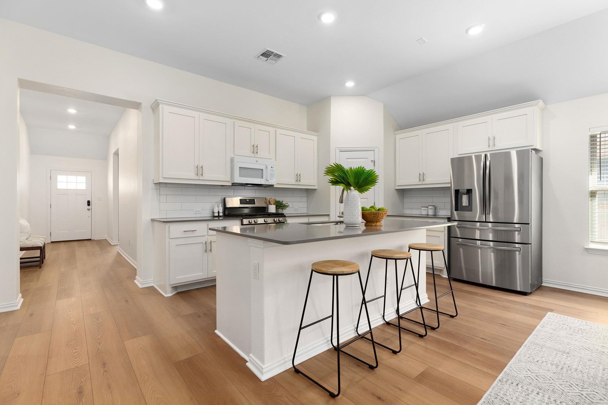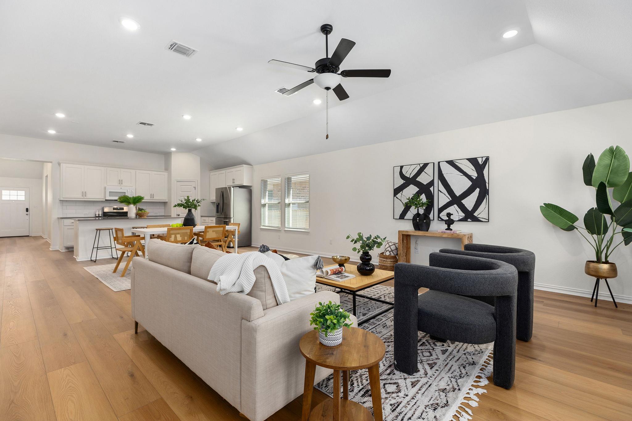 This move-in ready 4-bedroom, 2.5-bath home offers 2,110 square feet of open concept living with all the right upgrades already done. New wide plank flooring, fresh paint throughout, and an open floor plan make this home feel bright, modern, and inviting from the moment you walk in. Enjoy the covered patio with no back neighbors — perfect for family evenings outdoors — plus a charming front porch and an upgraded garage complet...