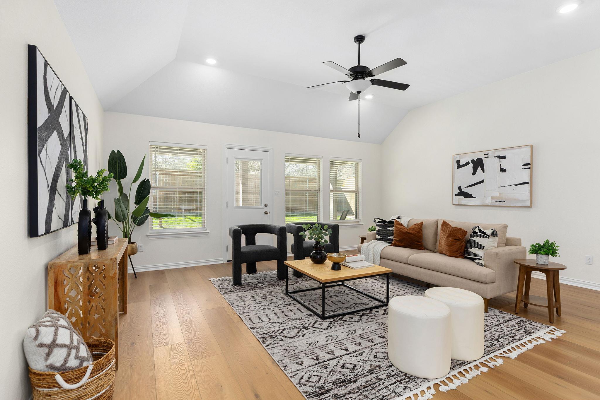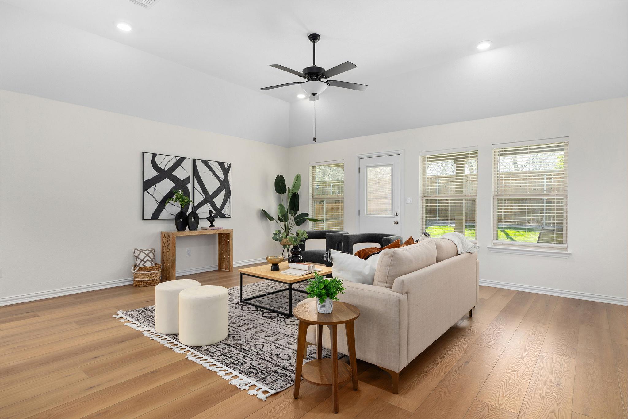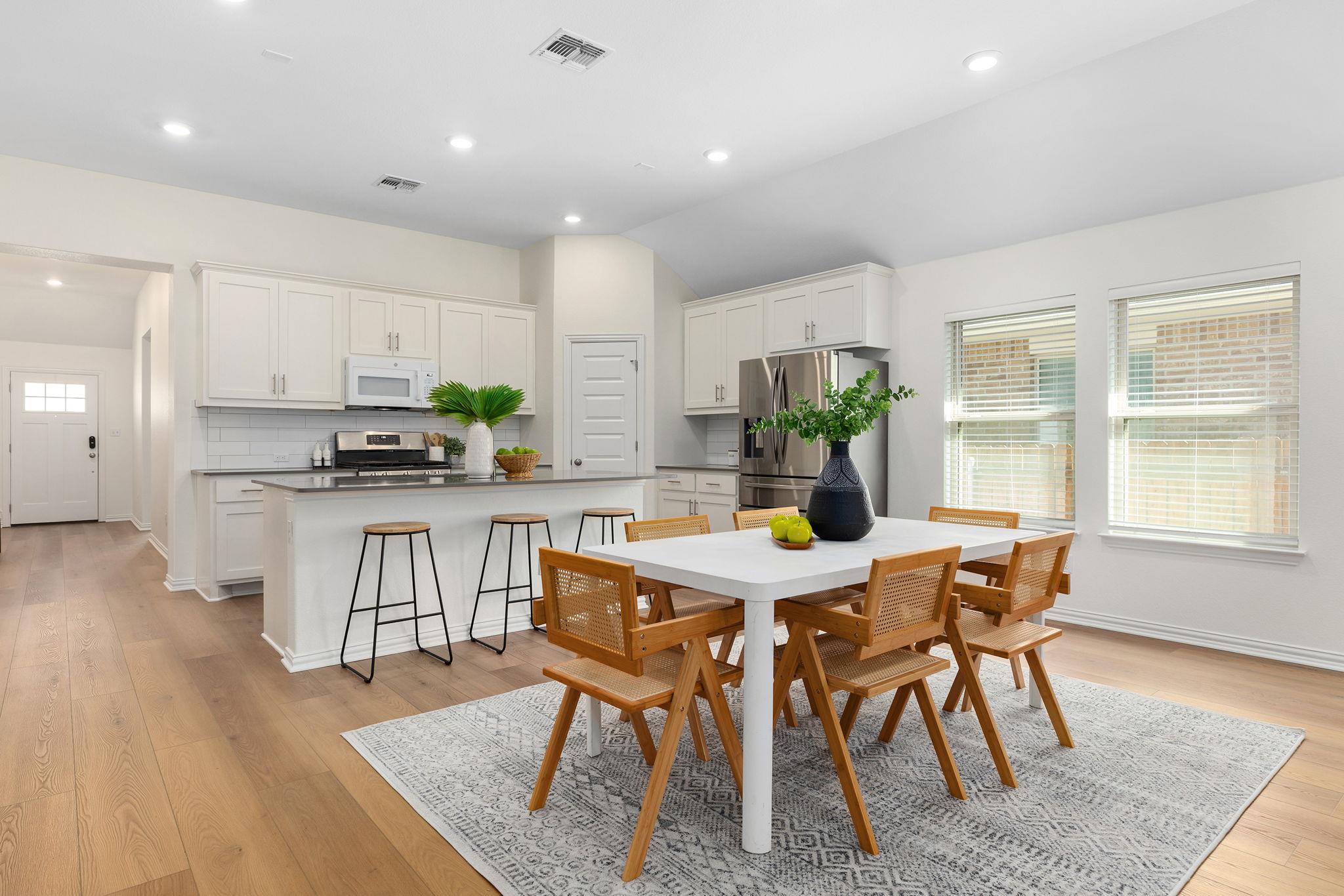 This move-in ready 4-bedroom, 2.5-bath home offers 2,110 square feet of open concept living with all the right upgrades already done. New wide plank flooring, fresh paint throughout, and an open floor plan make this home feel bright, modern, and inviting from the moment you walk in. Enjoy the covered patio with no back neighbors — perfect for family evenings outdoors — plus a charming front porch and an upgraded garage complet...