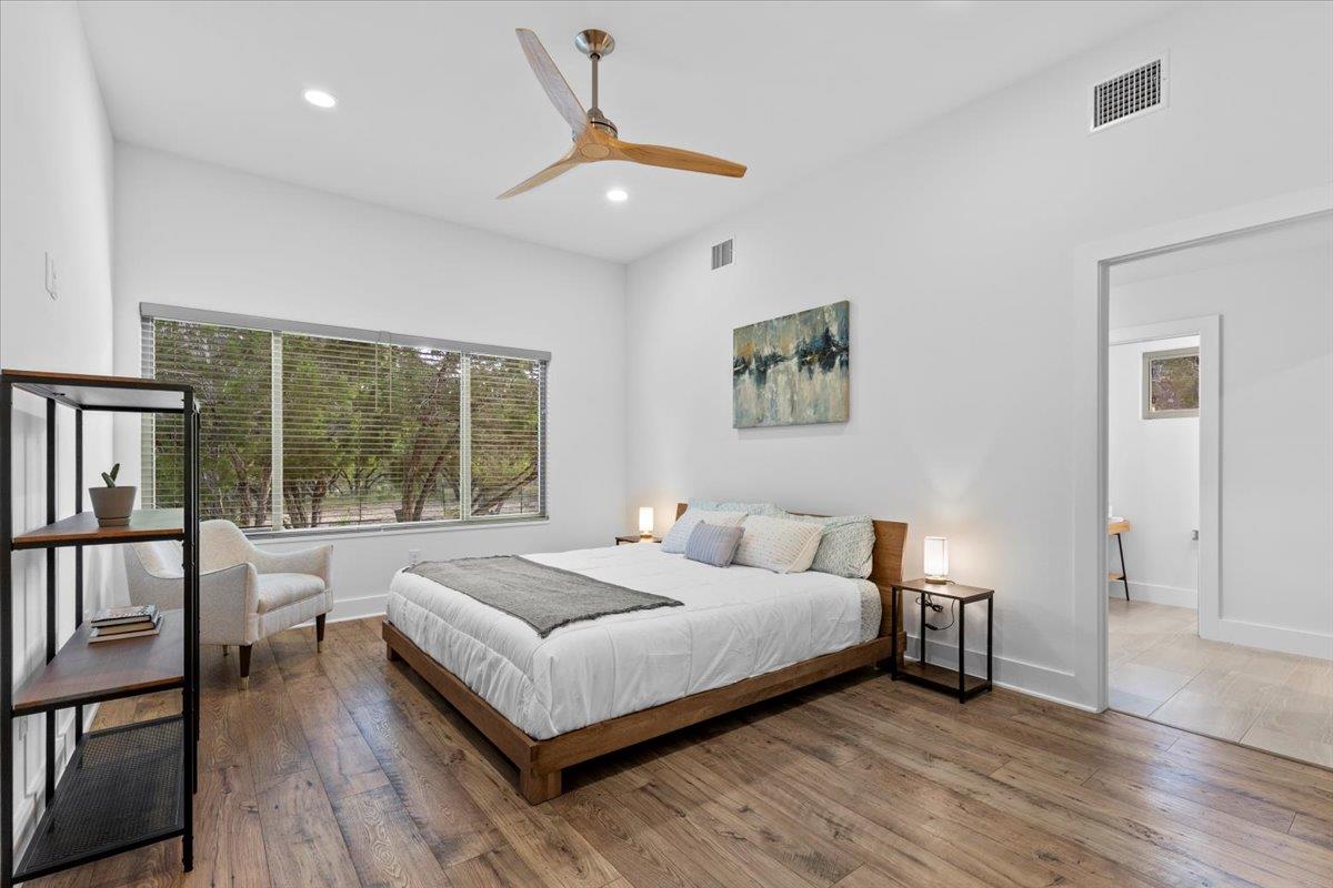 Discover serene Hill Country living in this thoughtfully designed 3 bedroom, 2 bathroom home with a dedicated office, ideally located at the gateway to Lago Vista. Built in 2020 and nestled on a .838 acre estate sized lot, this single story residence offers 1,889 sq ft of modern comfort, privacy, & natural beauty. Step inside to soaring ceilings, expansive modern windows, and a light filled open layout that creates an airy, in...