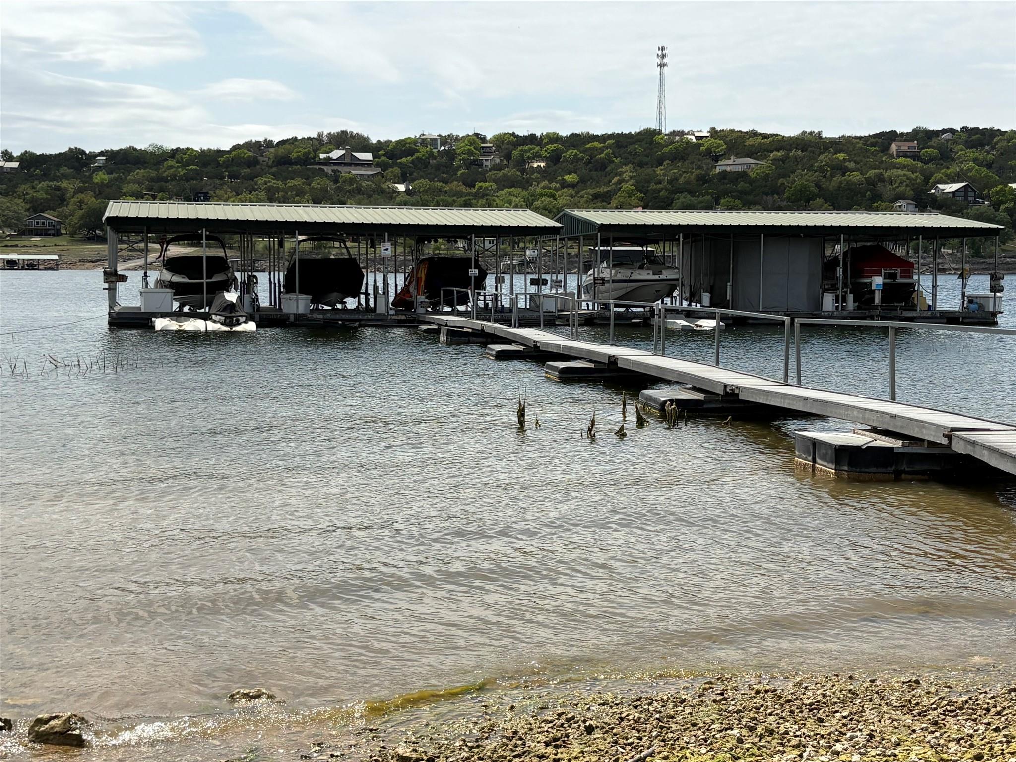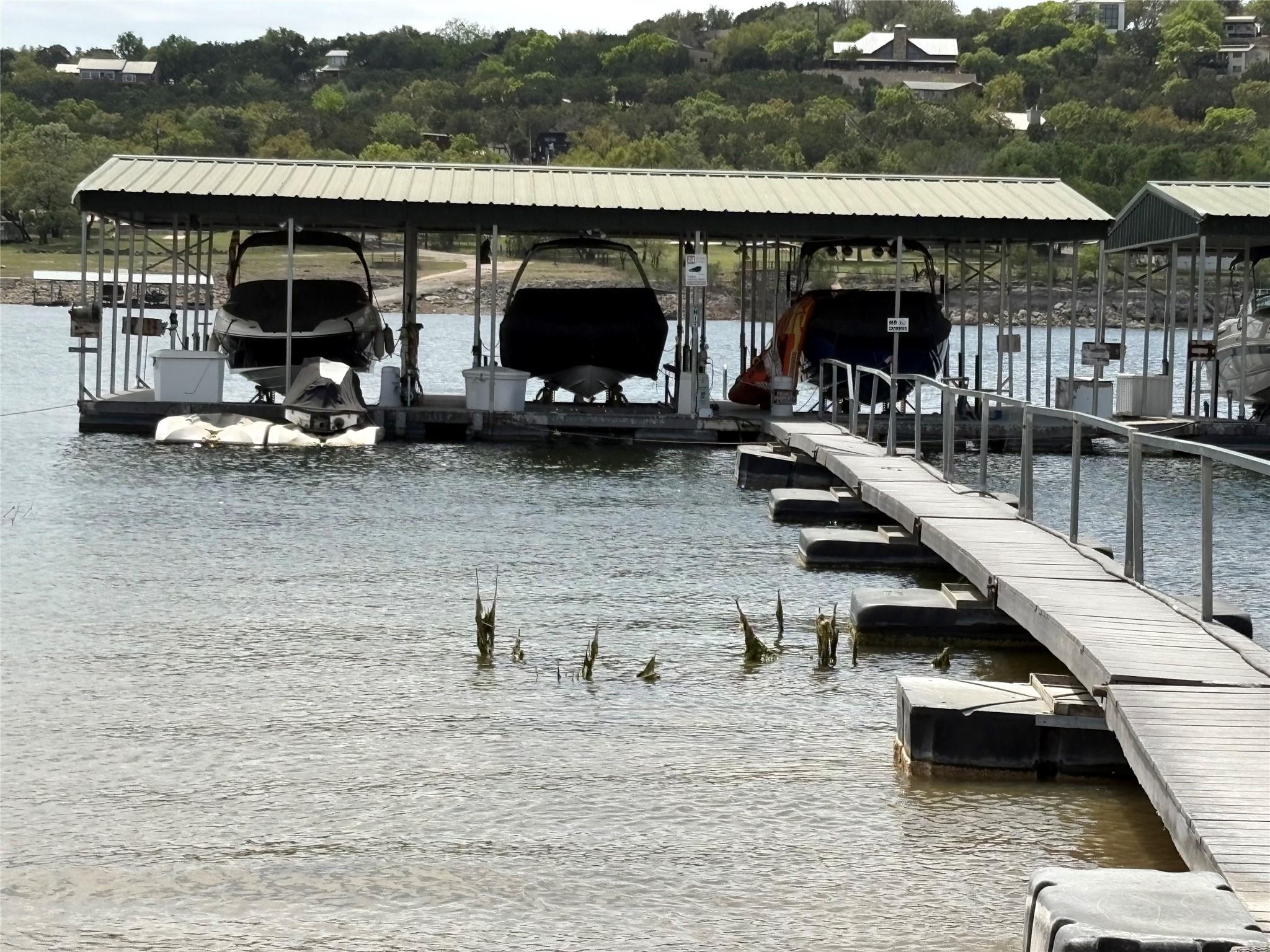 The dock/slip is 10' x 28' and comes with a Hydrohoist lift, 6000#. This is one of the few times you can purchase a dock without having to build you home first. Plus, even when the lake is low, these docks are still floating and accessible. The $450 quarterly fee covers the electricity, insurance on the dock, moving the slips as the lake levels changes and maintenance on the adjacent grounds. Ownership of the boat slip give...