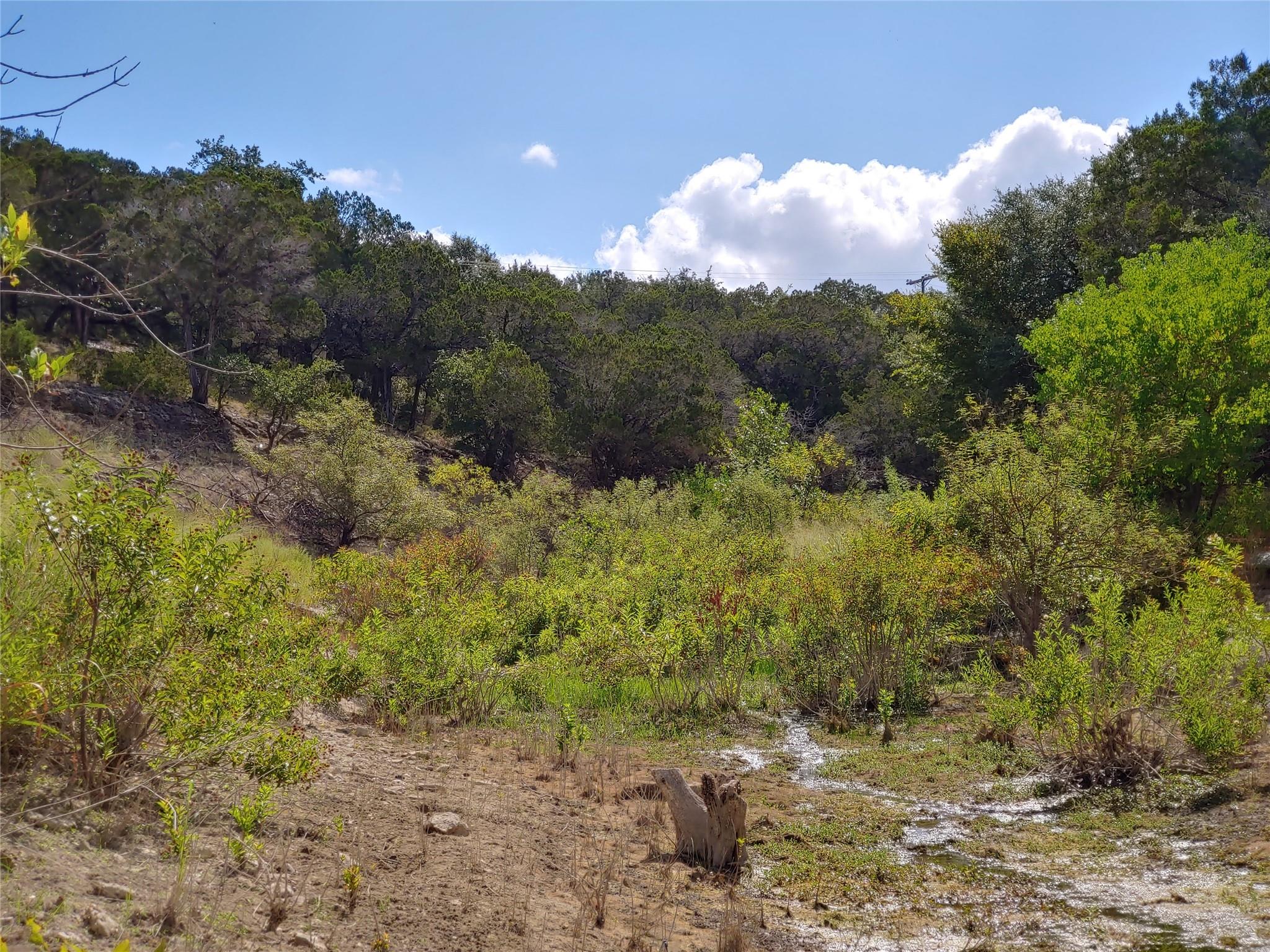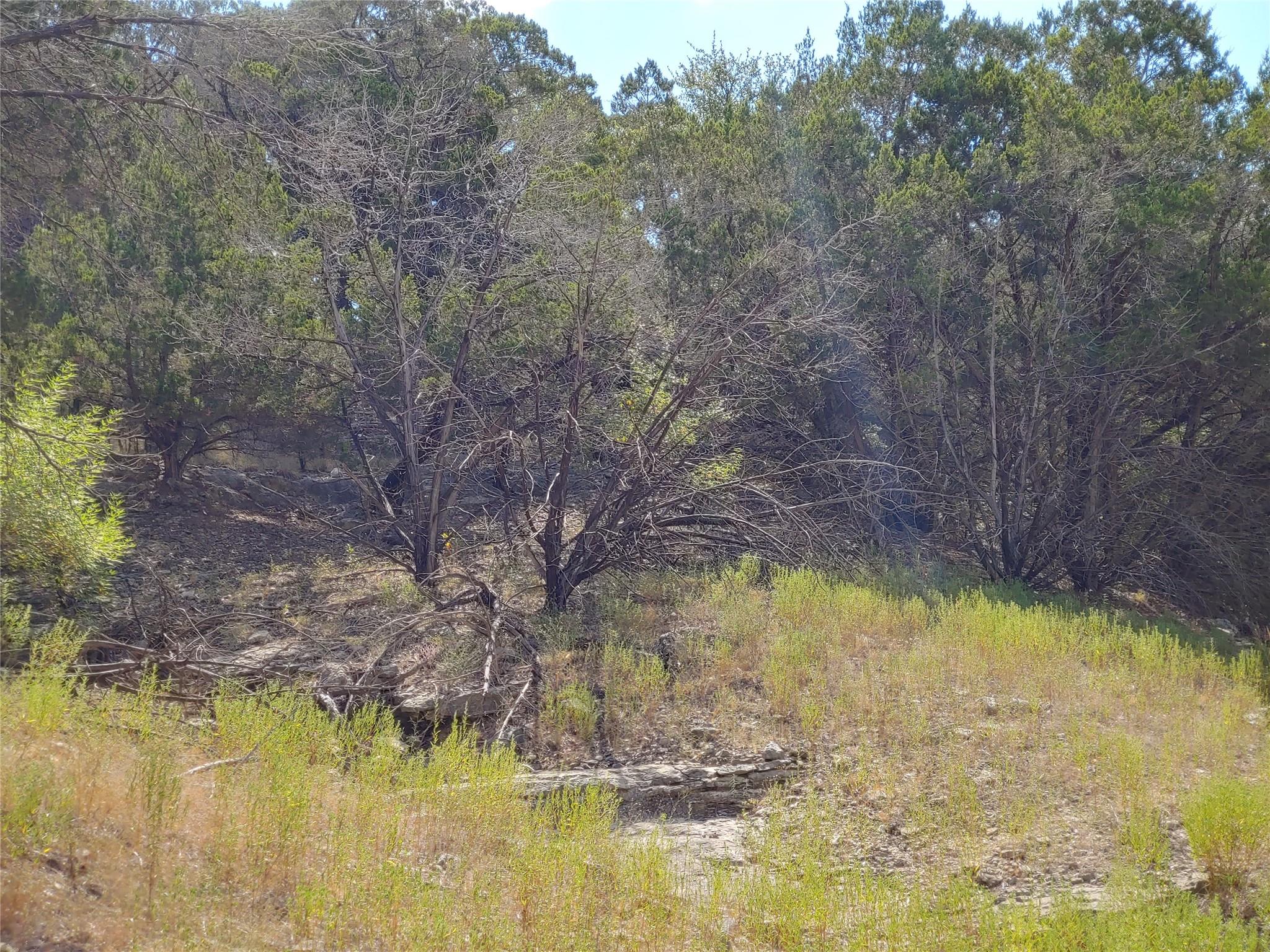 Incredible BUILDABLE terrain. Waterfront lot with beautiful park frontage. 1.12 acres of rolling hills, oak trees, natural wet creek and limestone rock formations to accentuate your dream home. Western view over the lake. This unique property fronts with many acres of waterfront greenbelt, so no neighbors on one side. LISTED BELOW APPRAISED VALUE!
