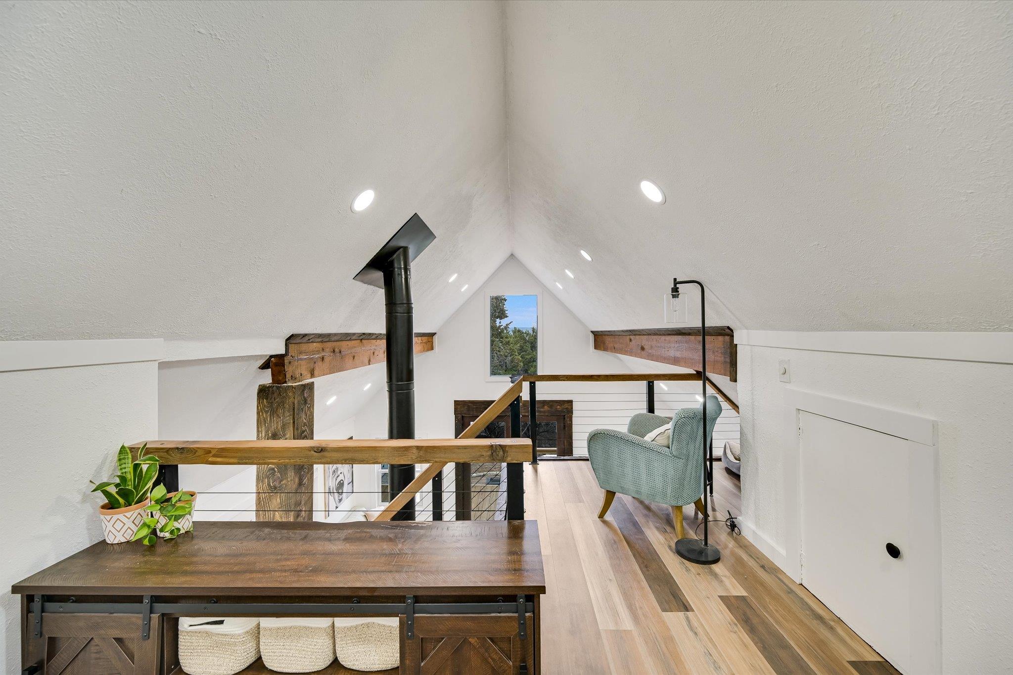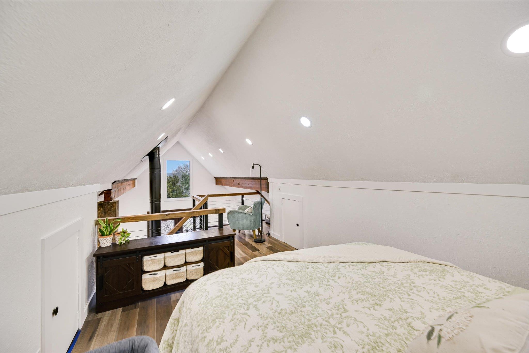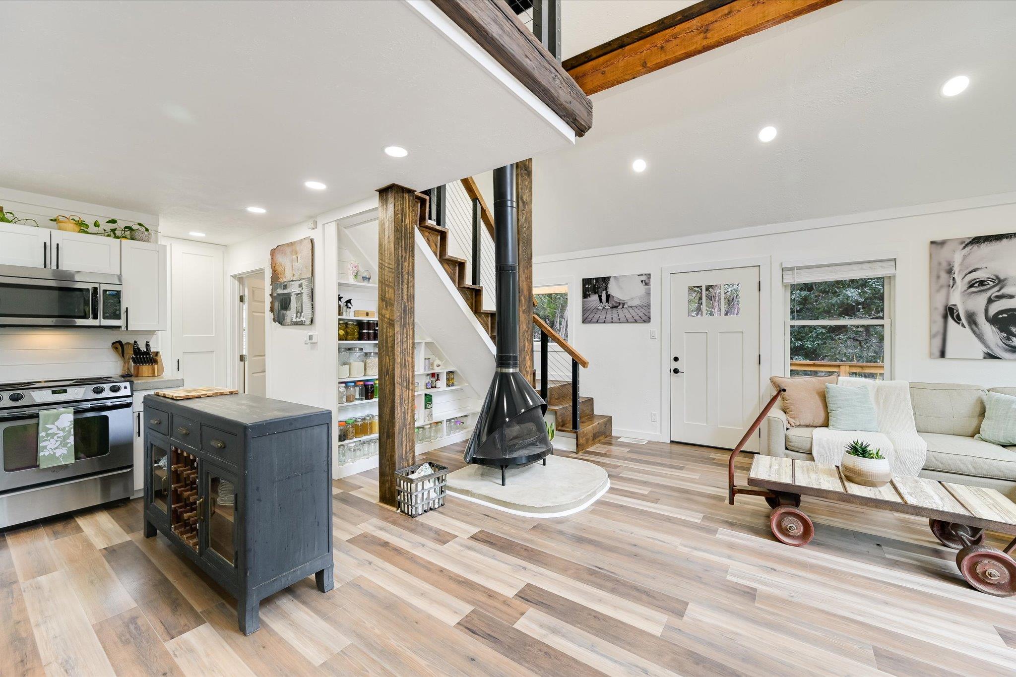 Tucked away just moments from the lake and surrounded by a canopy of mature trees, this charming modern cottage offers the perfect blend of privacy, comfort, and style. set on a peaceful, wooded lot, the home feels like a true retreat while still being close to the water and outdoor recreation. Inside, the bright open-concept living space features soaring vaulted ceilings, exposed wood beams, and an inviting wood-burning sto...