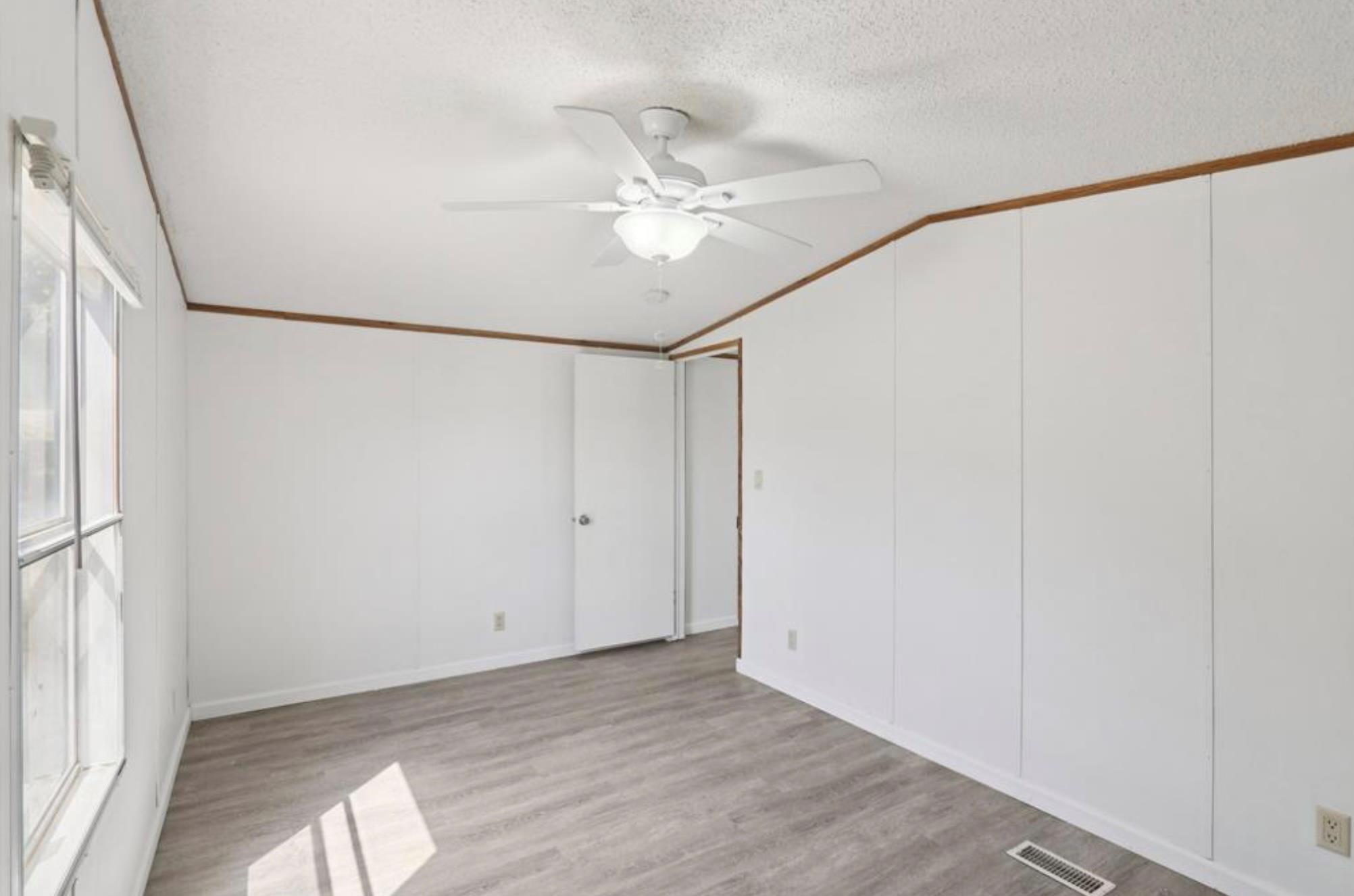 - Breakfast Bar, Ceiling Fan(s), Laminate Counters, Open Floorplan, Primary Bedroom on Main, Walk-In Closet(s)