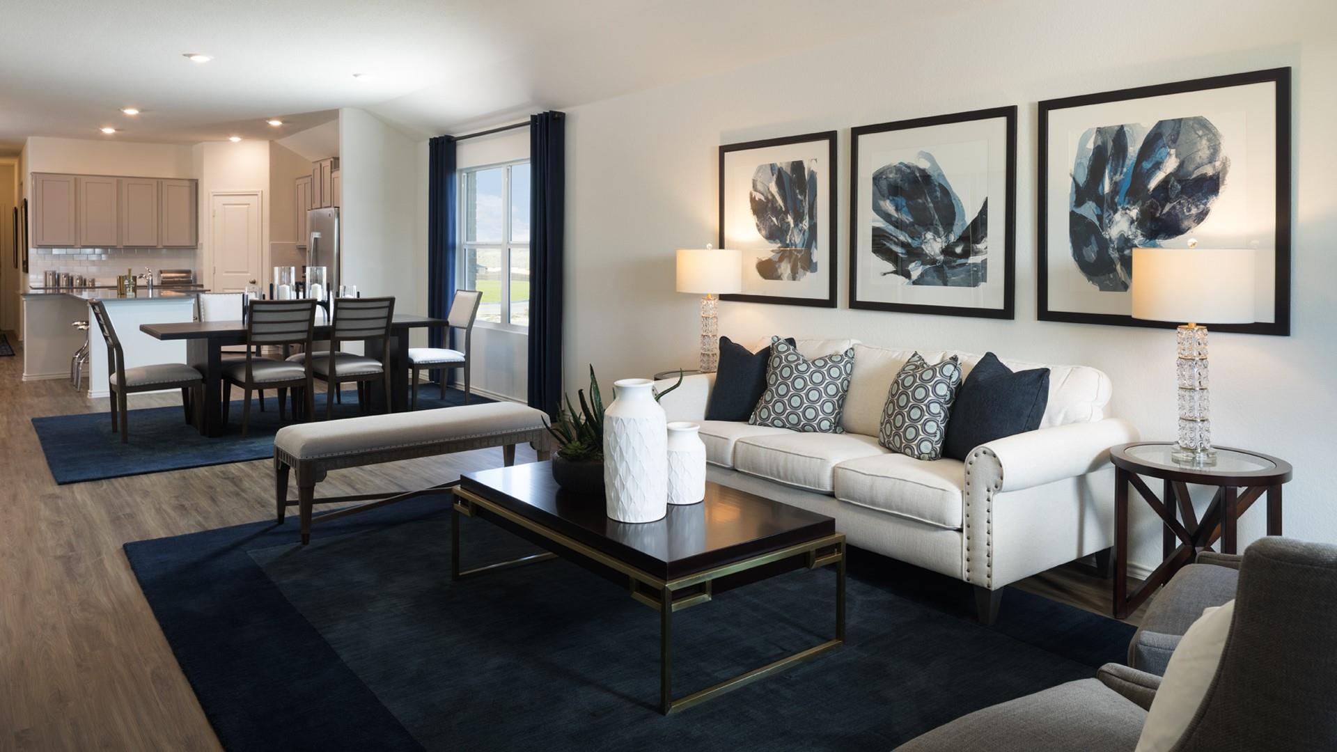 The Duff - This single-story home is perfect for families who need space. There is a bedroom suite by the front door with a bathroom and walk-in closet, as well as an owner’s suite in the back of the home. Two bedrooms share a bathroom in the hall and the open living area is adjacent with a kitchen, dining room, family room and a back patio. Photos are for illustrative purposes only. Estimated Completion January 2026. The comp...