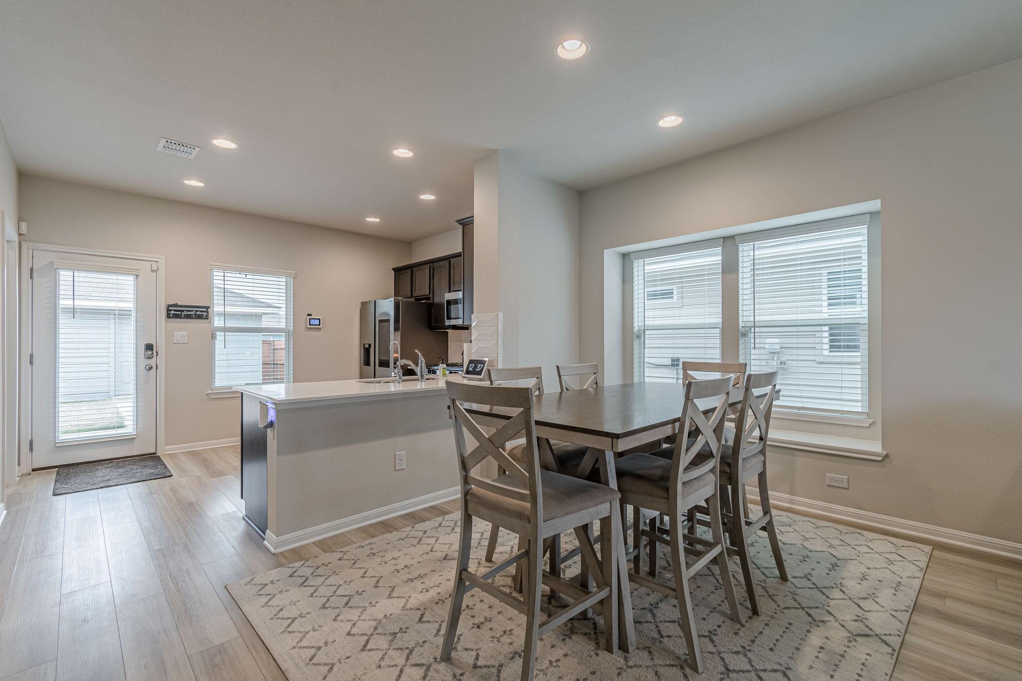 Stunning modern home with smart features in a desirable community. This practically brand-new 3-bedroom, 2-bathroom home offers a perfect blend of modern convenience and community living. Located just 5 minutes from I-35, it’s in walking distance to the amenity center, park, pool, volleyball, and basketball courts—making it ideal for families and active lifestyles. As you enter this spacious family home it opens up to the l...