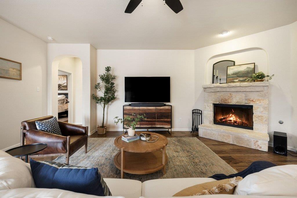 Tucked into the Texas Hill Country with sweeping sunset views and greenbelt privacy, this West Cypress Hills home offers exceptional value and a layout that genuinely works. The main level functions as a complete single-story home - primary suite, two secondary bedrooms, open-concept kitchen and breakfast area, an optional office or additional bedroom, and a spacious family room with fireplace. A dedicated formal dining room ...