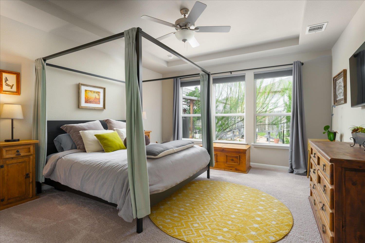 This spacious home welcomes you the moment you enter. A private home office sits to the left of the entry, while two secondary bedrooms are located on the opposite side of the home, offering privacy and flexibility. The heart of the home is the cozy family room featuring high ceilings and large windows that fill the space with natural light. Custom blinds and shades have been installed throughout the home for added comfort and...
