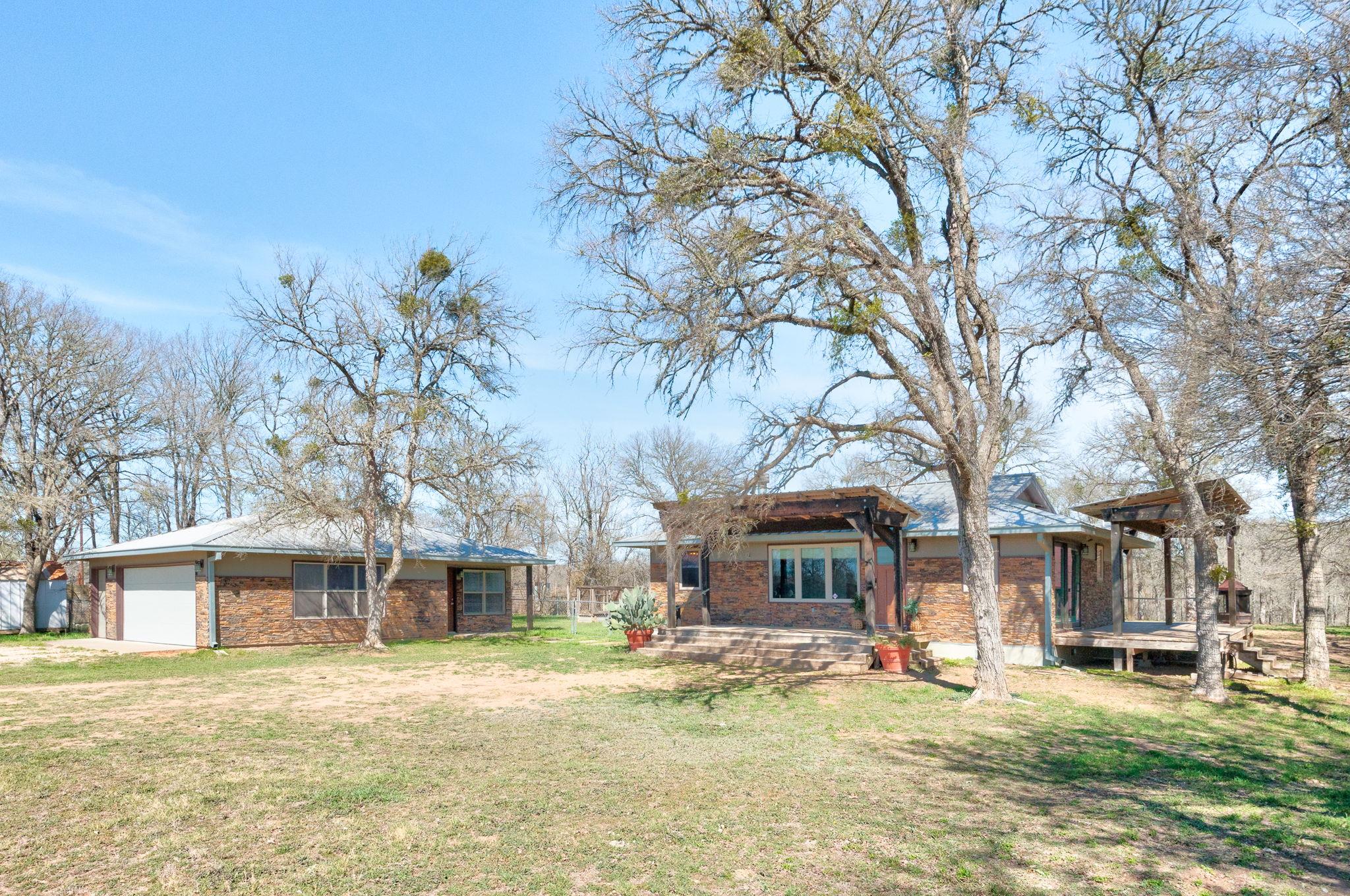 Set on 5.4 acres approximately 35 minutes from downtown Austin, this gated property offers privacy, flexibility, and space to create your ideal setup. Located behind a privacy fence with an electric gate, the property includes a main residence, detached guest studio, a 1,200 square foot shop, and a dedicated two-car garage with a separate golf cart space beyond the workshop. The main home features 2 bedrooms and 2 bathrooms wi...