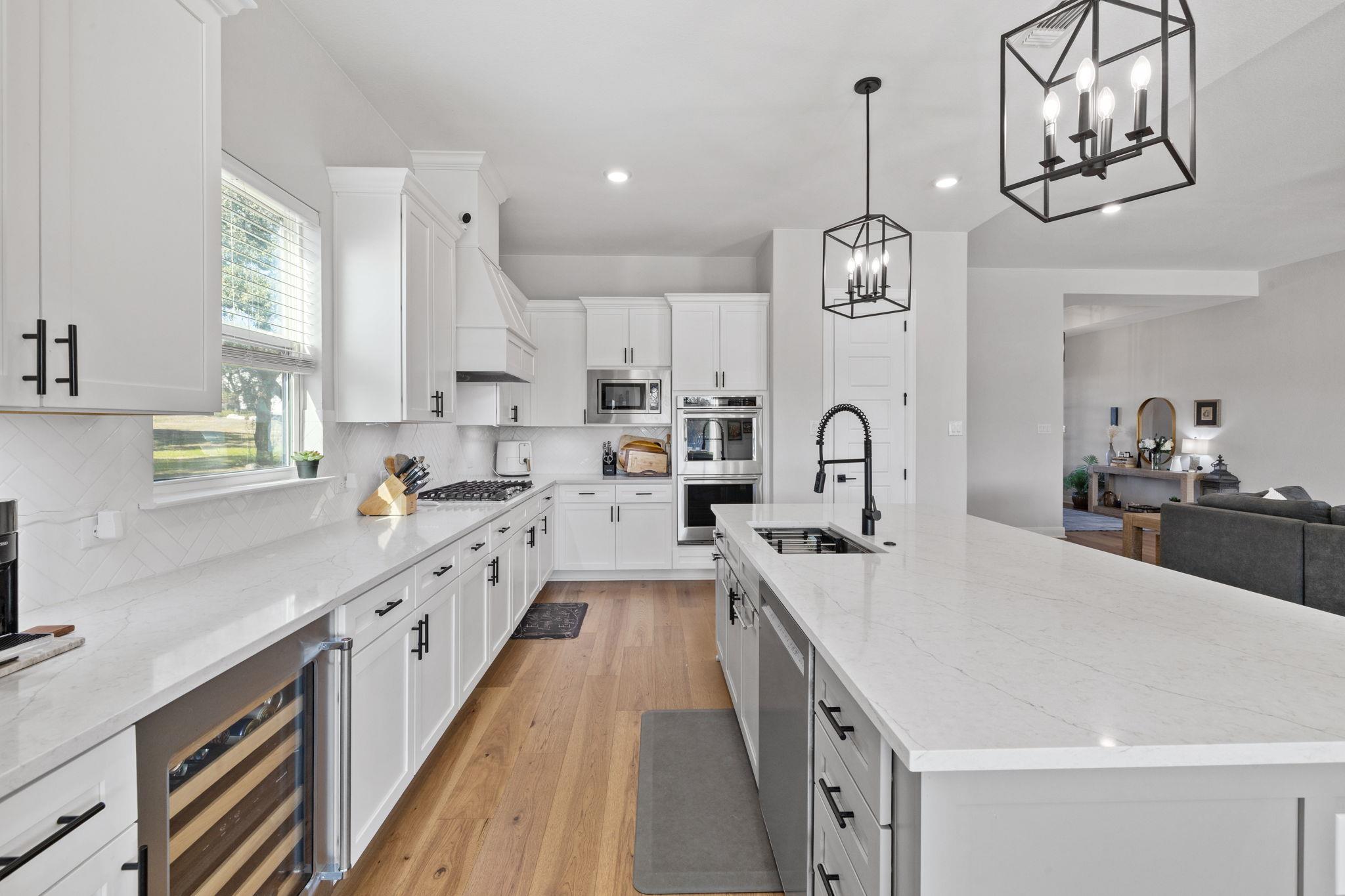 - Built-In Gas Range, Cooktop, Dishwasher, Exhaust Fan, Microwave, Water Softener Owned, Wine Cooler