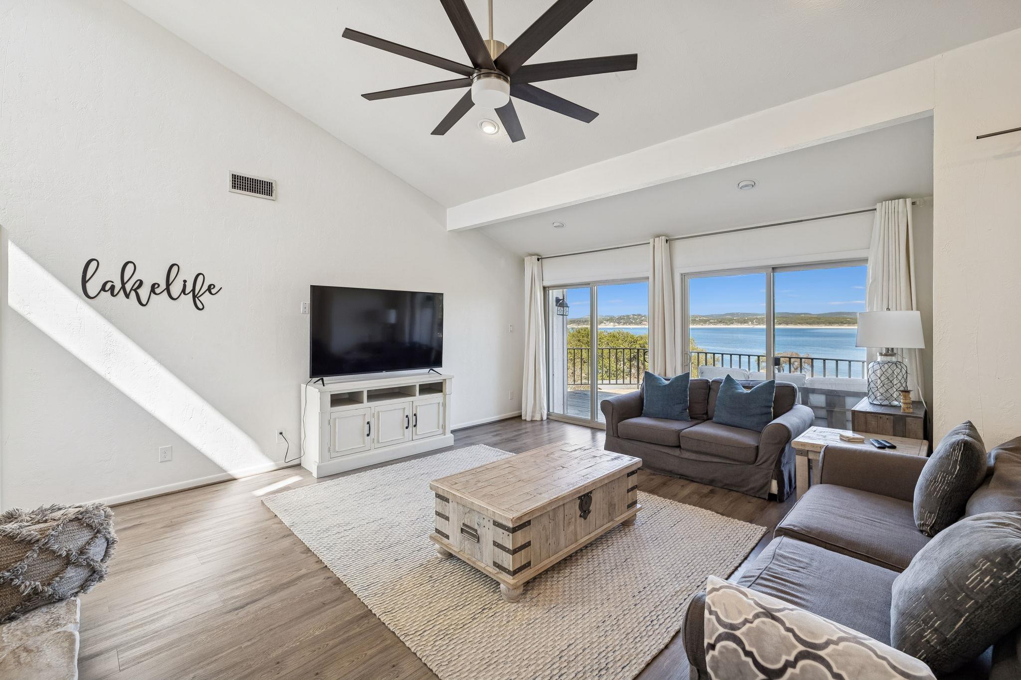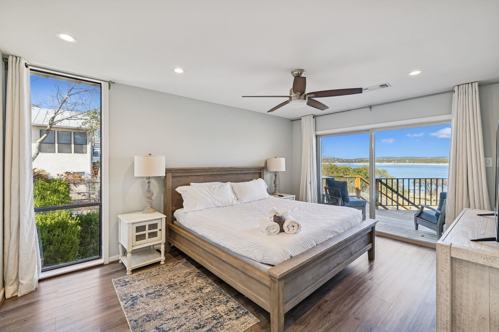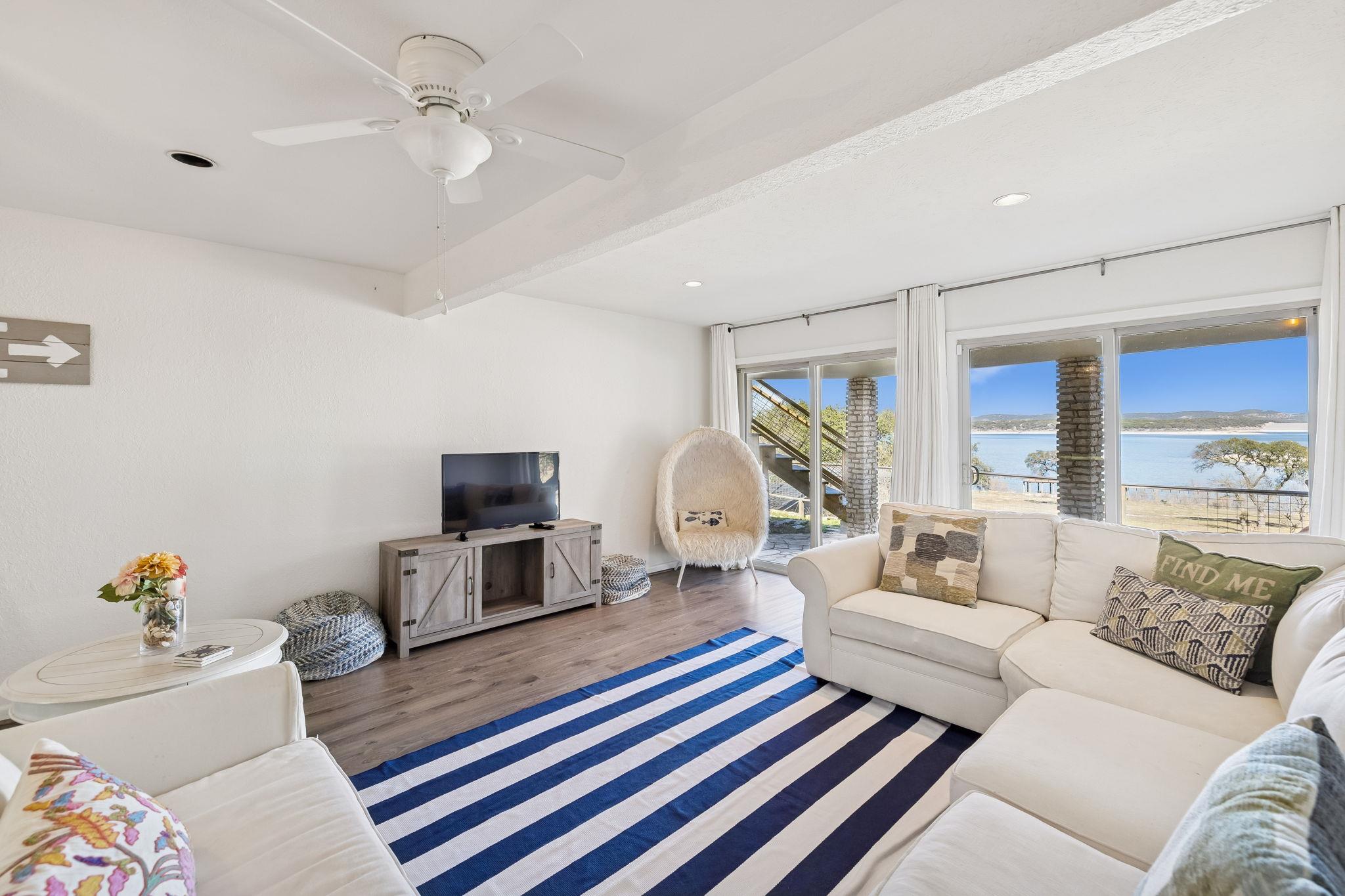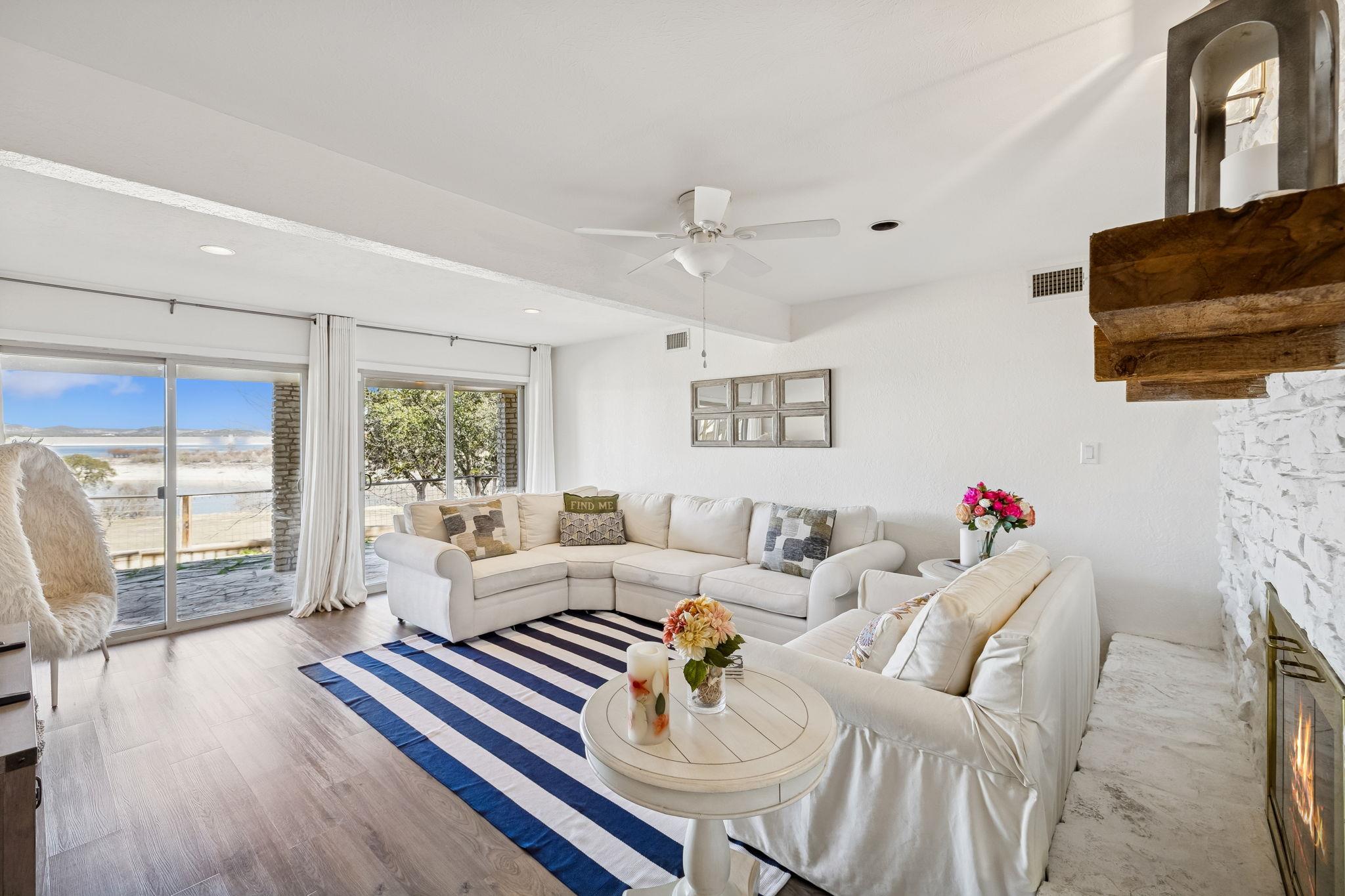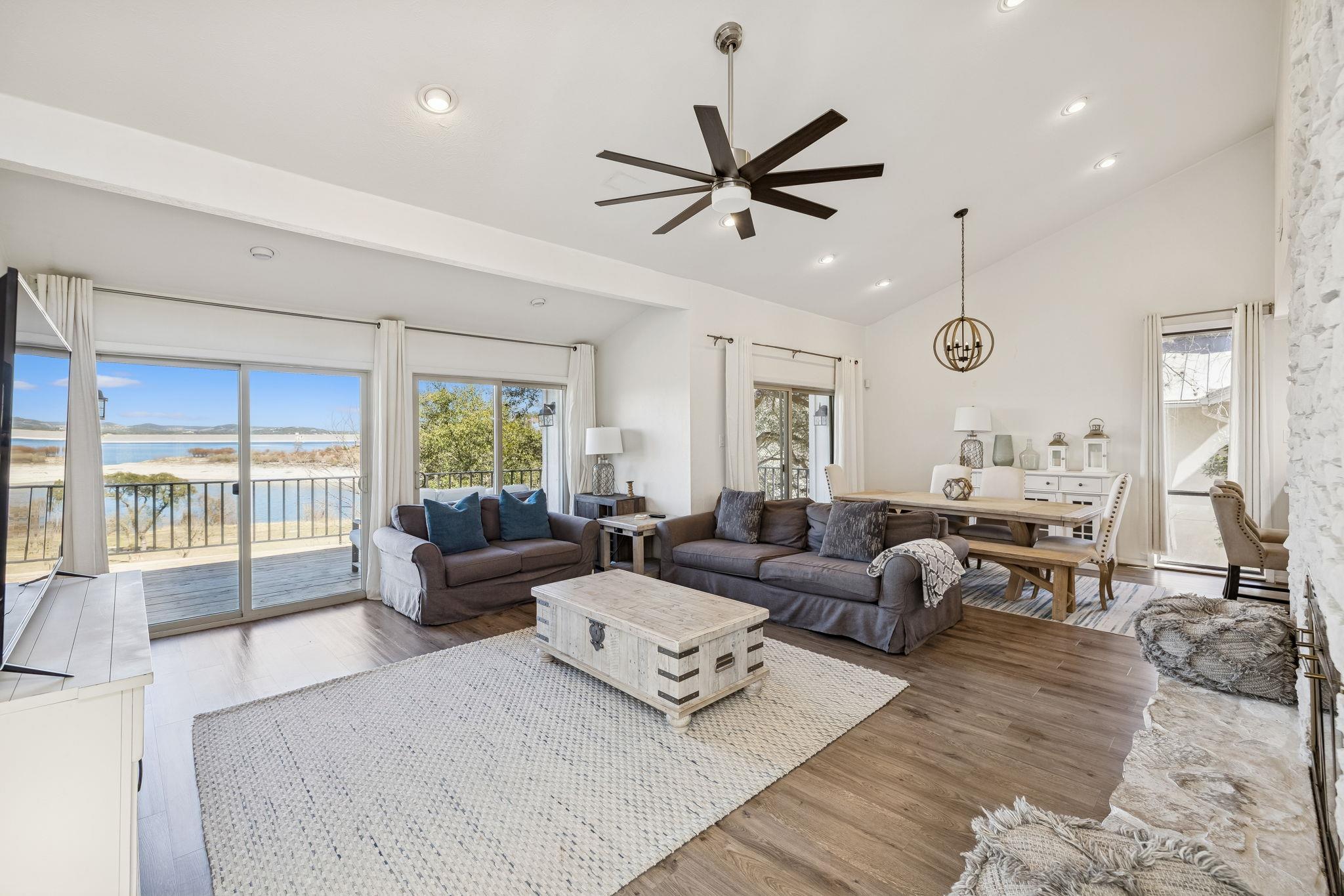 Premier Canyon Lake waterfront home with panoramic, unobstructed lake views and direct access to the shoreline. This fully renovated lake house offers expansive water views from nearly every room. Large sliding glass doors on both levels open to covered and open-air decks, creating seamless indoor-outdoor living and maximizing the lakefront setting. The upper deck provides a commanding vantage point with Canyon Lake as the bac...