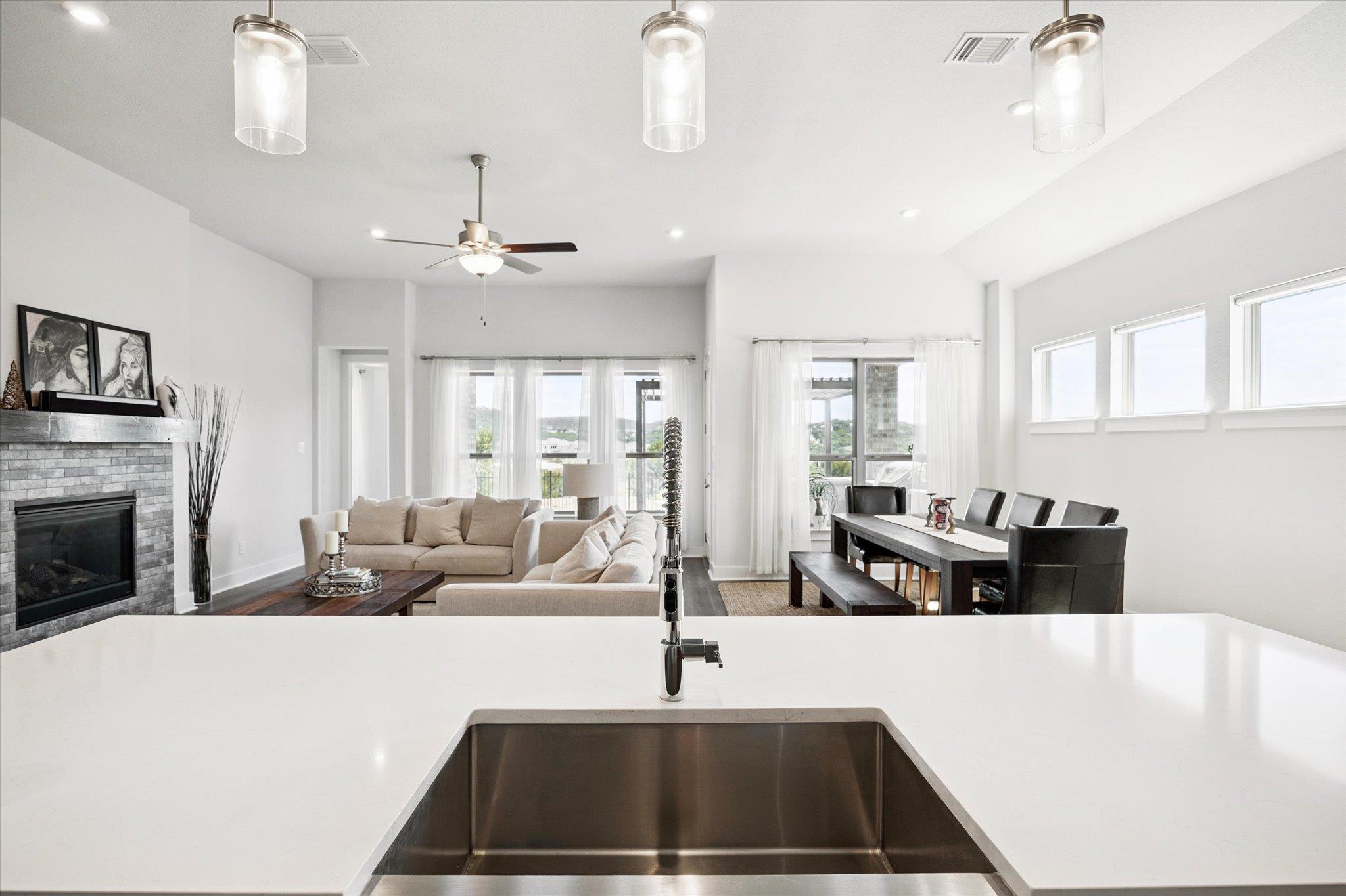 Location is everything with this beautiful one story stucco and stone home in desirable Tessera on Lake Travis. In addition to all the amazing amenities afforded in this lake community, you will discover refined living in a stunning 4-bedroom, 3-bath open concept home overlooking the Canyon- that means stunning views and NO rear neighbors! Designed with high-end appointments and timeless style, this home checks all the boxes f...