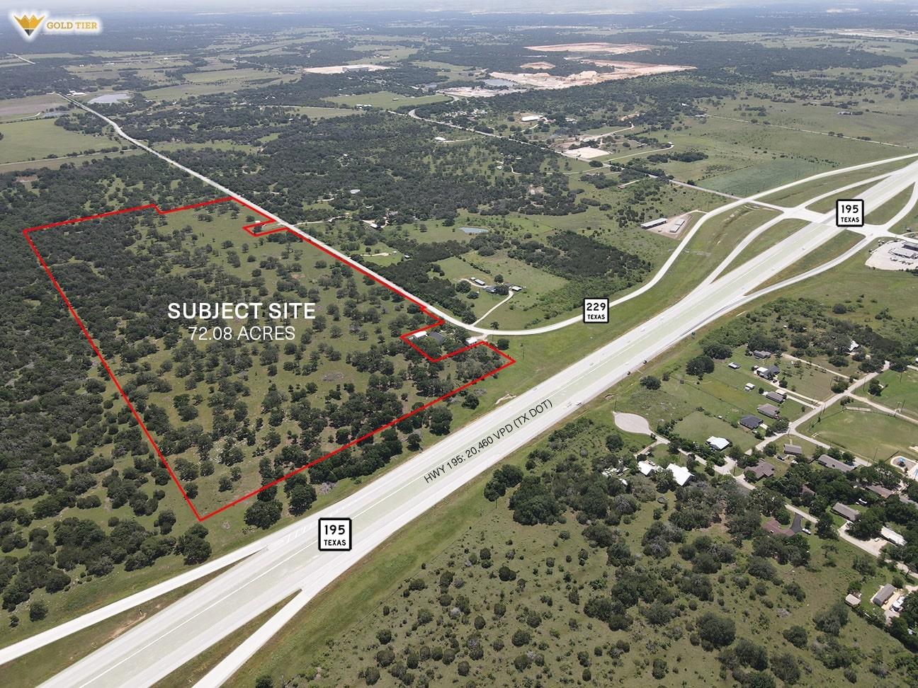 Gold Tier Real Estate is proud to present an exceptional development opportunity: 72 acres on CR 229 in Florence, Texas. This prime property features an impressive 2,700 feet of frontage on CR 229 and 1,200 feet of frontage on Highway 195, offering outstanding visibility to passing traffic—a perfect marketing advantage for future businesses. Key infrastructure highlights include a 6-inch water line along CR 229. An 8-inch wa...