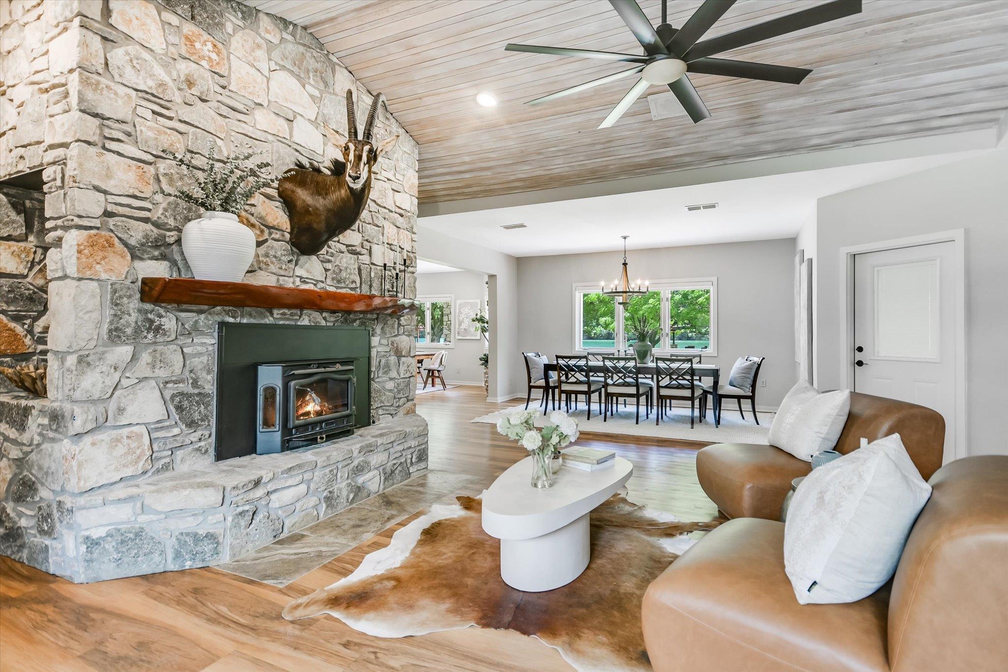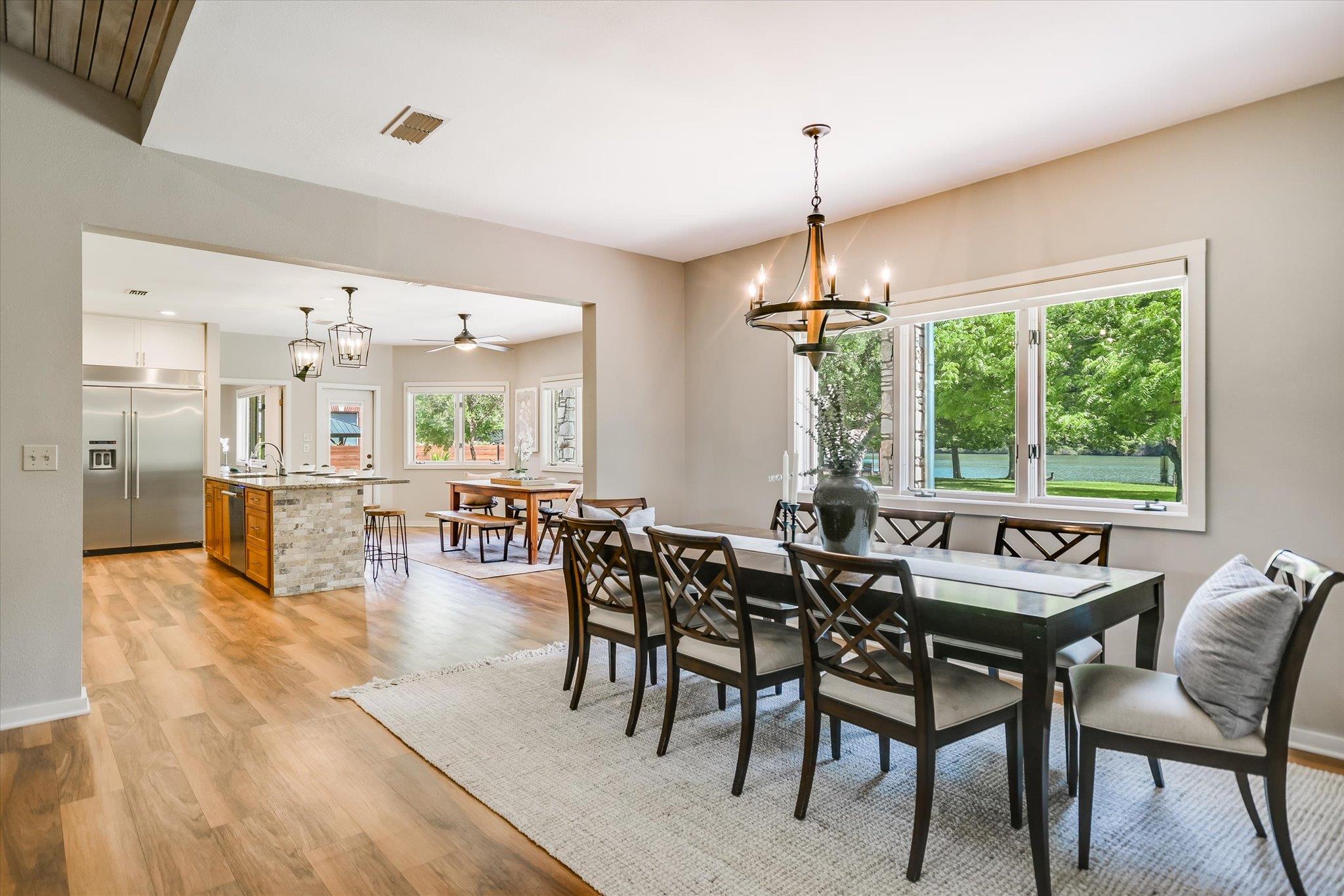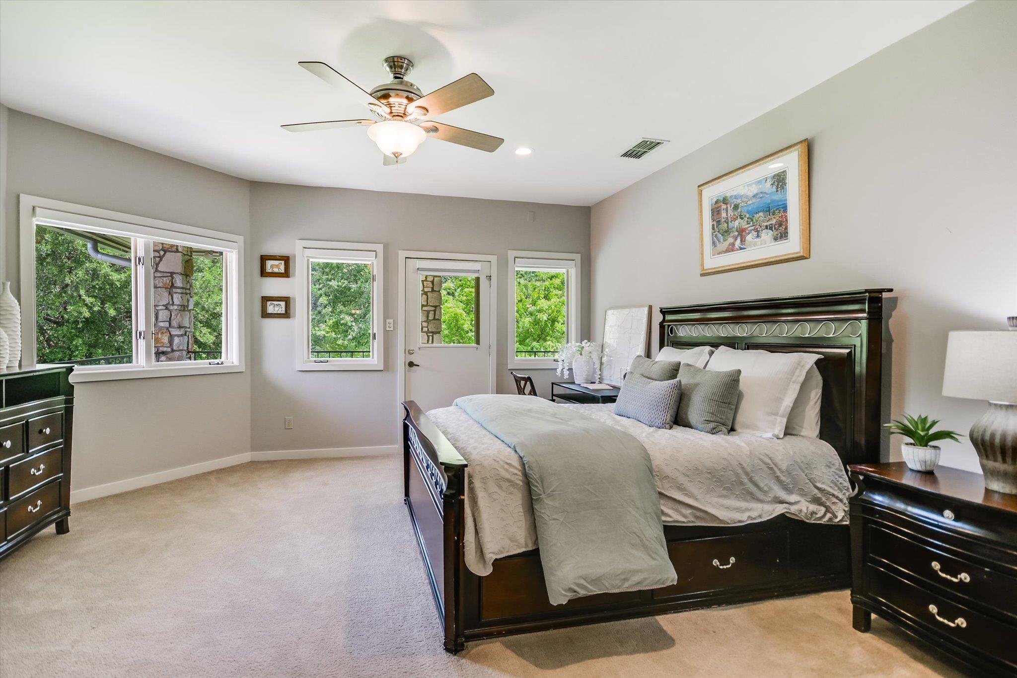 Tucked away on a peaceful cul-de-sac adjacent to Austin's beloved Emma Long Park, this charming waterfront estate offers a rare blend of natural beauty, privacy and timeless design. Built for effortless living, the main residence lives like a single story home, featuring spacious living areas, chef's kitchen, two bedrooms, office and exercise room on the main level. Oversized windows bathe the interior in natural light while s...