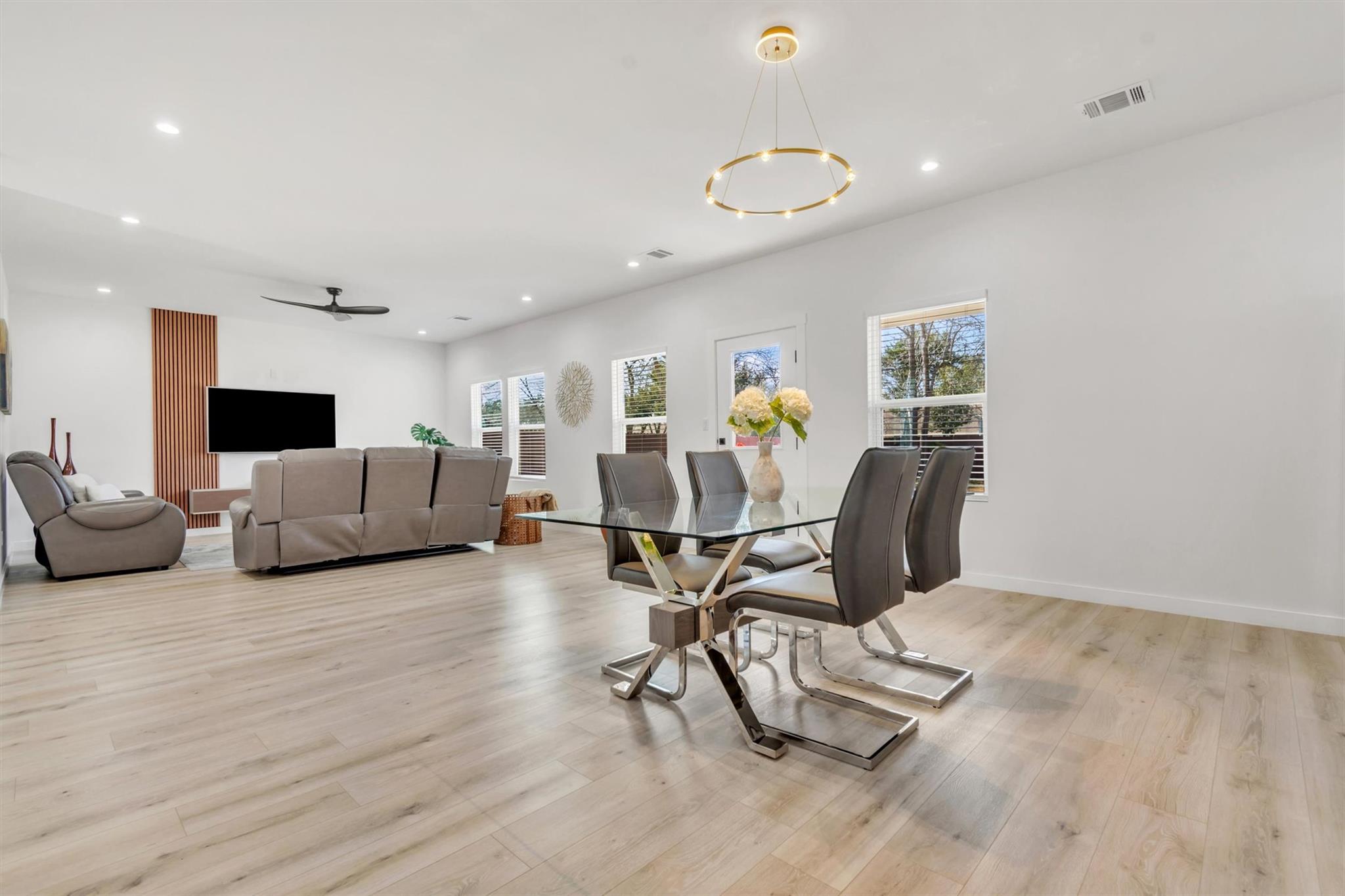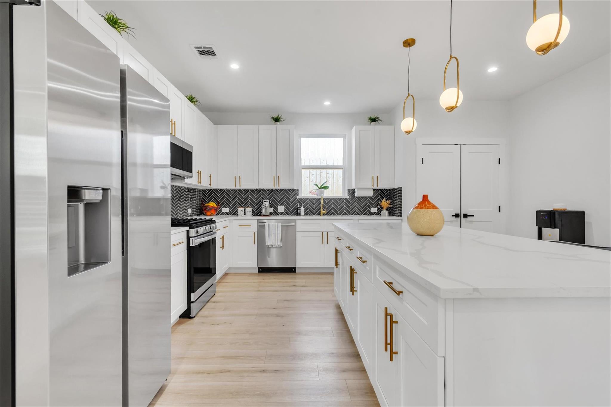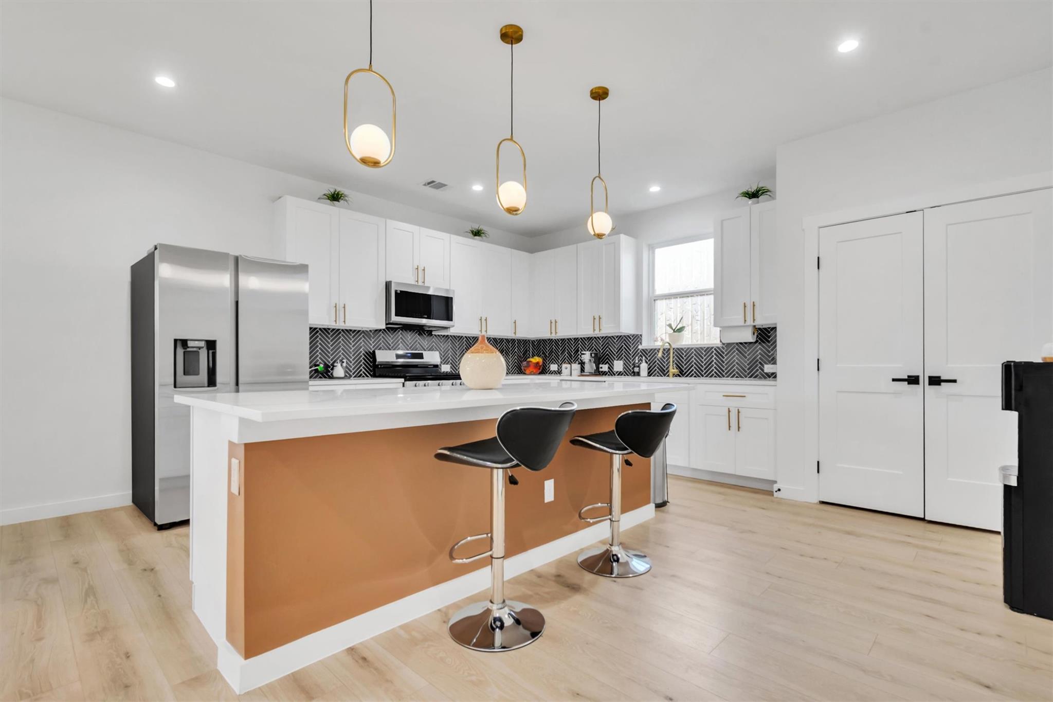 Modern farmhouse with an open-concept layout and upscale finishes. The kitchen features white cabinetry , quartz countertops and a herringbone backsplash. Filled with natural light and designed for both comfort and style, this home is a must-see in a desirable Taylor location.