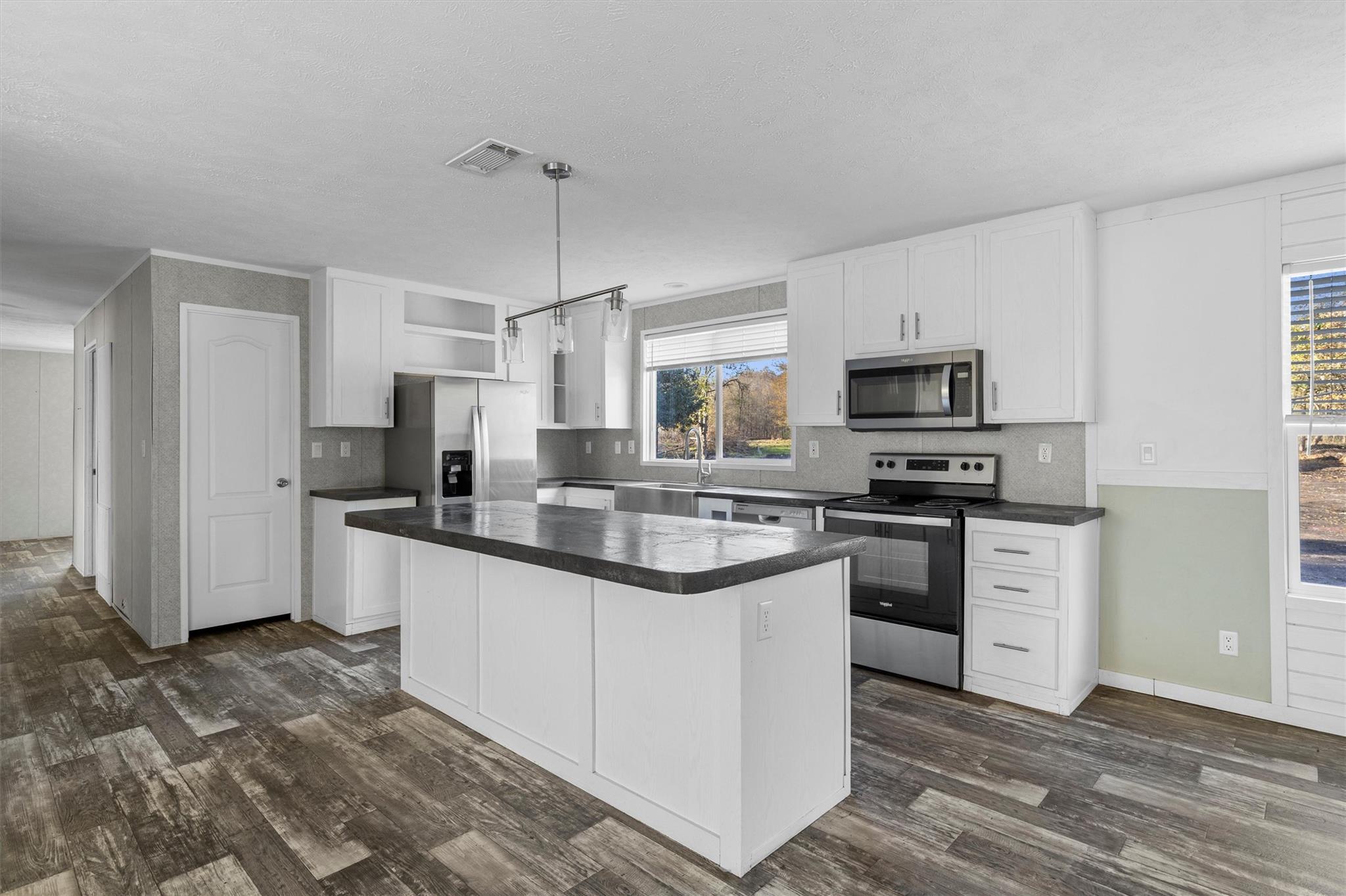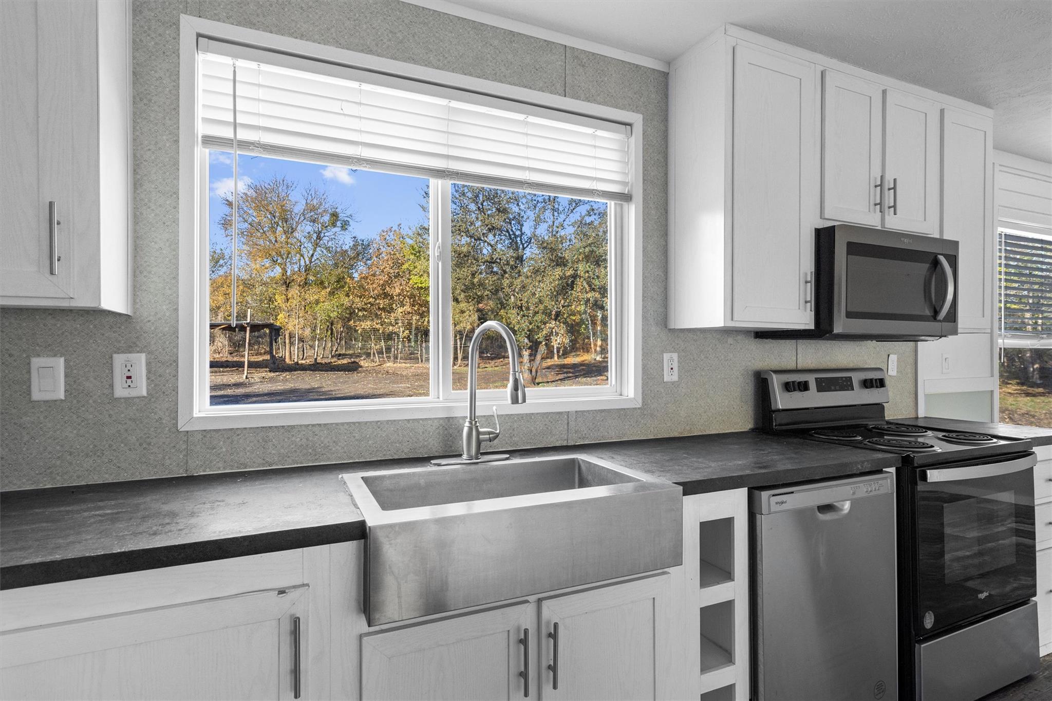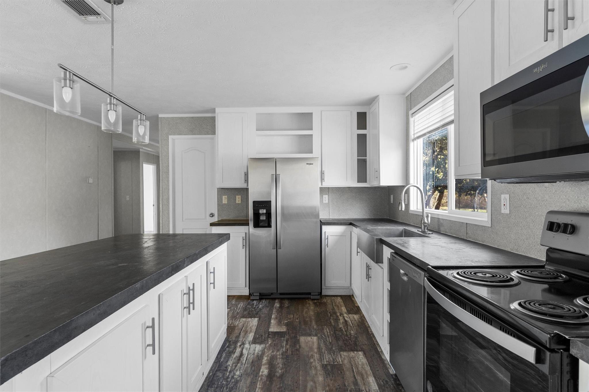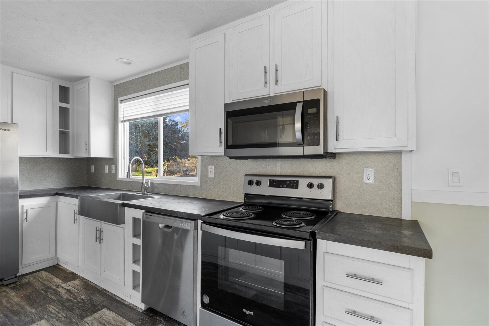 - Cooktop, Dishwasher, Disposal, Exhaust Fan, Microwave, Oven, Range, Stainless Steel Appliance(s), Electric Water Heater