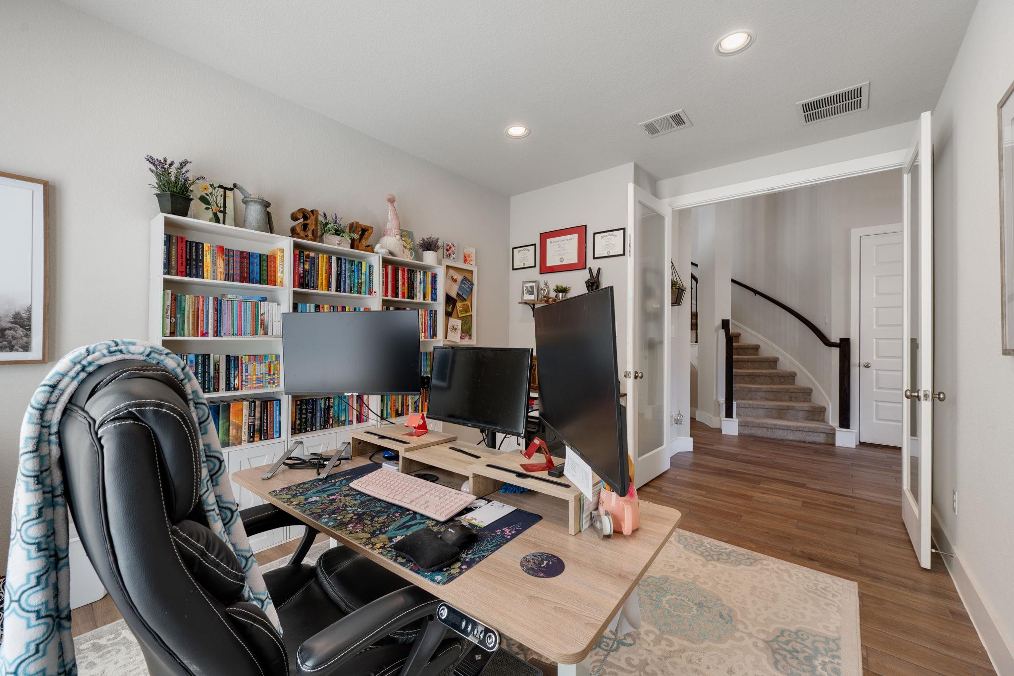 Step into this stunning two-story home featuring 4 bedrooms and 3.5 baths, highlighted by a dramatic two-story rotunda entry that sets the tone for the elegant design throughout. A private home office with French doors sits just off the entry, across from a sweeping curved staircase. The open-concept kitchen is a true centerpiece, offering a corner walk-in pantry, abundant counter space, a 5-burner gas cooktop, and a large isl...