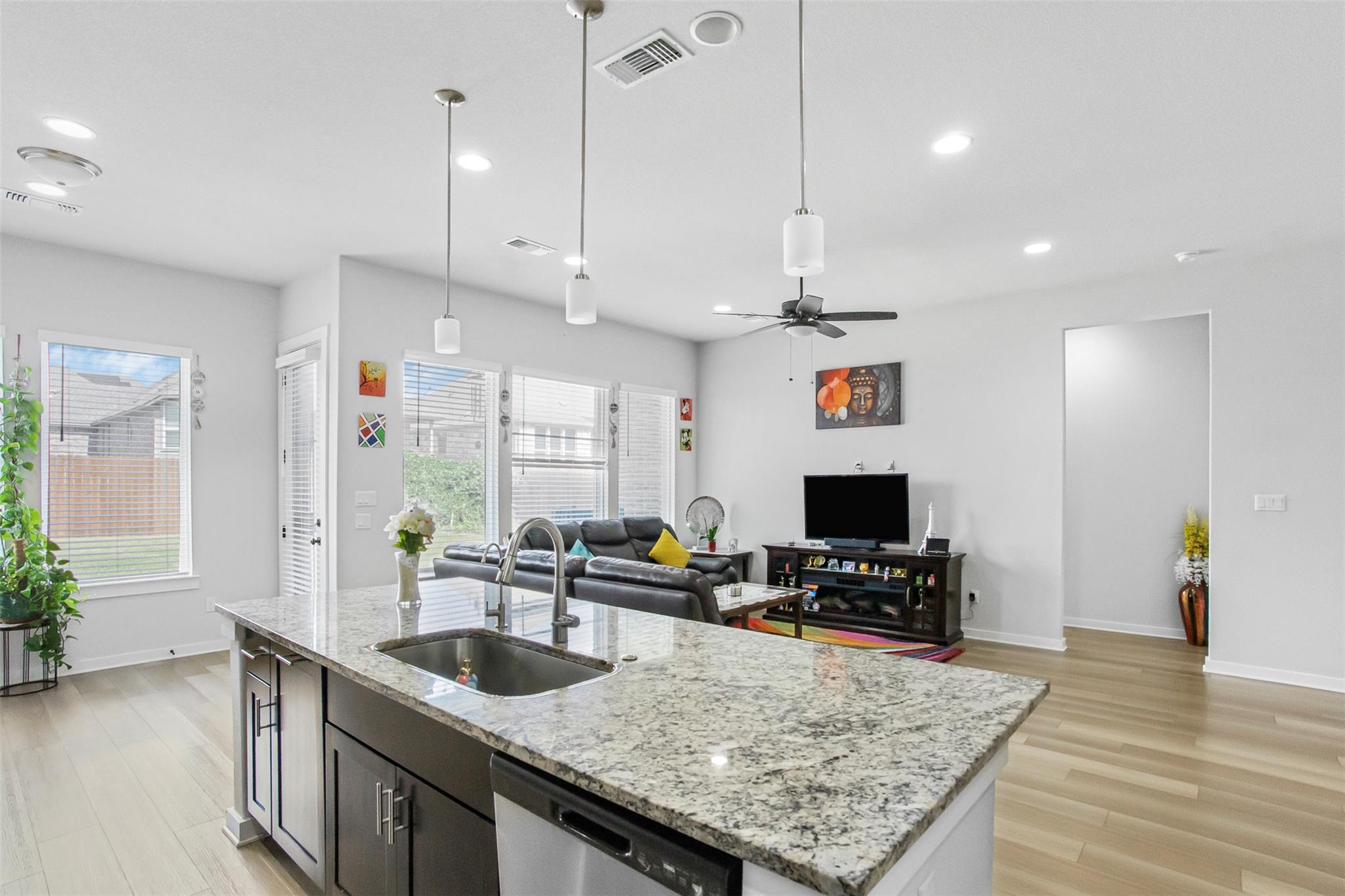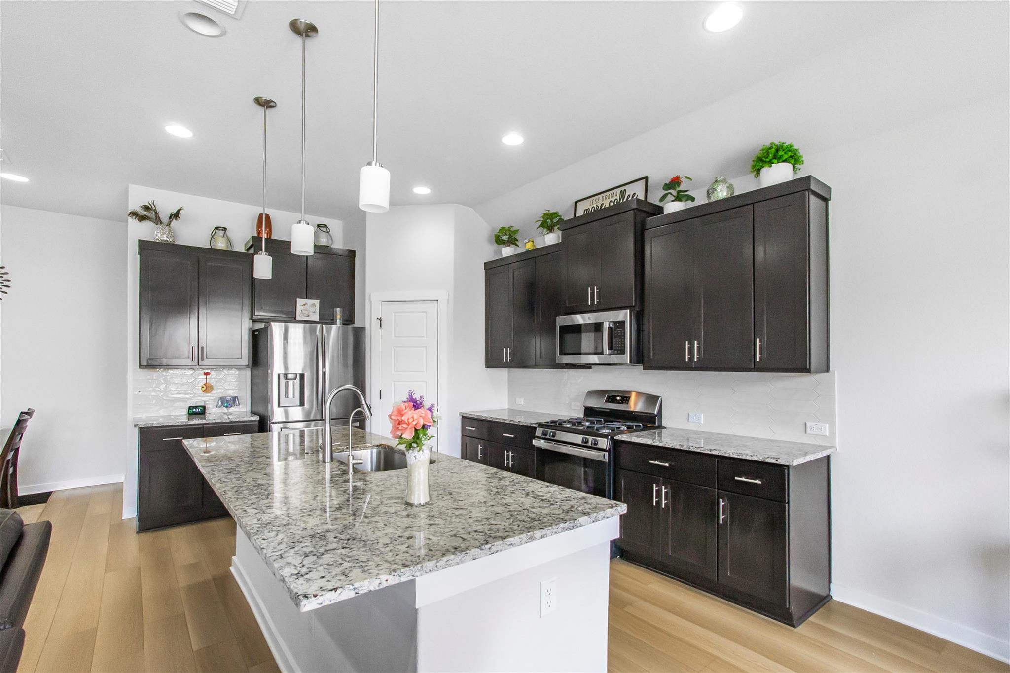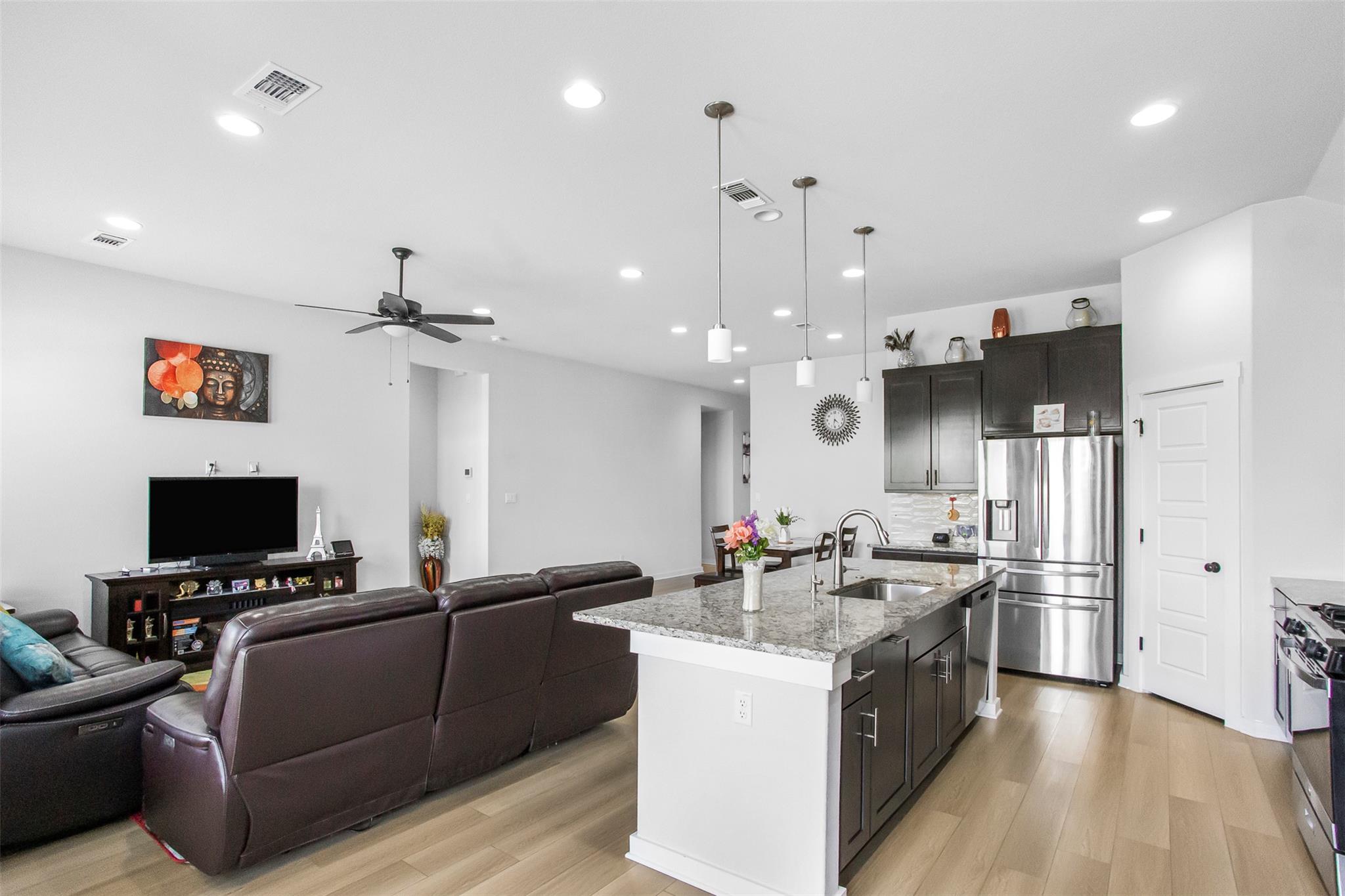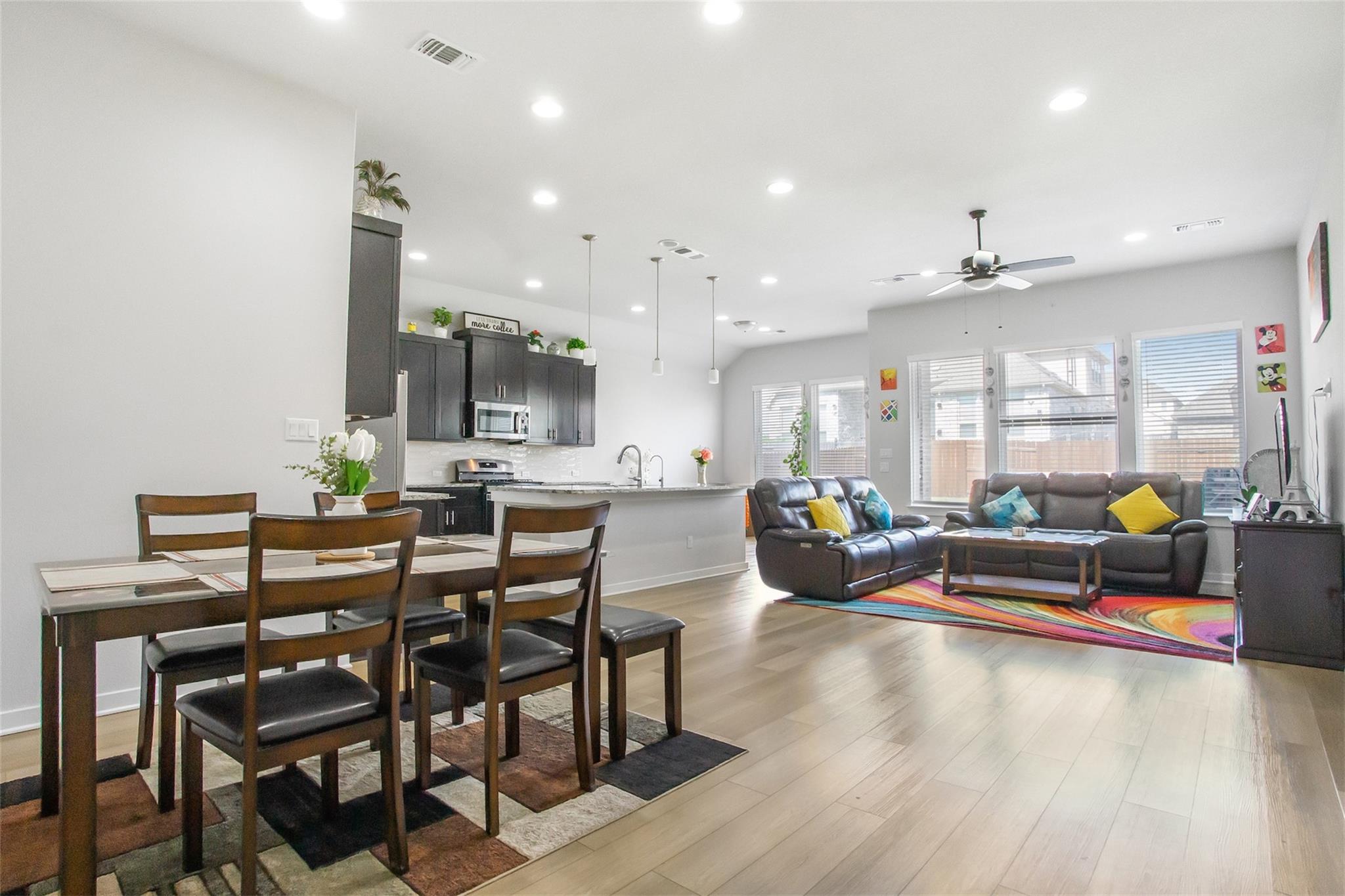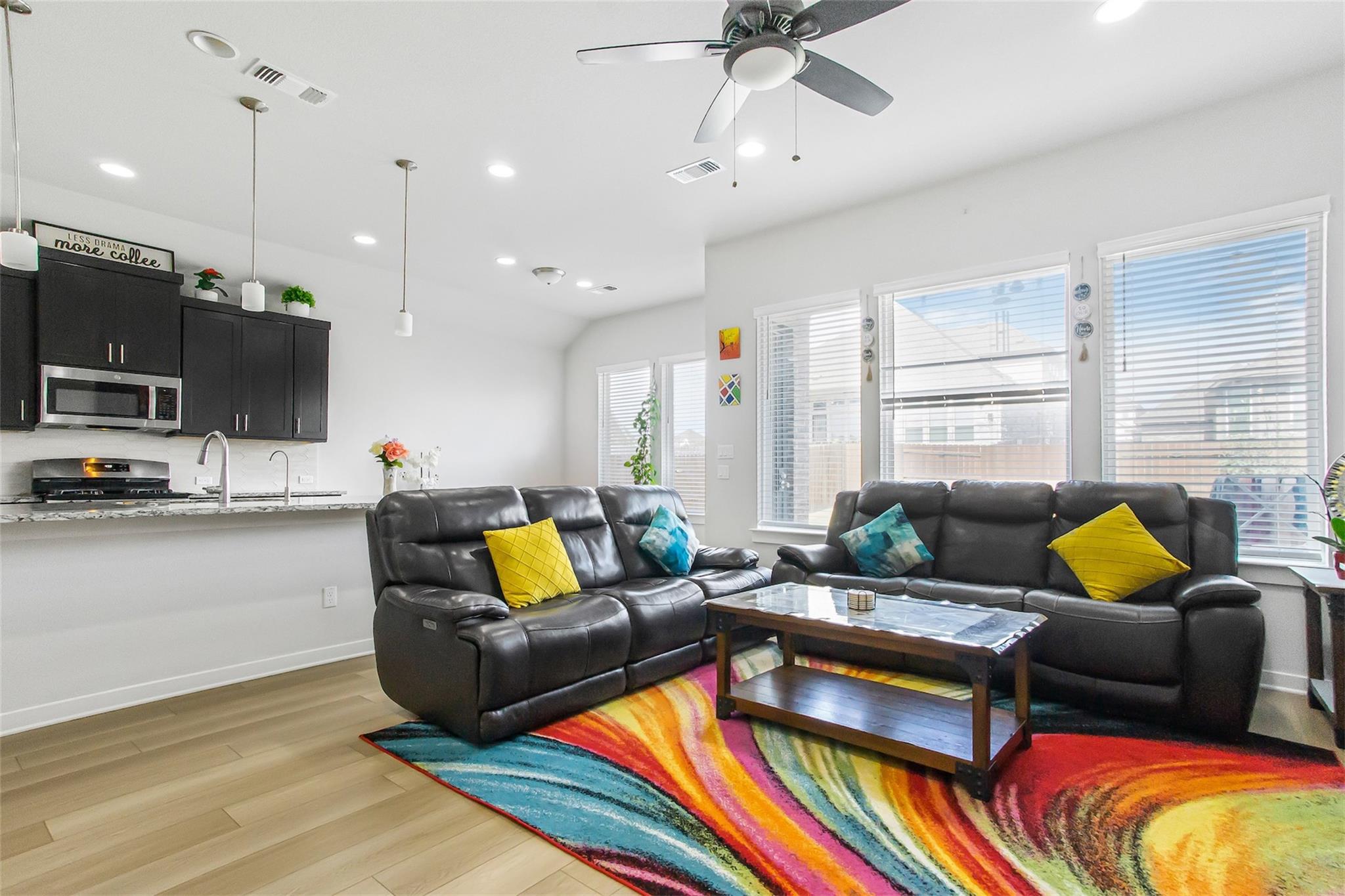 Welcome to refined living in the highly sought-after Bar W Ranch subdivision. This impeccably upgraded residence blends elegance, comfort, and thoughtful design at every turn. From the moment you arrive, the striking 6-foot stained glass front door creates a grand first impression, complemented by decorative landscape brick accents and a beautifully tiled front porch. Inside, upgraded vinyl flooring flows seamlessly through t...
