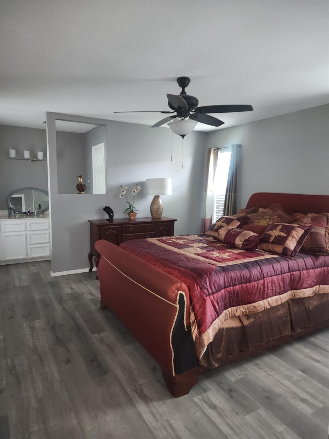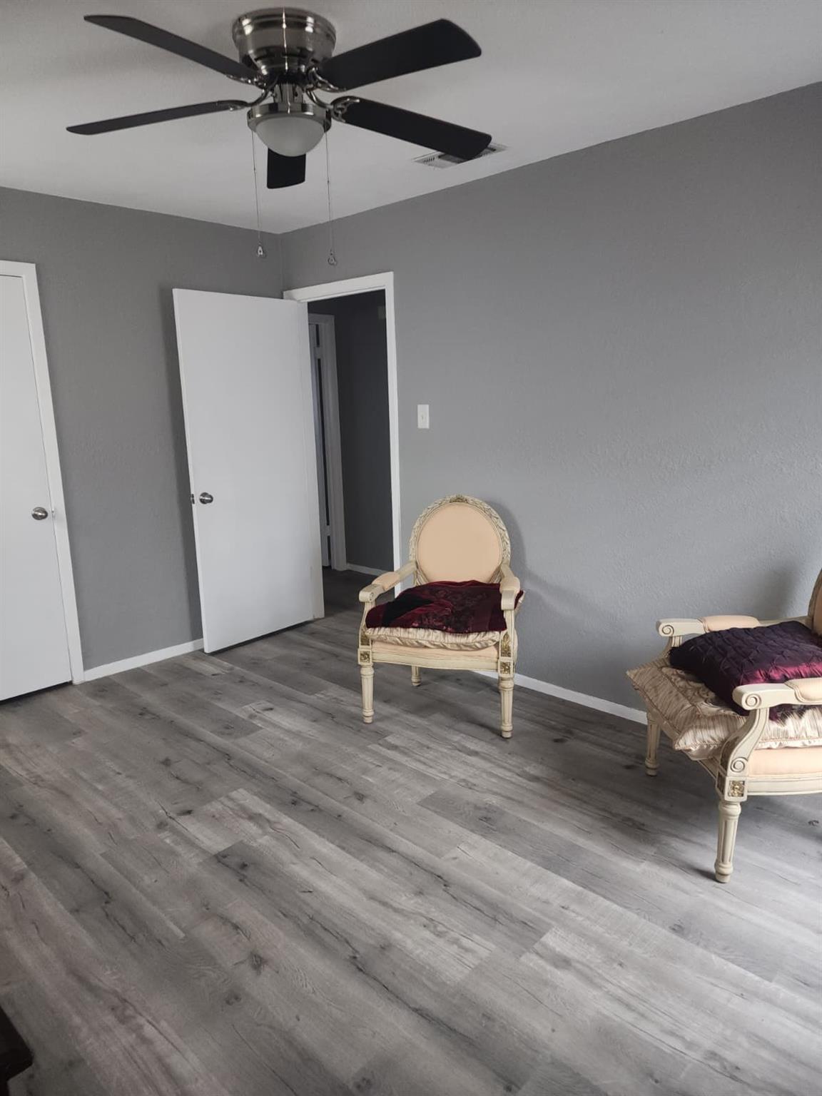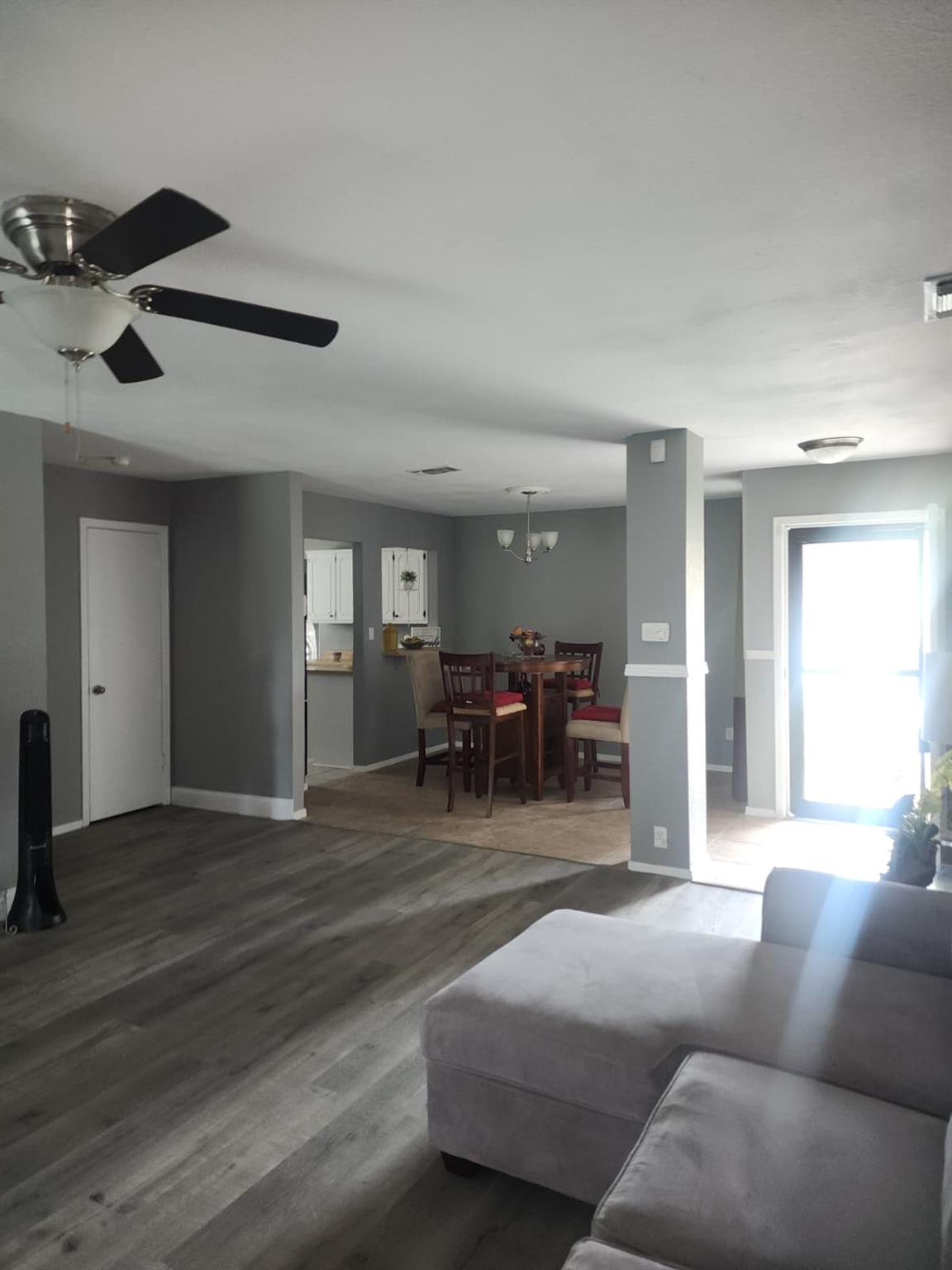 This cozy single-story home on a cul-de-sac street has 3 bedrooms and two full baths, freshly painted inside and out (no more popcorn). The laminate flooring was recently installed, and the roof replaced in 2024. Private floorplan and approx. a quarter acre of land with a two-car garage and back street entrance to store your Recreation vehicle - covered patio and much more...call today for a personal showing