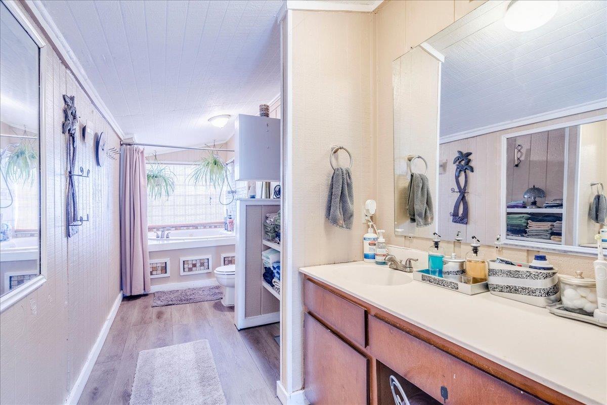 Welcome to 3.33 acres of Texas living surrounded by mesquite and oak trees. The land is relatively flat and easy to use, with plenty of space for hobbies, projects, or simply enjoying the outdoors. Outside you’ll find three storage sheds, raised garden beds, and an above-ground pool complete with decking and a covered area for relaxing in the shade. Inside, the home offers a spacious great room with wood beams, a wood-burning...