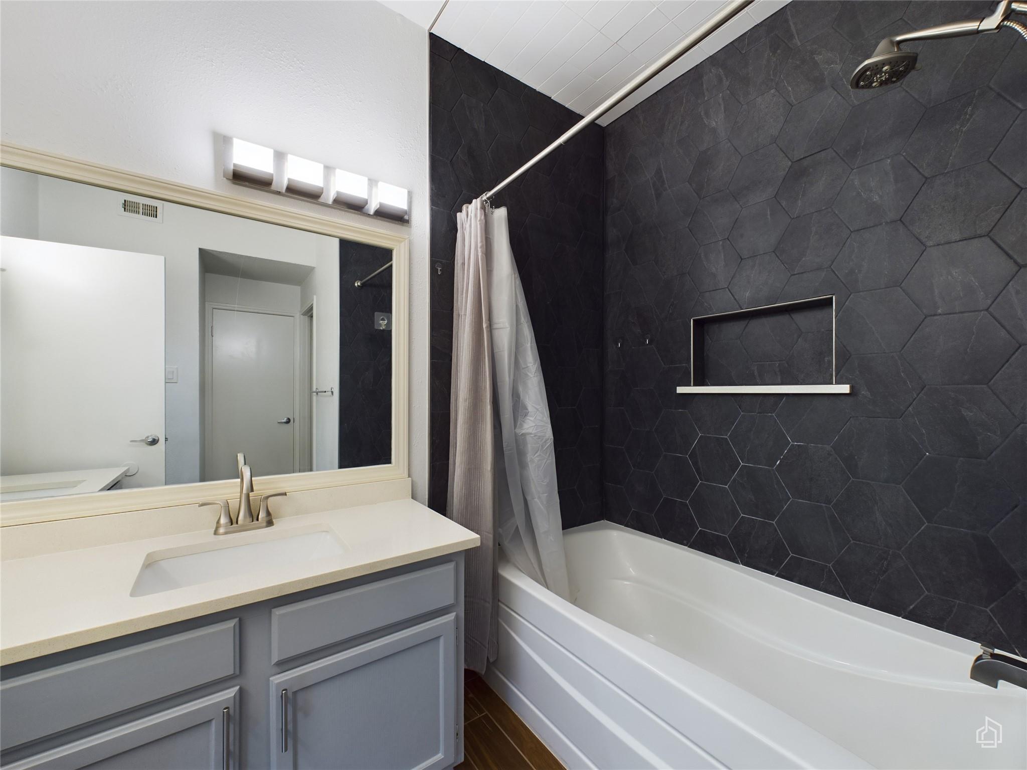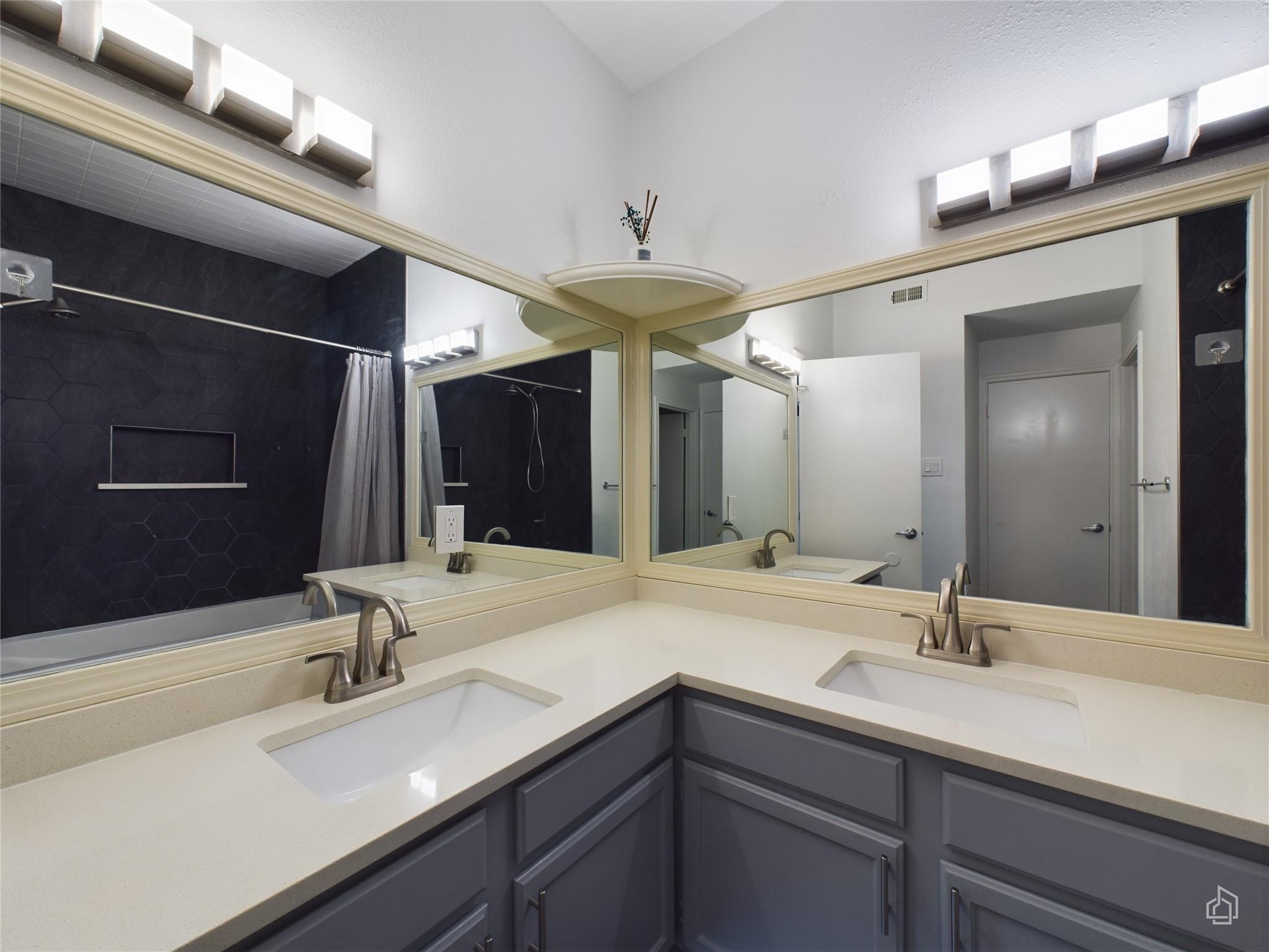 Welcome to this stunning, light-filled condo featuring an open-concept living area that flows seamlessly to an extended back patio with views of private green space. This first-floor unit boasts two spacious bedrooms, including a primary bedroom with a brand new en-suite bathroom complete with a new bathtub, shower, and updated tile, as well as a dual vanity with ample counter space. The spacious living room, perfect for en...