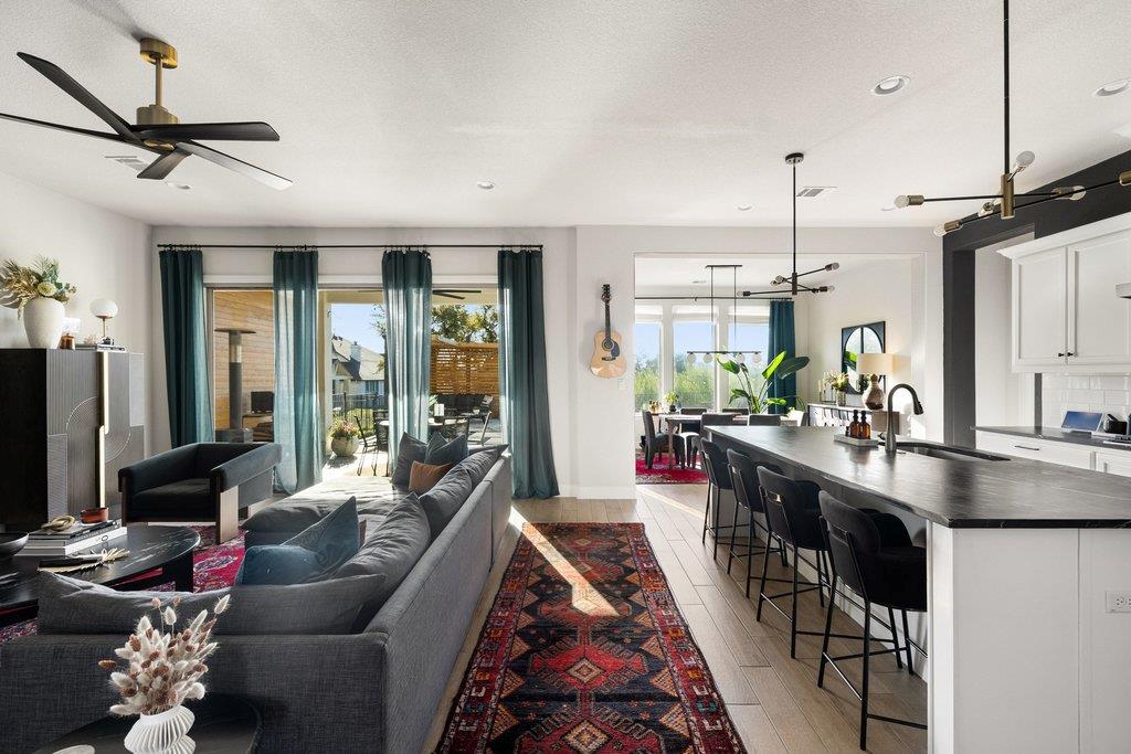 In a hilltop community where steep terrain restricts most backyards, this residence offers one of the rare true walk-out private yards. It backs directly to protected community greenspace and features serene Zen-inspired landscaping enhanced by soft accent lighting that creates an elegant evening ambiance. The private outdoor retreat includes a slat-wall pergola offering enhanced seclusion, a generous patio finished with over...