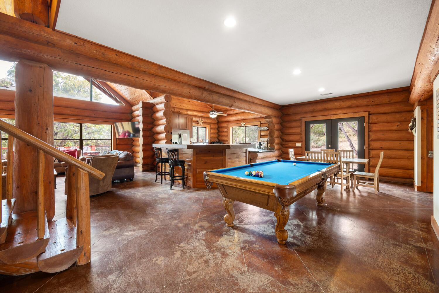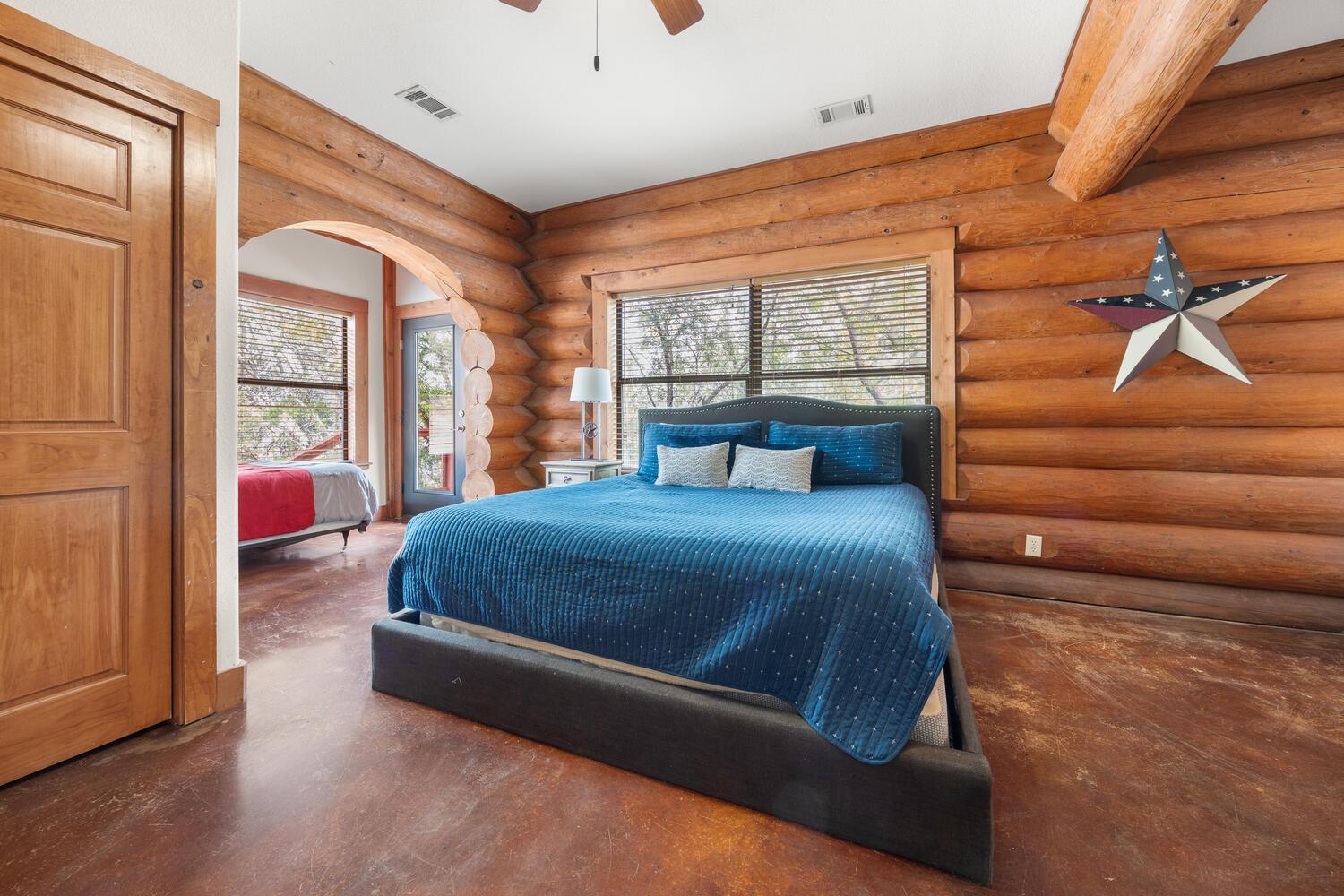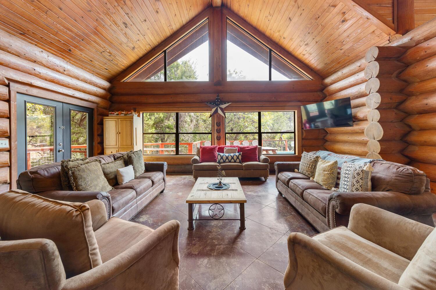 Discover this wonderful home in Log Country Cove, a perfect collection of homes built with 14 inch Canadian logs, and located on the Colorado River Arm of Lake LBJ. Sitting on 5.20 beautiful treed acres with a wet weather rolling creek, the setting is wonderful for enjoying the night skies, and the sounds of the hill country. The heated pool and large wrap-around deck are perfect for relaxation, and there is plenty of room for...