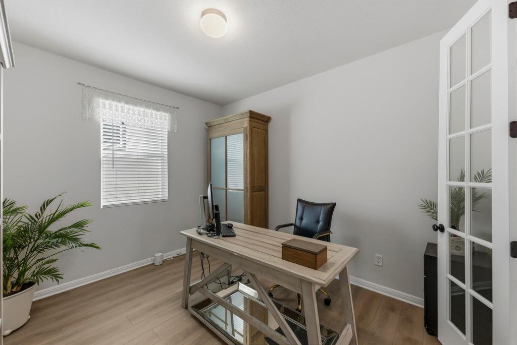 - Breakfast Bar, Ceiling Fan(s), Double Vanity, Eat-in Kitchen, Granite Counters, Ceiling-High, Kitchen Island, Recessed Lighting, Primary Bedroom on Main, Open Floorplan, Pantry, Study