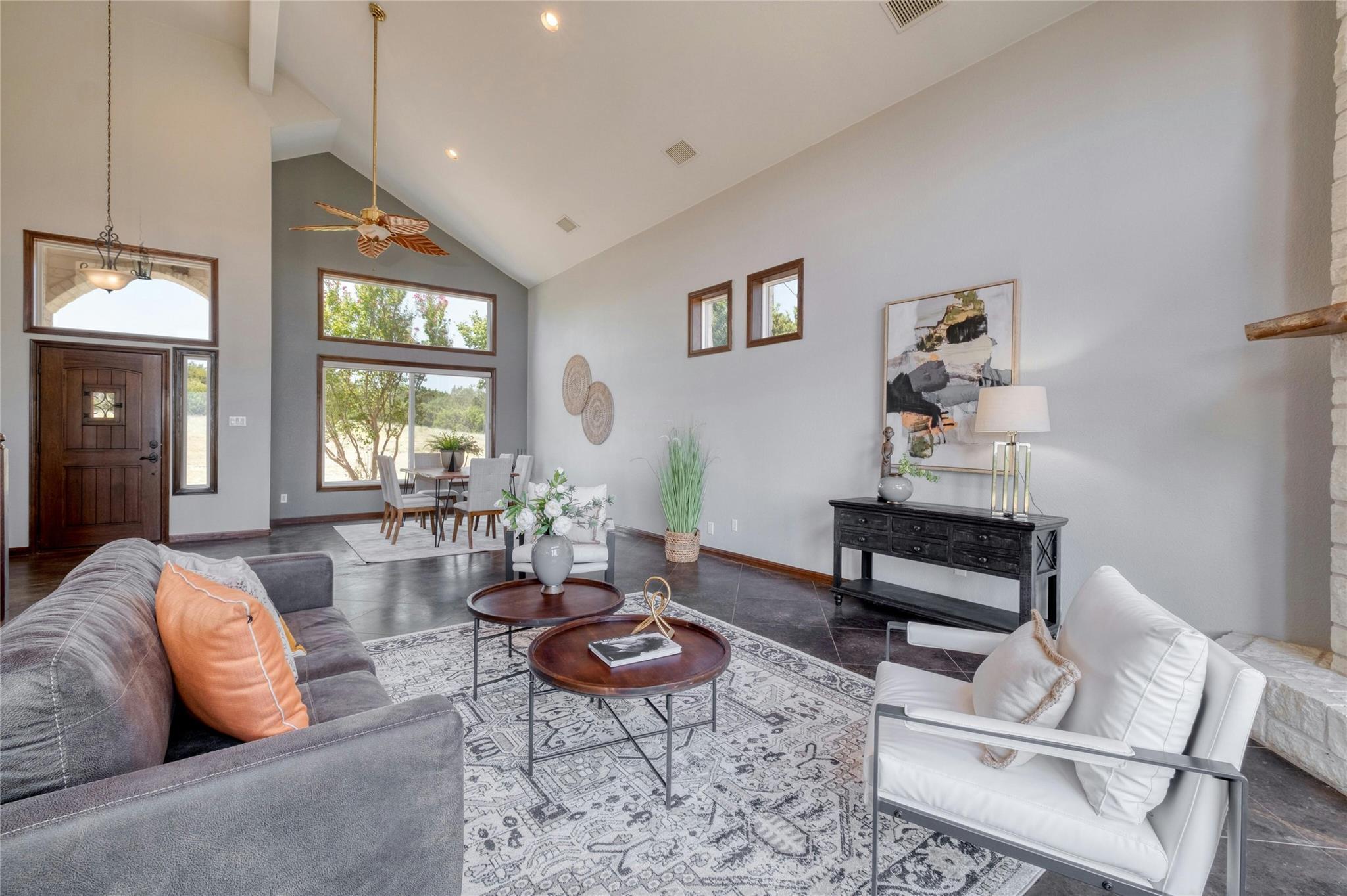 Highly sought after 28.67 acre hilltop property with long range views just 10 minutes from downtown Burnet, Texas. Experience the privacy of rural living with the convenience of town just 10 minutes away. Here sits a beautiful 2784 Sq Ft, 4 bedroom, 3 full bath home. The open floorplan was designed to take full advantage of the sweeping, long range views and the living room, kitchen and primary bedroom with balcony all share t...