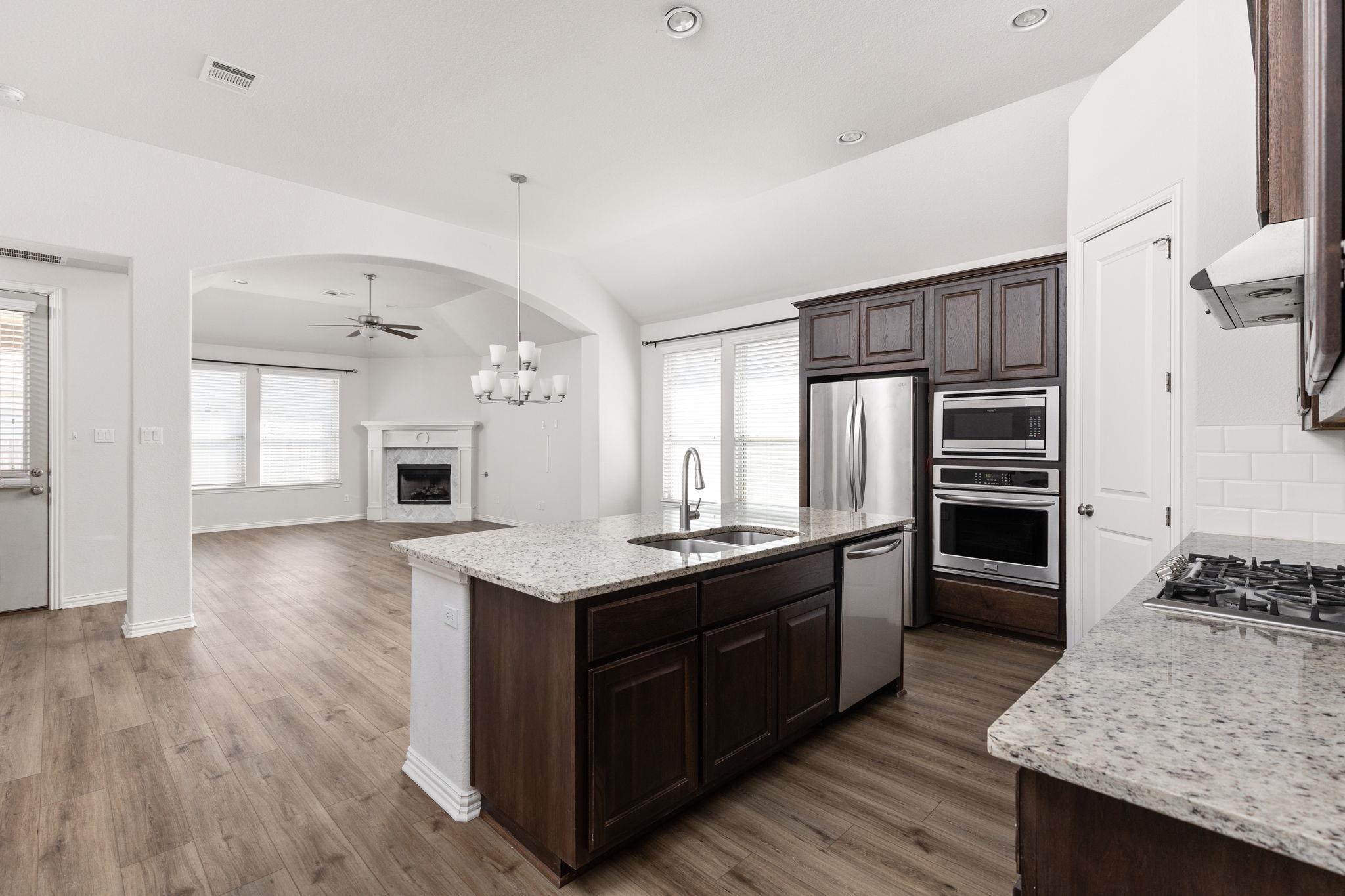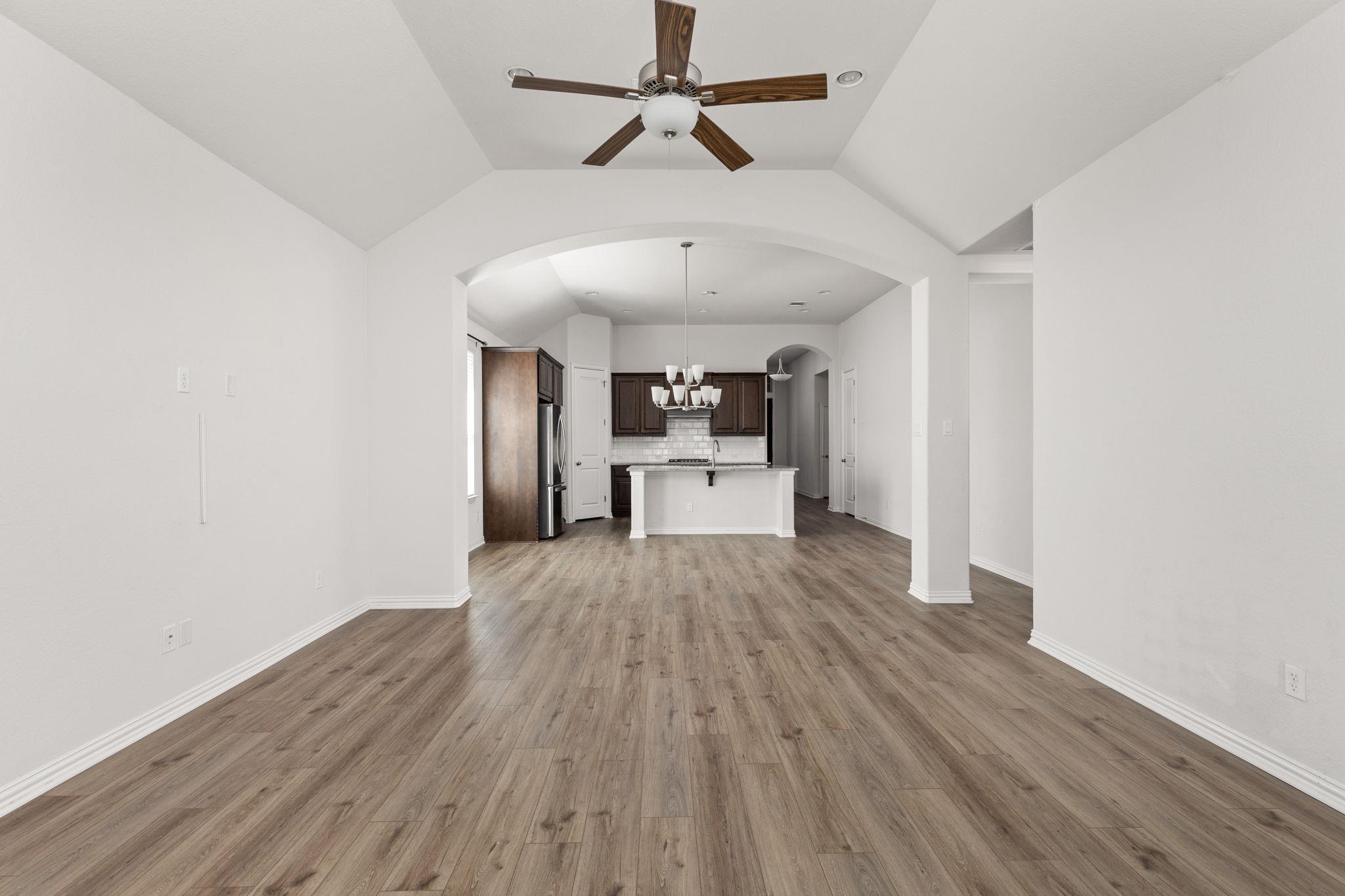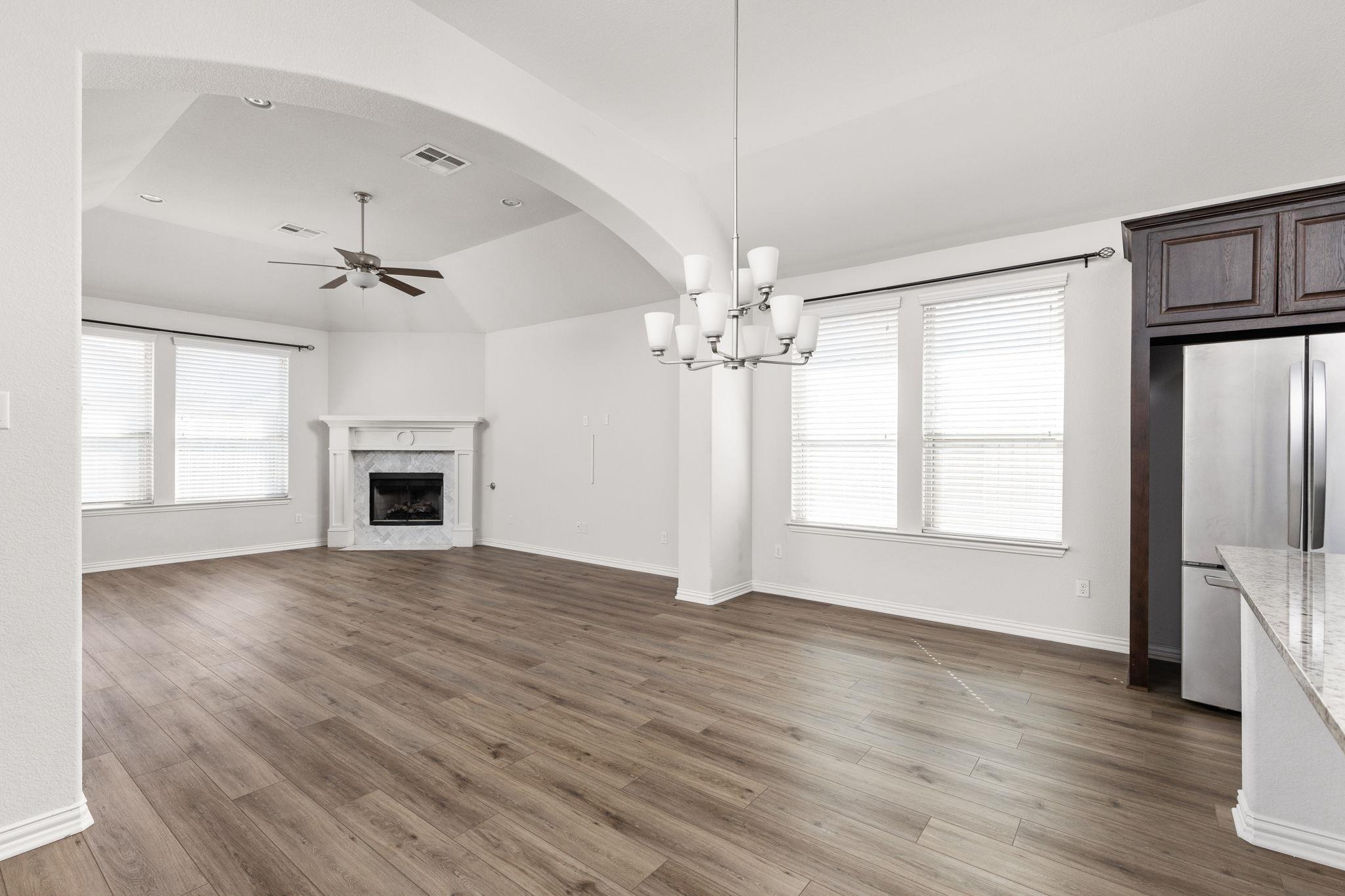 Beautifully designed single-story home in the sought-after Paloma Lake community offering 4 bedrooms and 2.5 bathrooms. From the covered brick and stone front porch, step inside to an inviting open floor plan featuring luxury vinyl plank flooring, volume ceilings with recessed lighting, and a neutral color palette throughout. The spacious living room is anchored by a fireplace and flows seamlessly into the dining area, creatin...