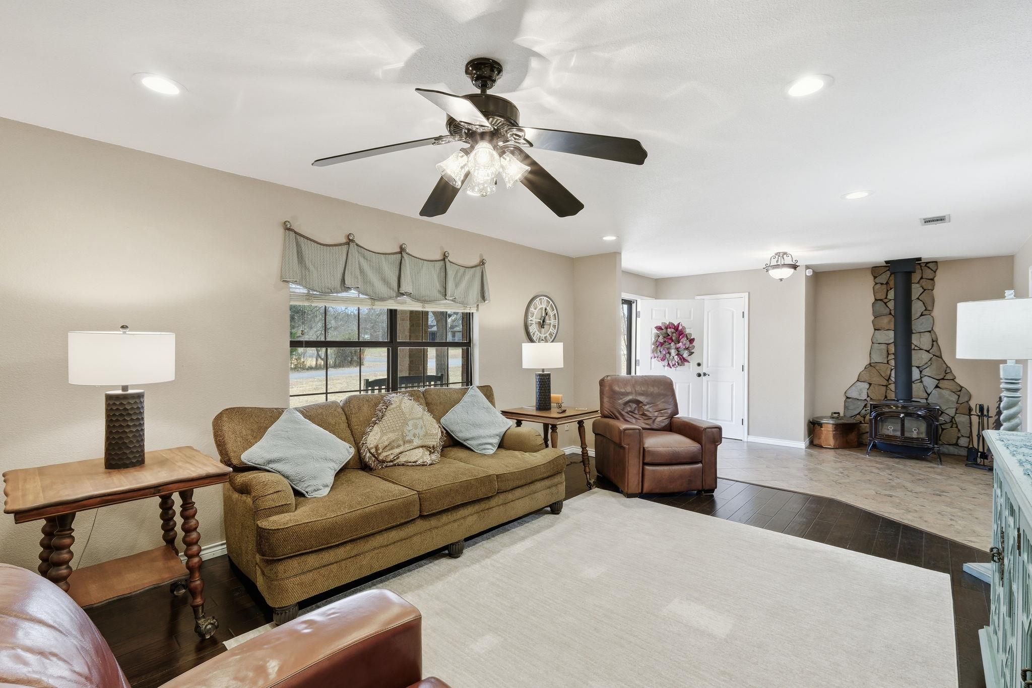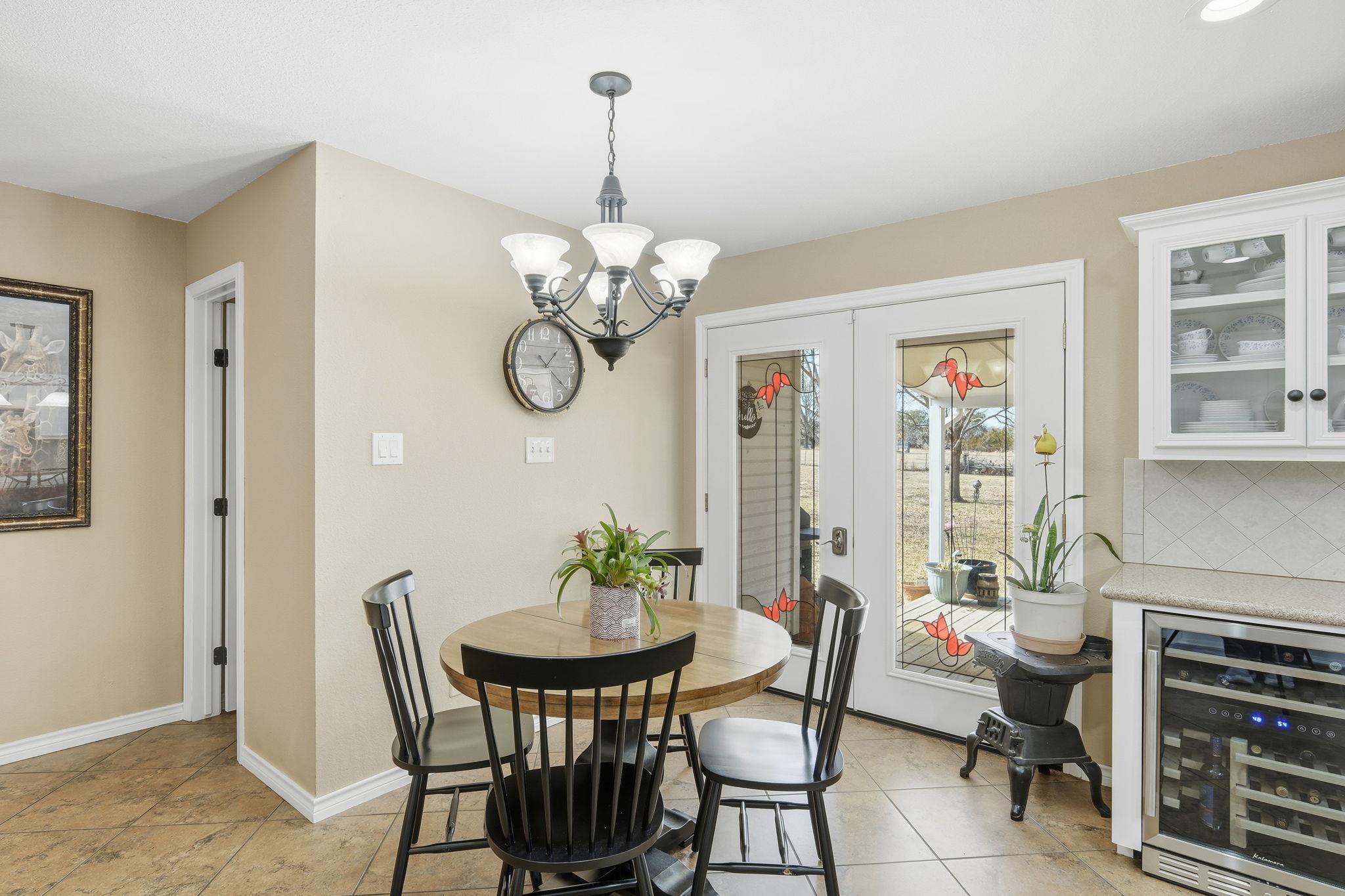 The most important room in a house is the kitchen! This one does not disappoint! Completely remodeled with tons of cabinetry, some with glass fronts plus beautiful custom pressed tin in granite center island doors. Updated stainless appliances, wall oven, wine fridge, composite farm sink, big pantry, 18 in tile floors. Ballroom size primary suite with gorgeous updated bath including huge walk in cultured marble shower. Barn do...