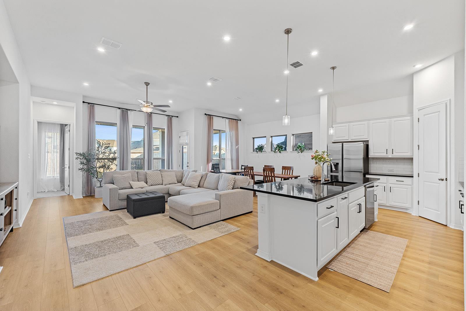 Discover the perfect blend of thoughtful design and everyday comfort in this stunning single-story residence nestled within one of Liberty Hill's most sought-after communities. This four-bedroom, three-bathroom home delivers exceptional craftsmanship that stands out from cookie-cutter construction, featuring contemporary finishes and a modern color palette that feels both fresh and timeless. Step inside to an open-concept lay...