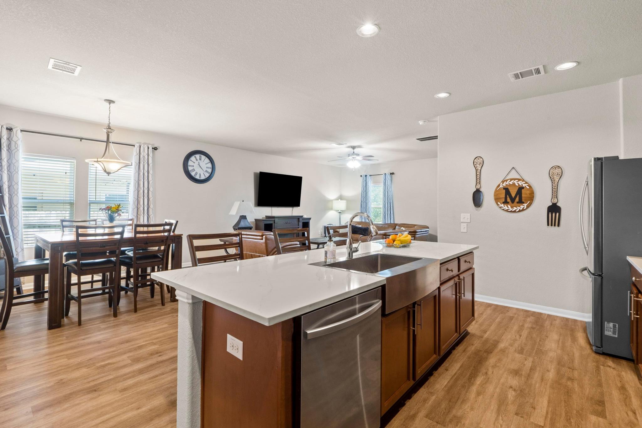 Welcome to this beautifully maintained single-story ranch-style home in Pflugerville's desirable Cantarra neighborhood featuring a thoughtful open-concept design perfect for modern living and backing to a serene greenbelt, providing privacy and peaceful views. Step inside to an inviting open floorplan with high ceilings that create a spacious and airy feel. The living area features luxury vinyl plank flooring, flowing seamless...