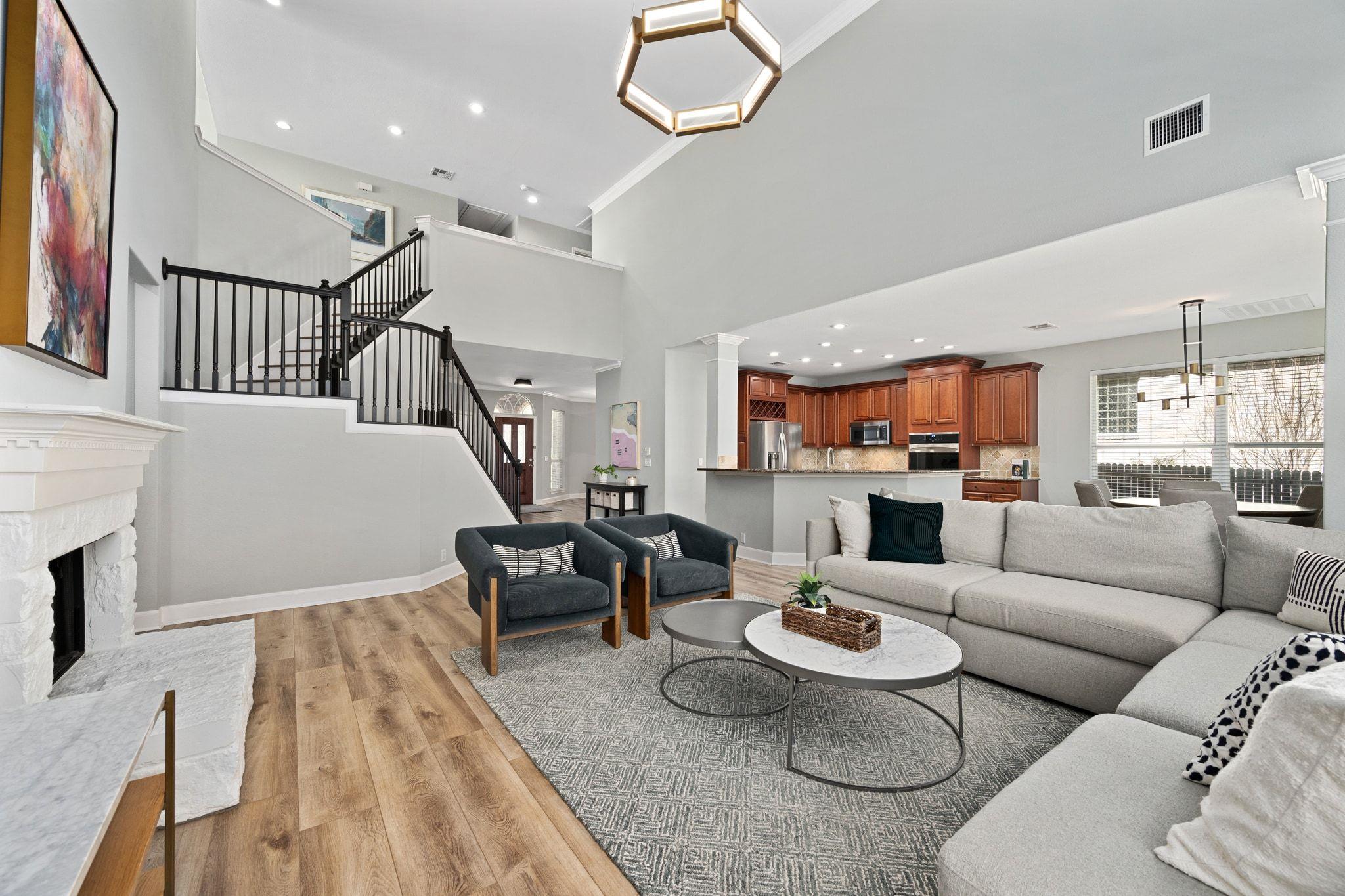 Stunning home in excellent condition on a large level lot. Gorgeous updated home with all new flooring (all carpet has been replaced), recent paint, newer roof, light fixtures -- just a few of the beautiful upgrades! The 2-story bright living room offers a gorgeous space, enhanced by a fireplace that serves as a focal point, while high ceilings and vaulted ceilings contribute to an open and airy atmosphere; crown molding adds...