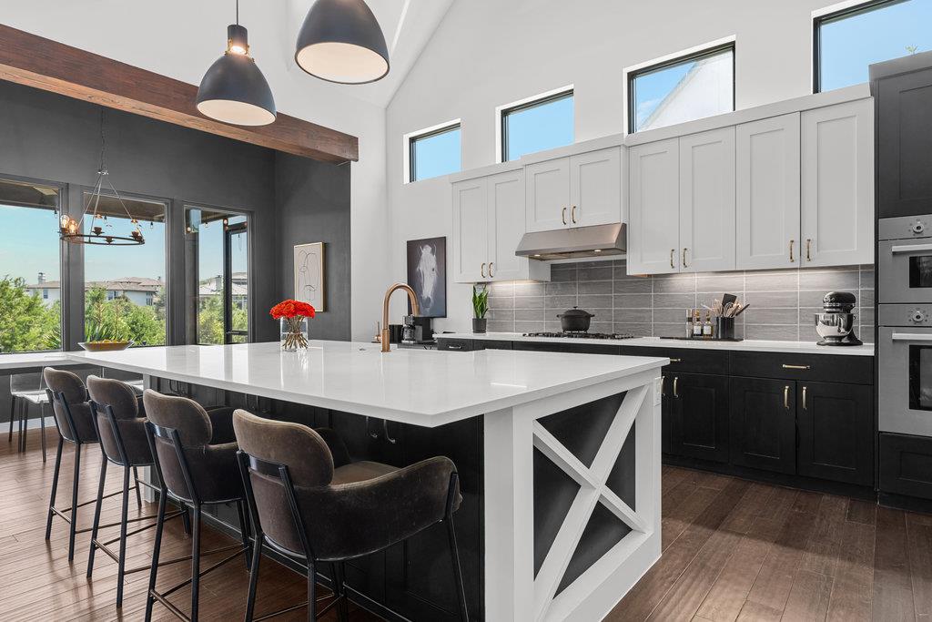 Experience modern Hill Country living with this award-winning Legacy Builders home, perfectly situated in the highly sought-after Westside Landing at The Peninsula neighborhood. This stunning single-level modern farmhouse offers the perfect blend of style, comfort, and convenience with a true lock-and-leave lifestyle. Step inside and be welcomed by soaring ceilings, an open-concept floor plan, and expansive windows that fill t...