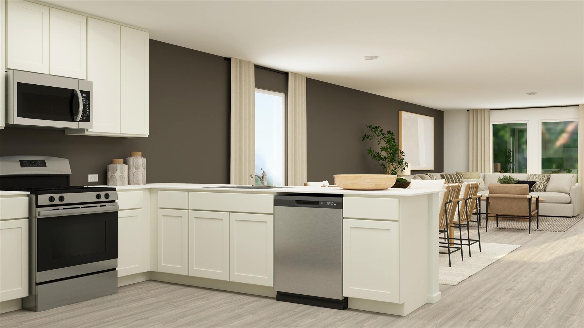 The Dowing - This new four-bedroom home offers convenient single-story living. A bedroom is secluded near the front of the home, leading to an inviting and spacious open-concept layout shared between the kitchen, dining room and family room. Three additional bedrooms are tucked away to the side for improved comfort and privacy, including the lavish owner’s suite at the back of the home with a full bathroom and walk-in closet. ...